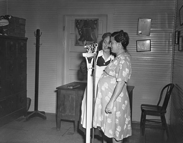Midwife weighing pregnant woman. 1940 (circa). State Archives of Florida, Florida Memory. Accessed 5 Nov. 2025.<https://www.floridamemory.com/items/show/144719>