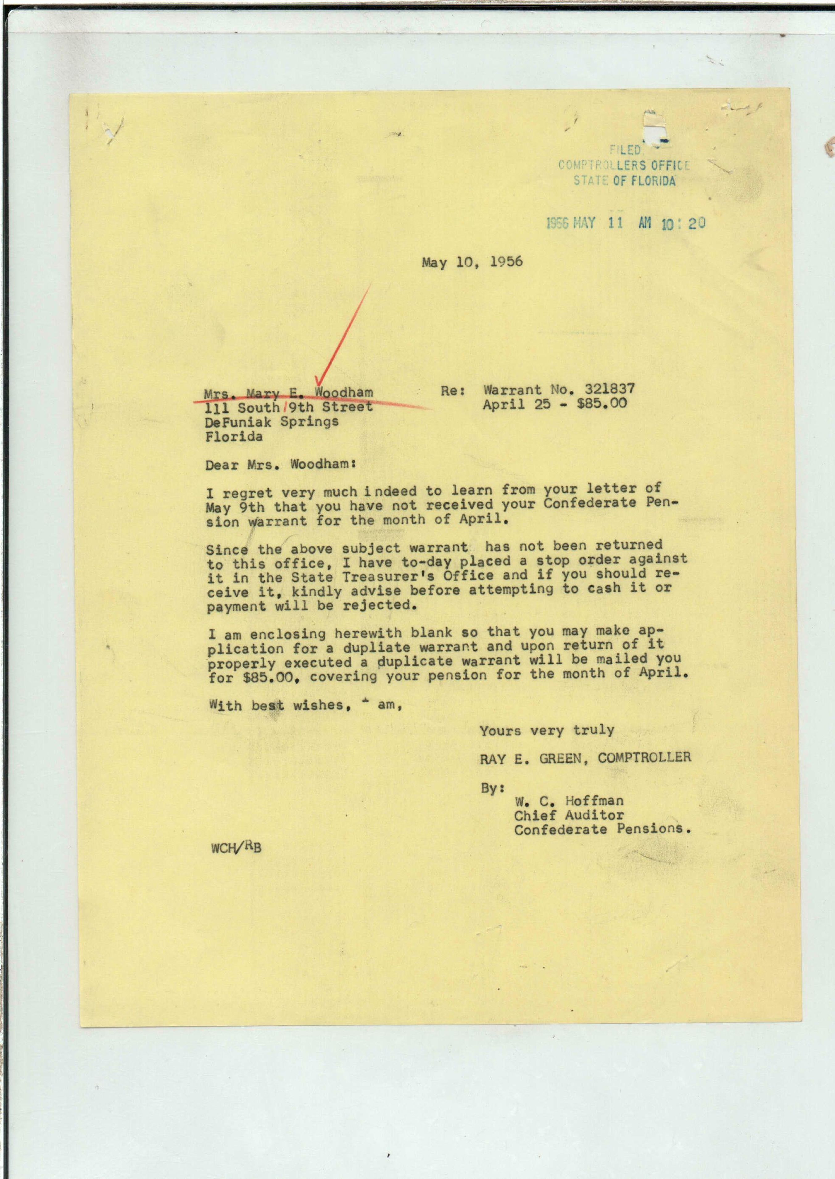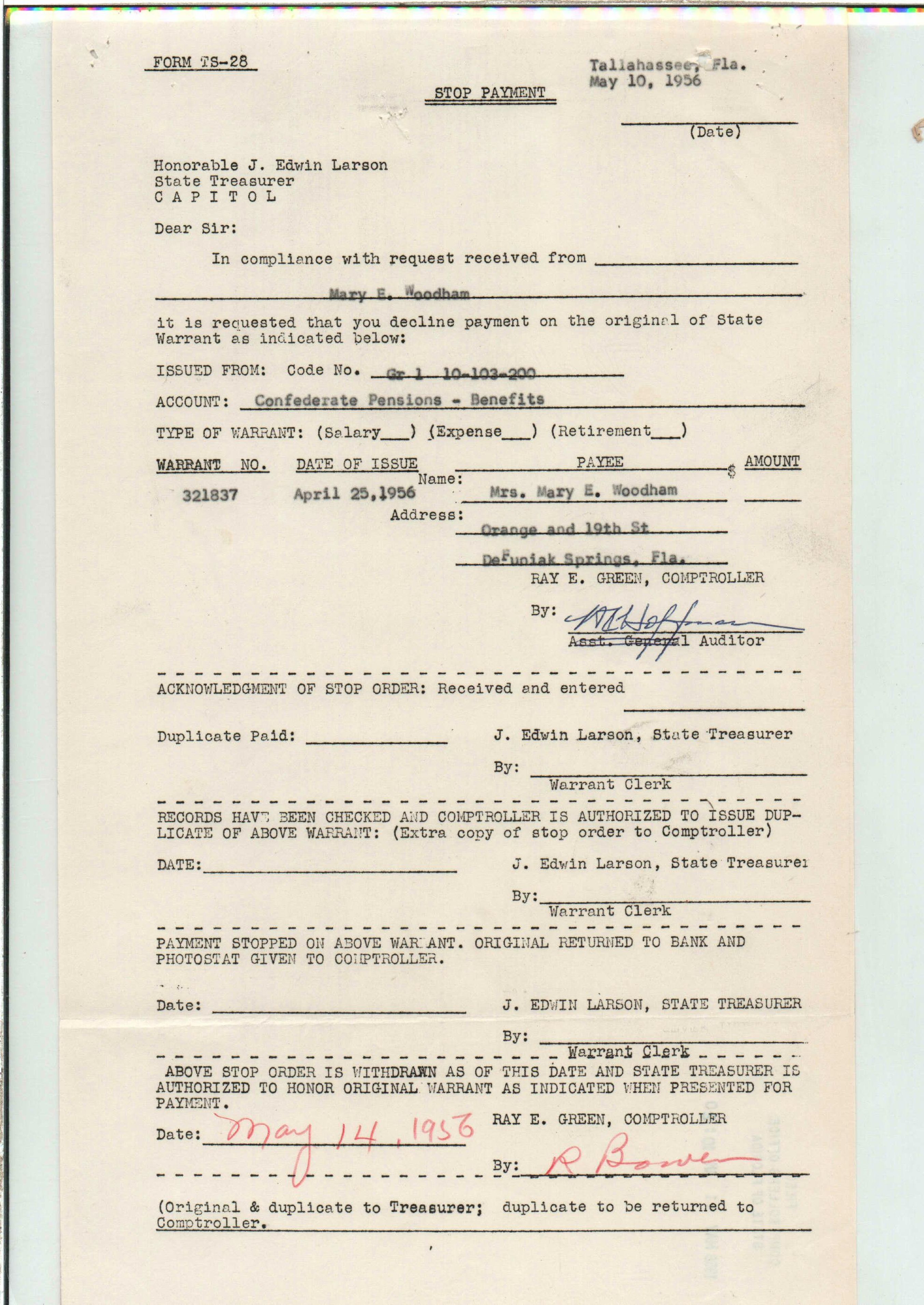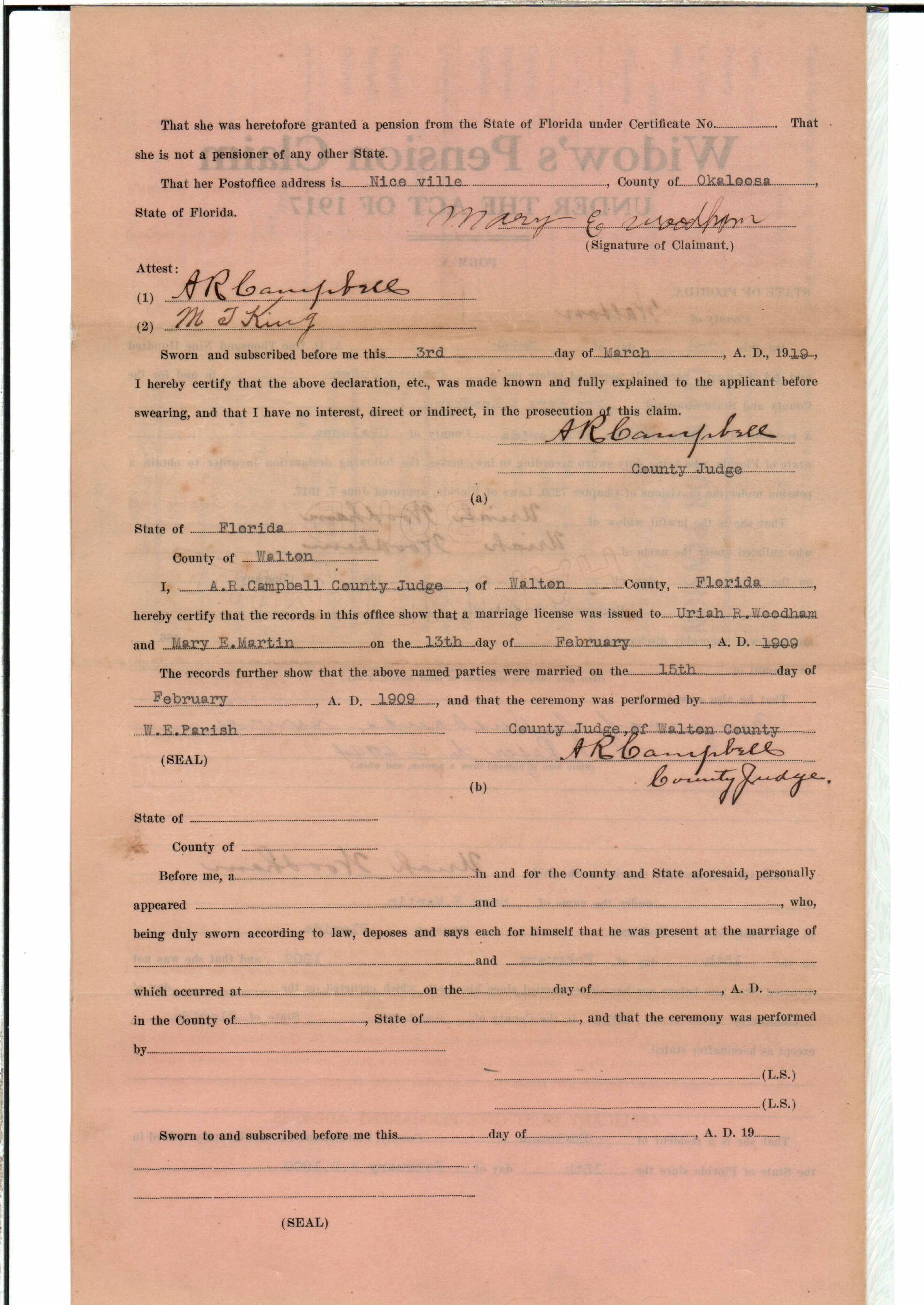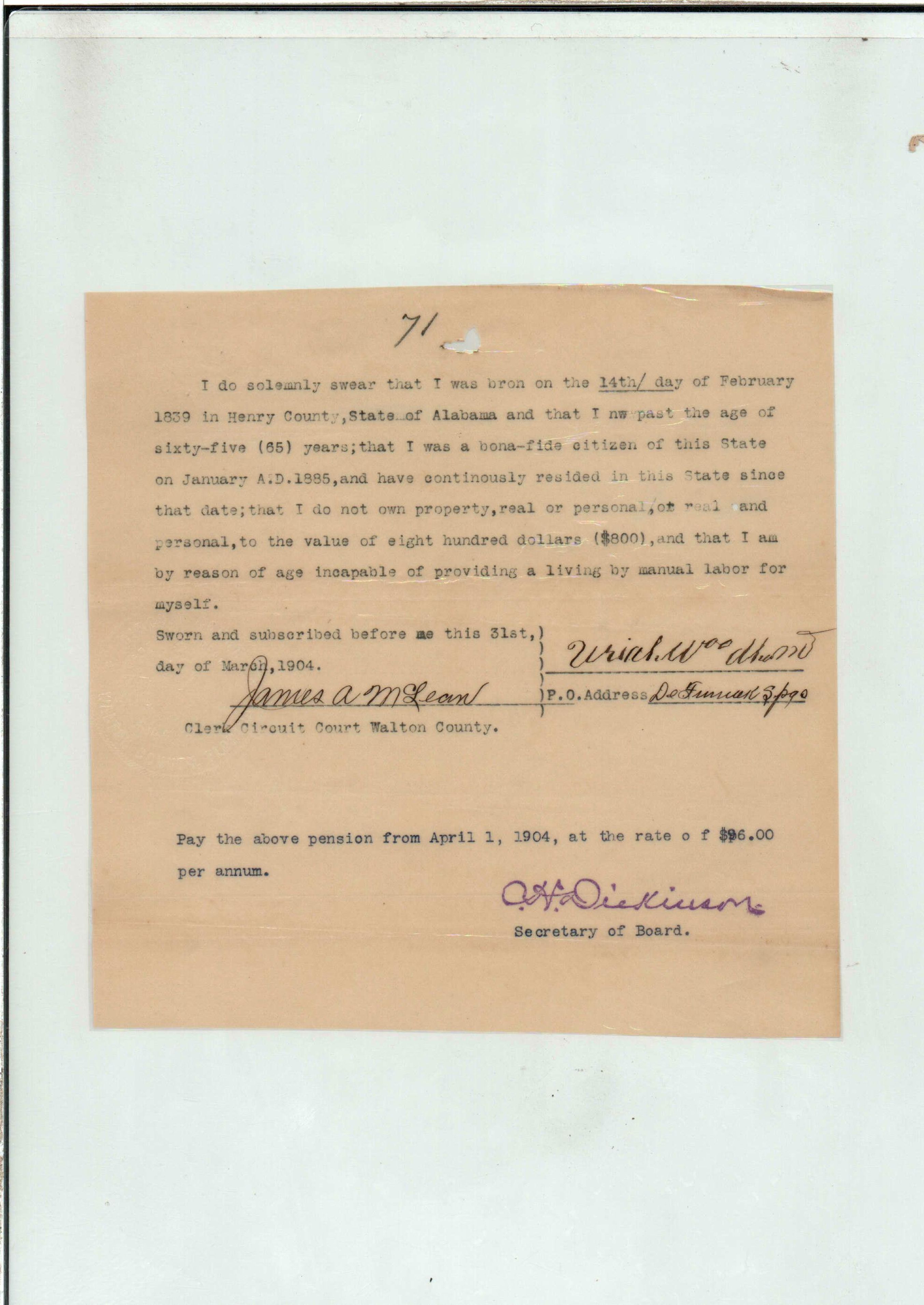 State Board of Pensions. WOODHAM, Uriah. 1888. State Archives of Florida, Florida Memory. <https://www.floridamemory.com/items/show/168292>, accessed 31 December 2025.