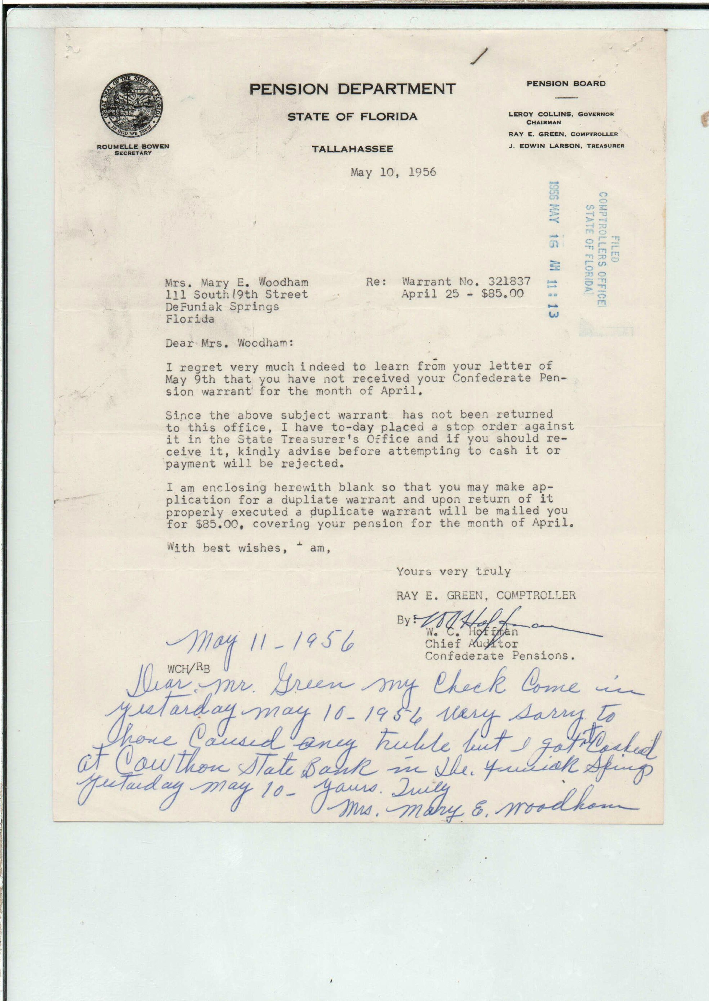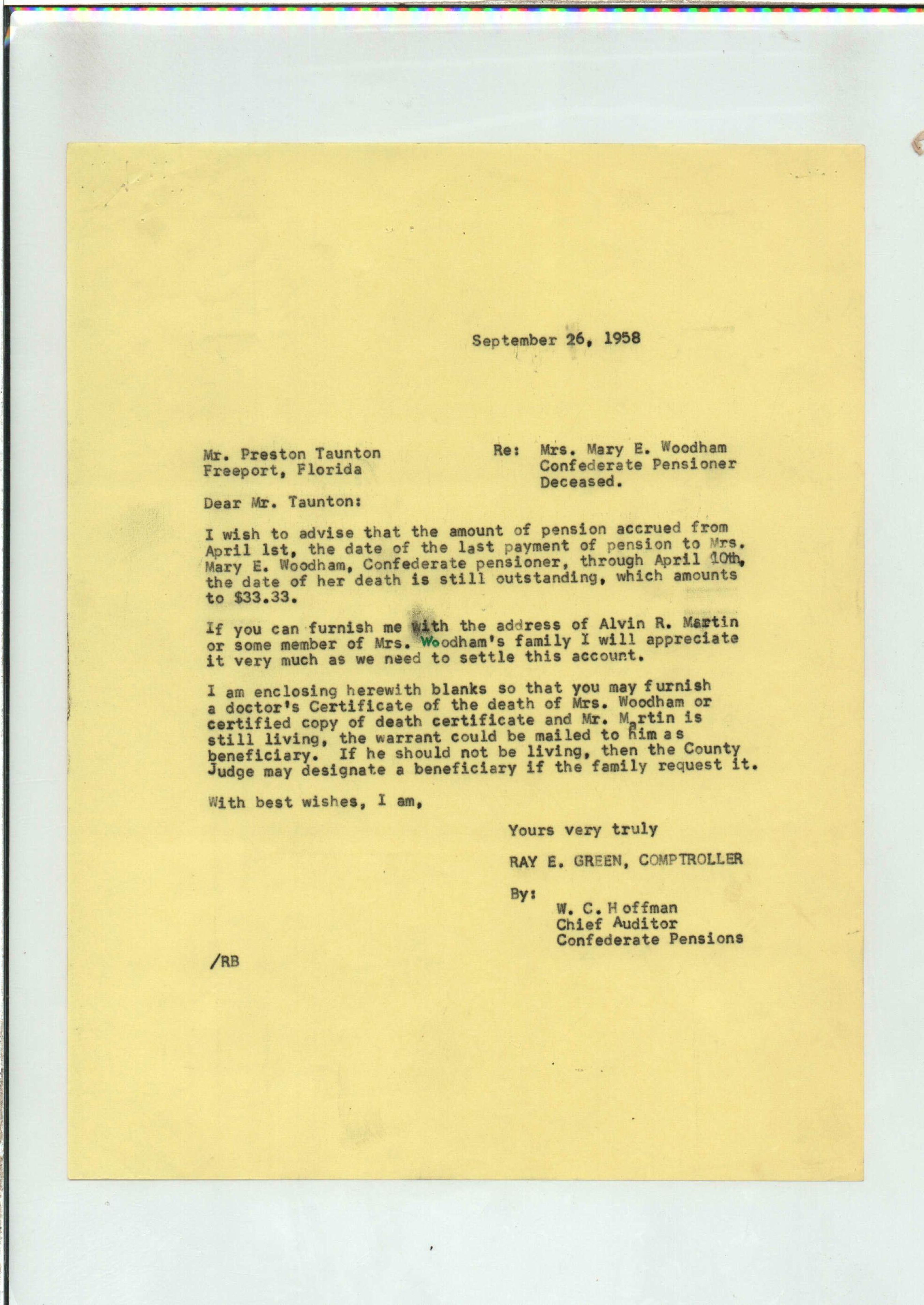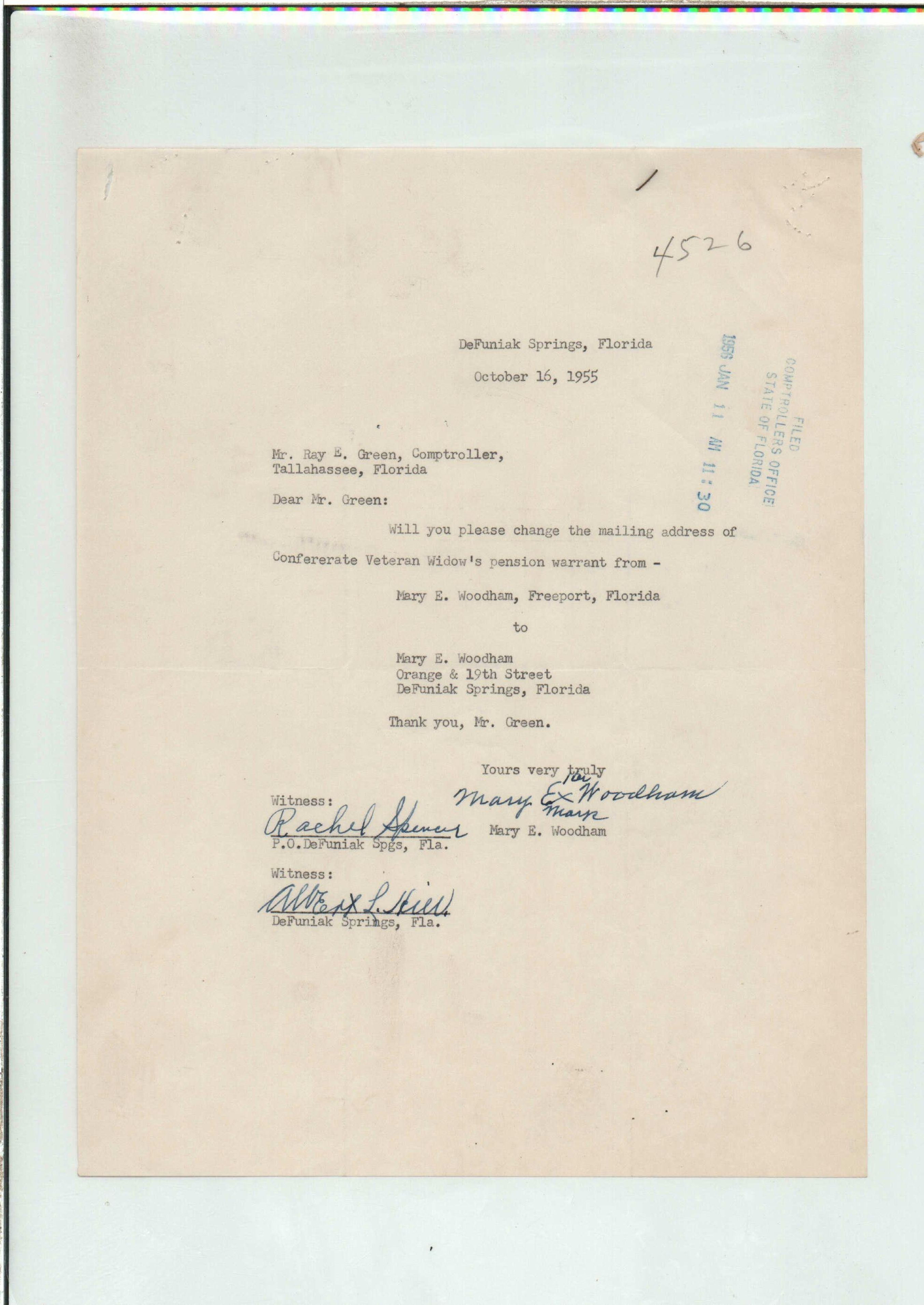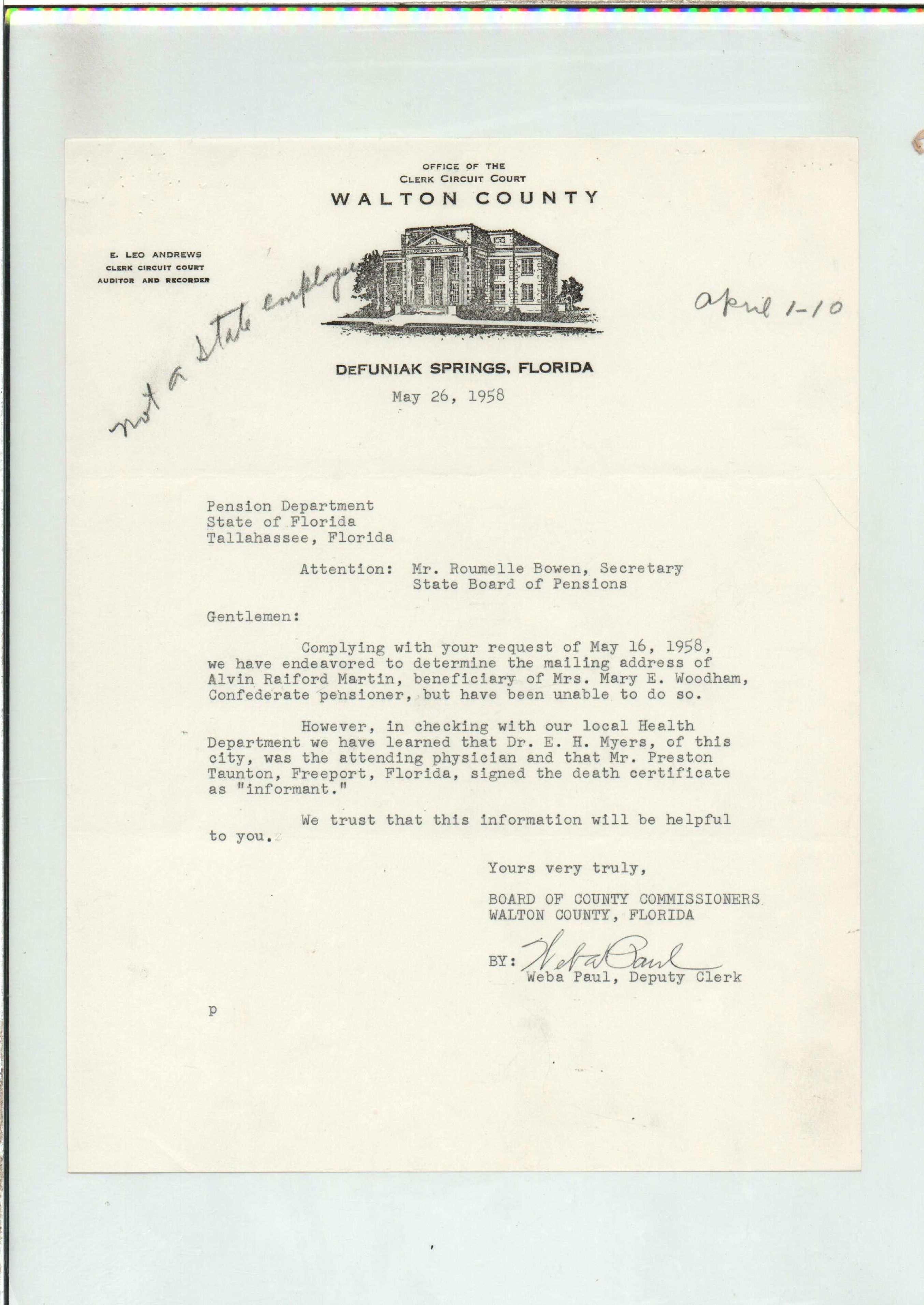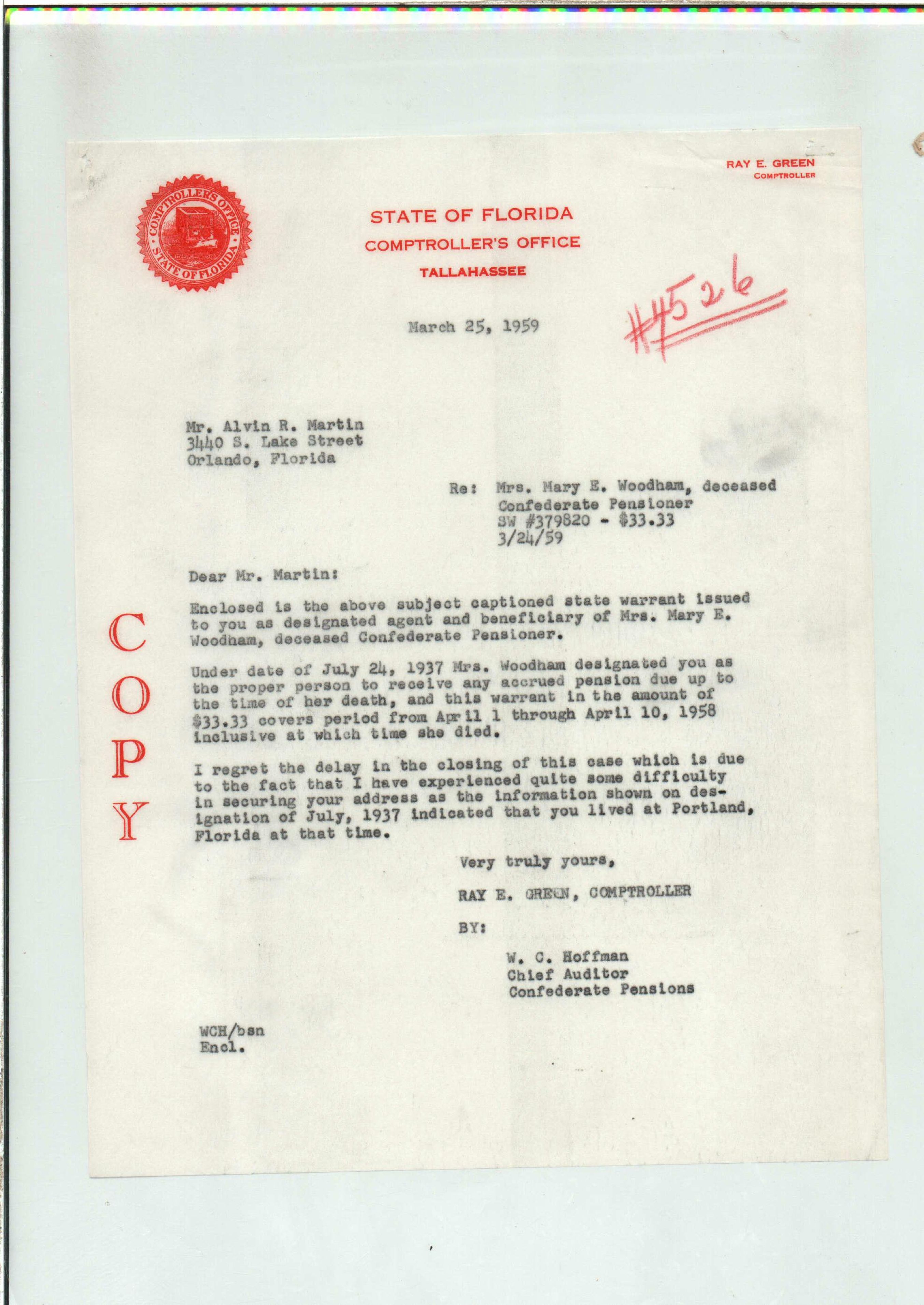 State Board of Pensions. WOODHAM, Uriah. 1888. State Archives of Florida, Florida Memory. Accessed 31 Dec. 2025.<https://www.floridamemory.com/items/show/168292>
