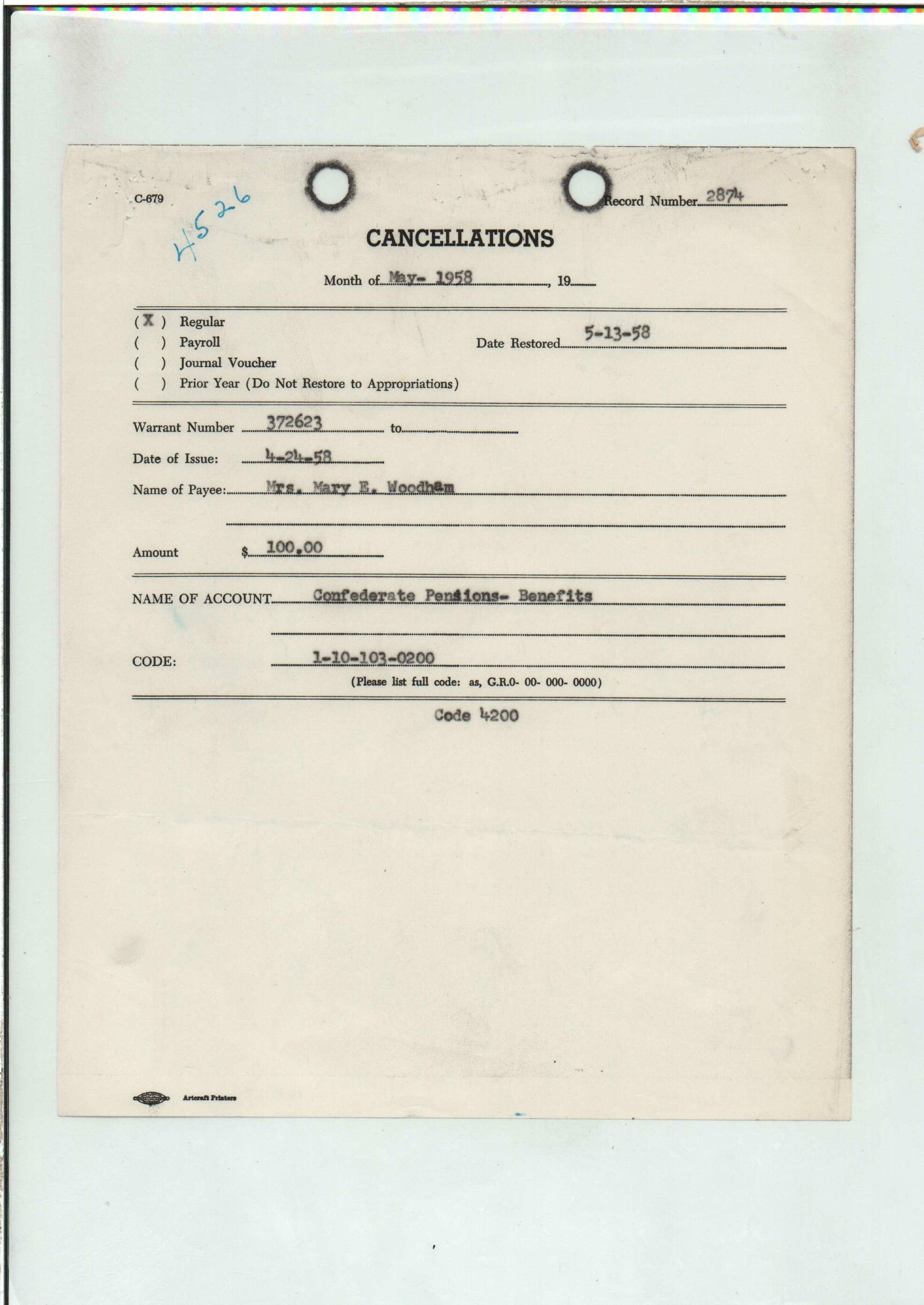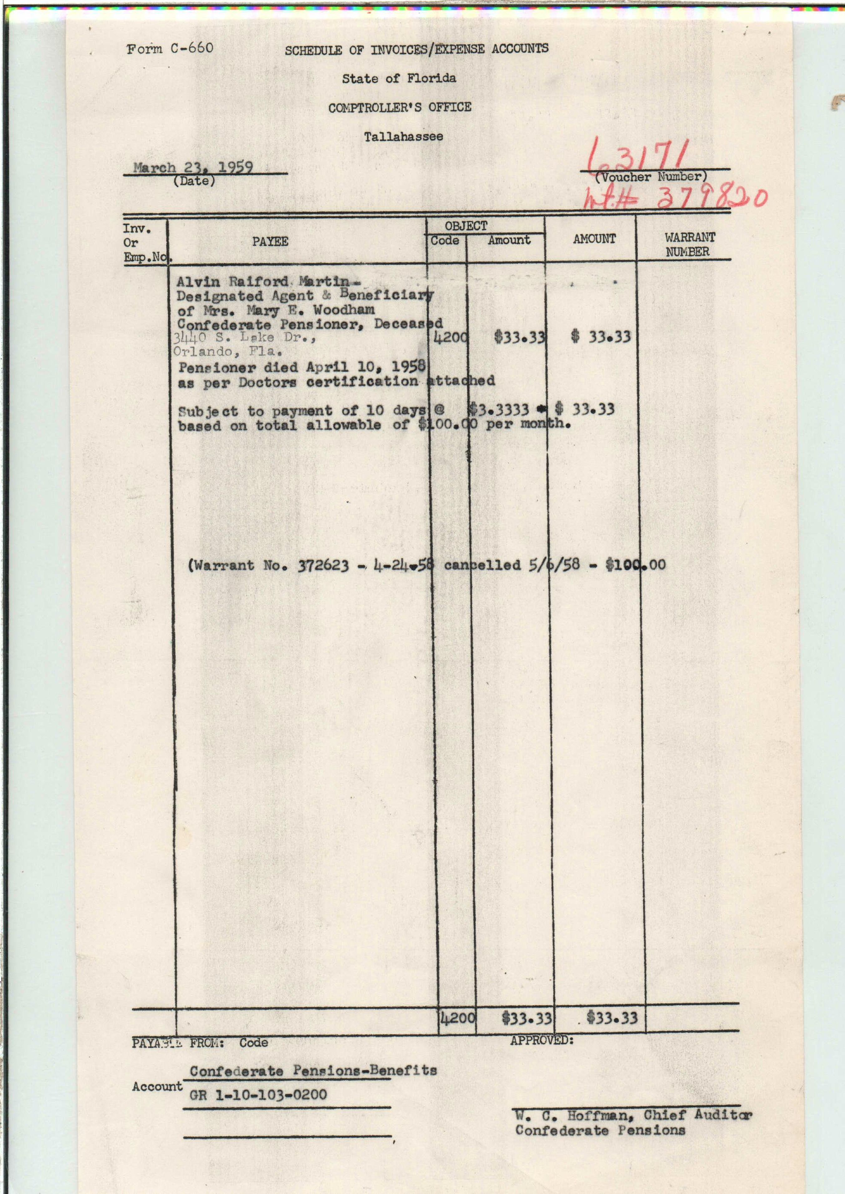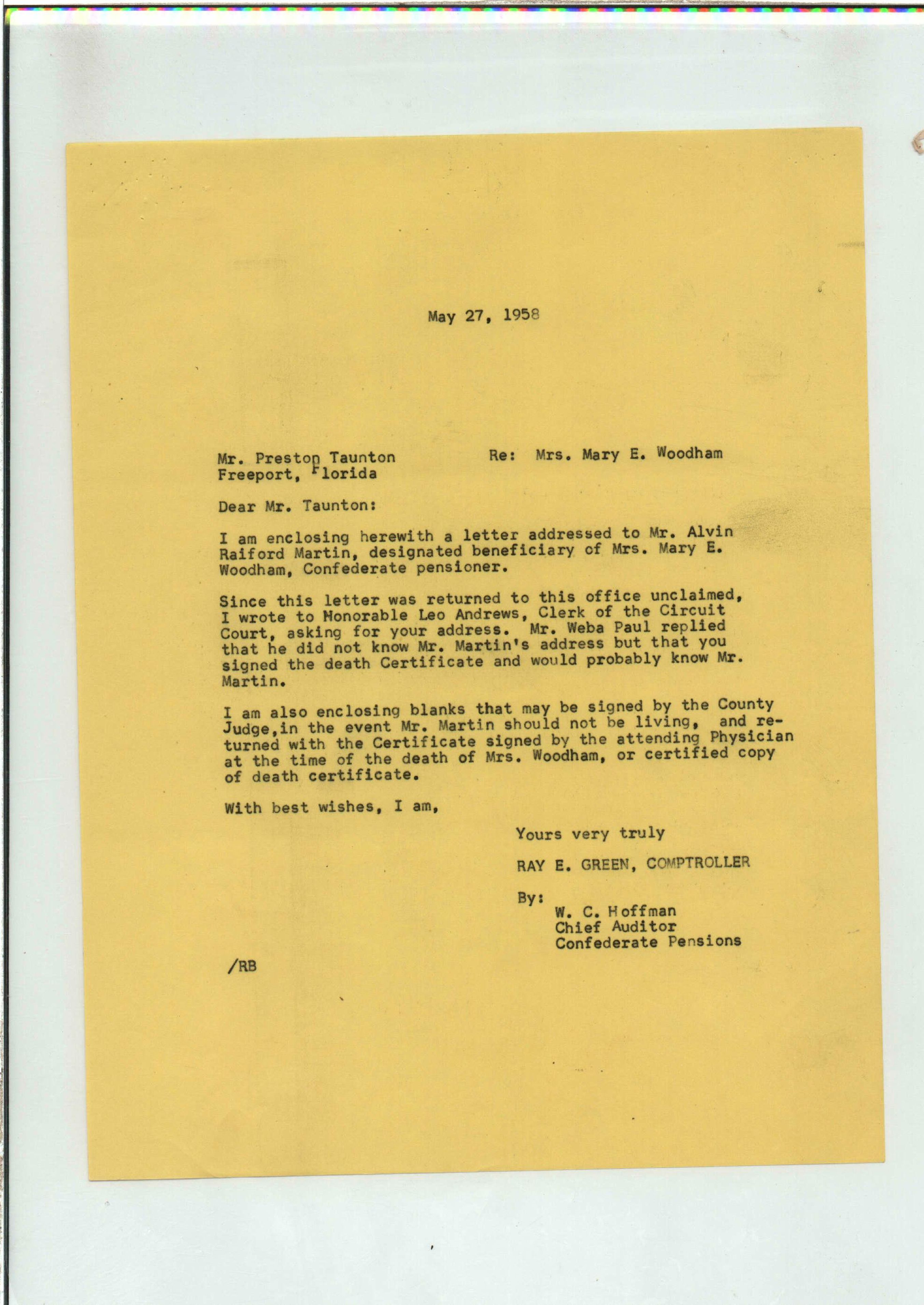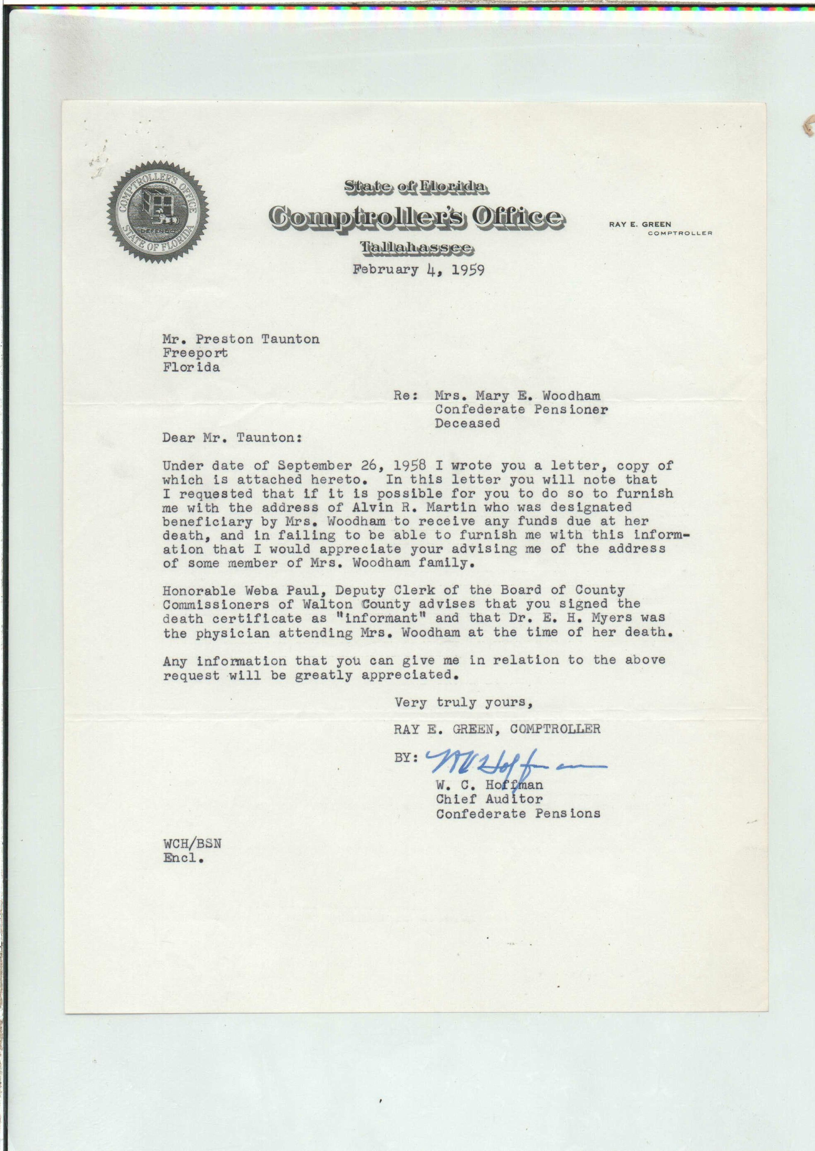 State Board of Pensions. WOODHAM, Uriah. 1888. State Archives of Florida, Florida Memory. Accessed 31 Dec. 2025.<https://www.floridamemory.com/items/show/168292>