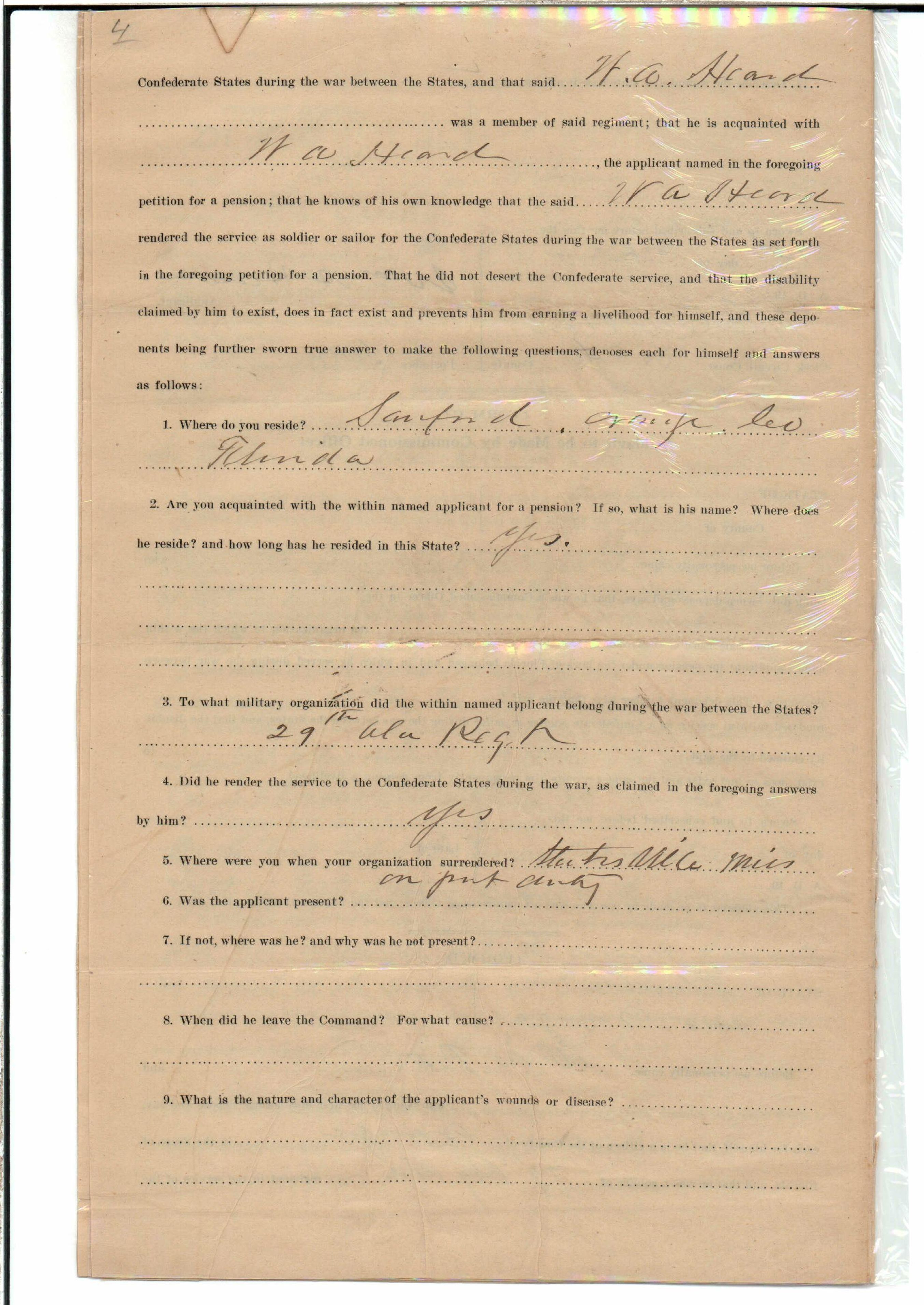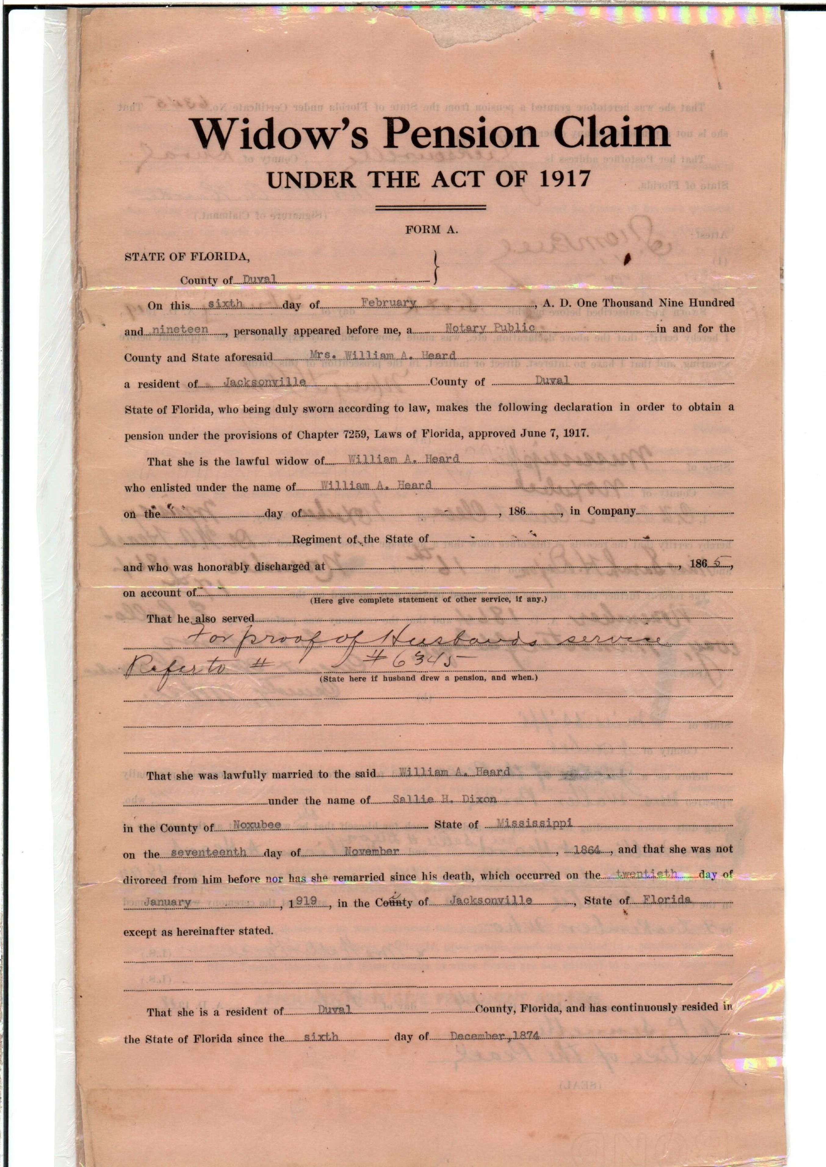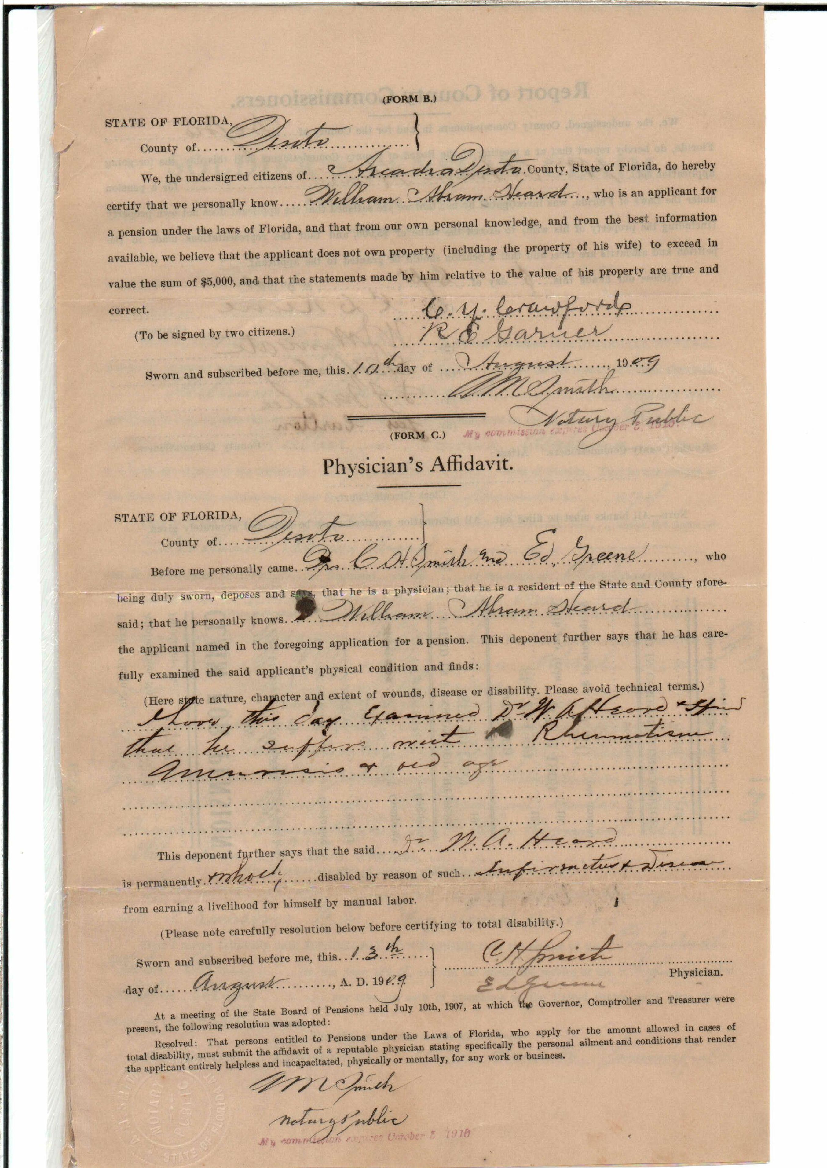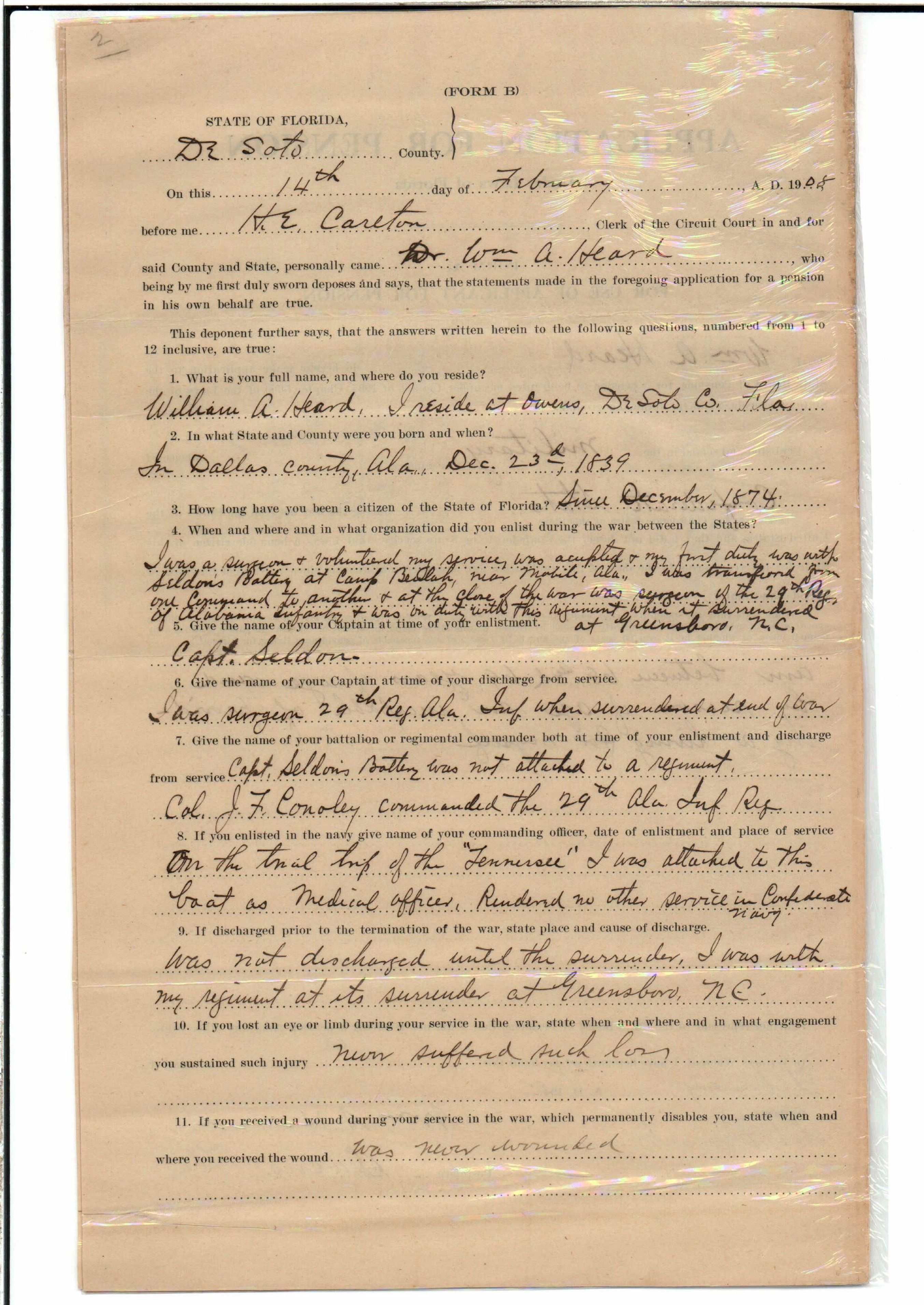 State Board of Pensions. HEARD, William Abram. 1908. State Archives of Florida, Florida Memory. <https://www.floridamemory.com/items/show/168304>, accessed 1 January 2026.