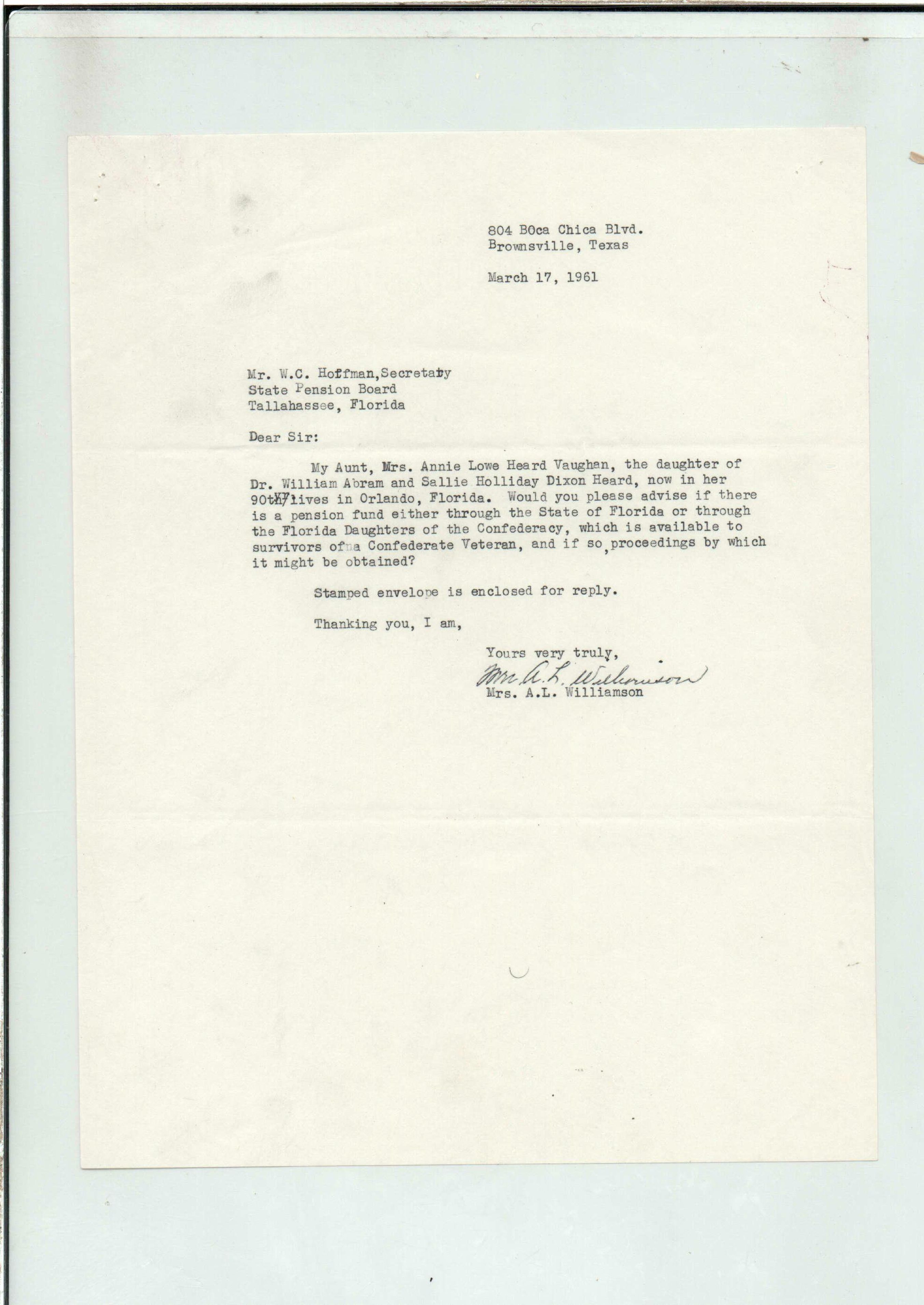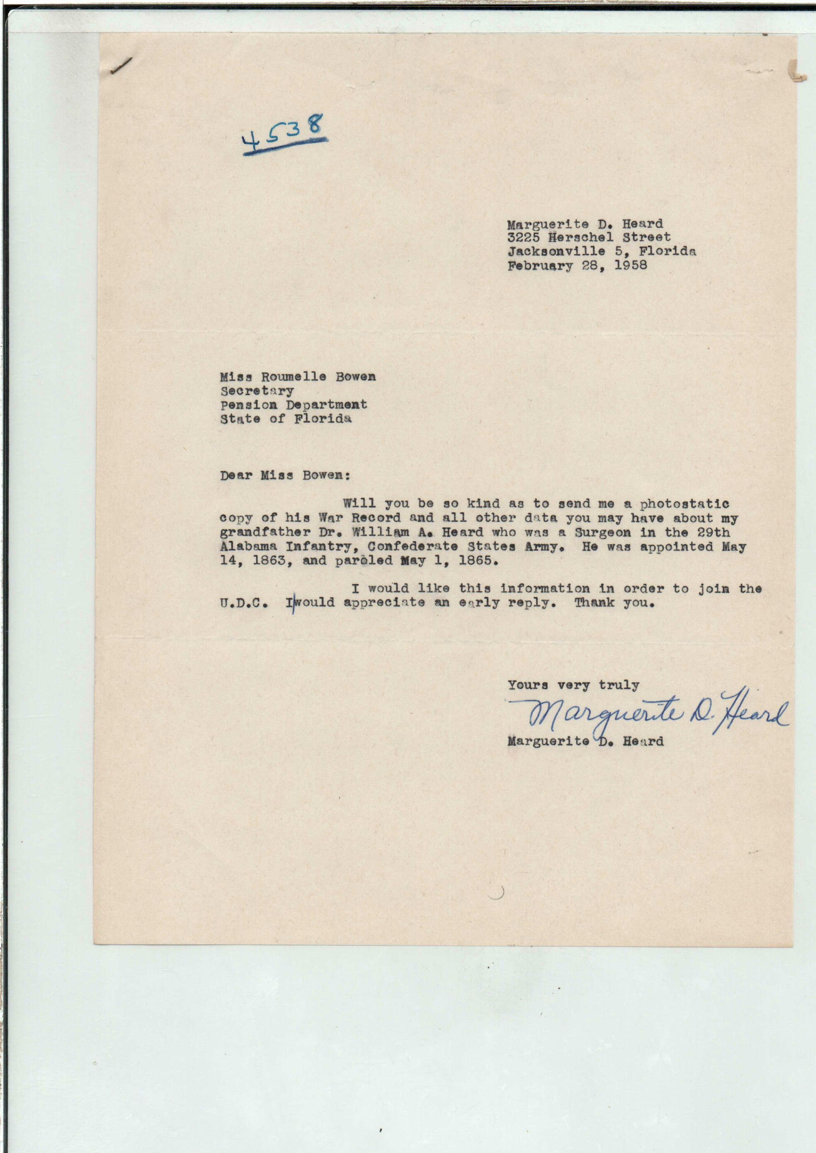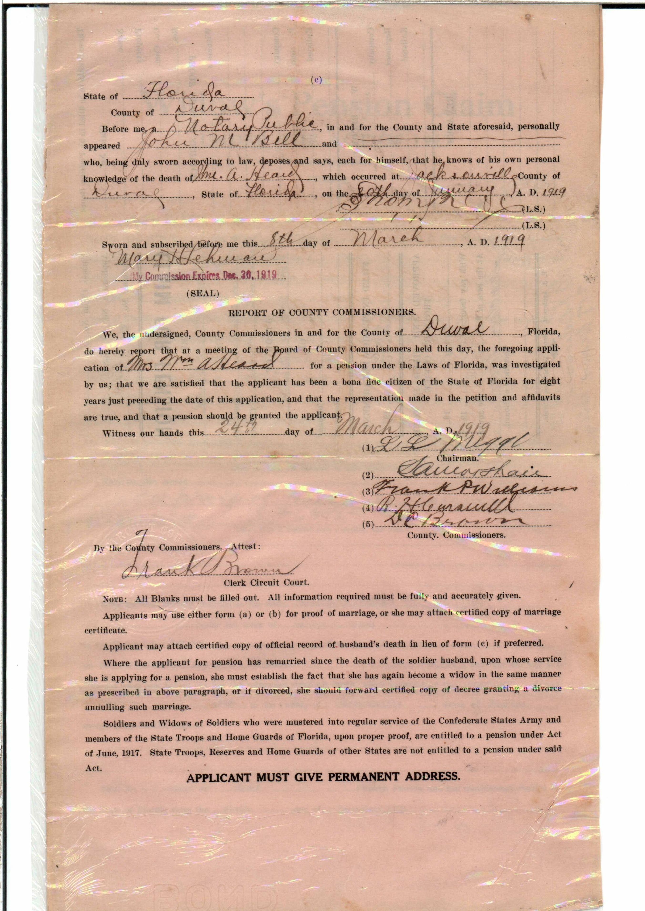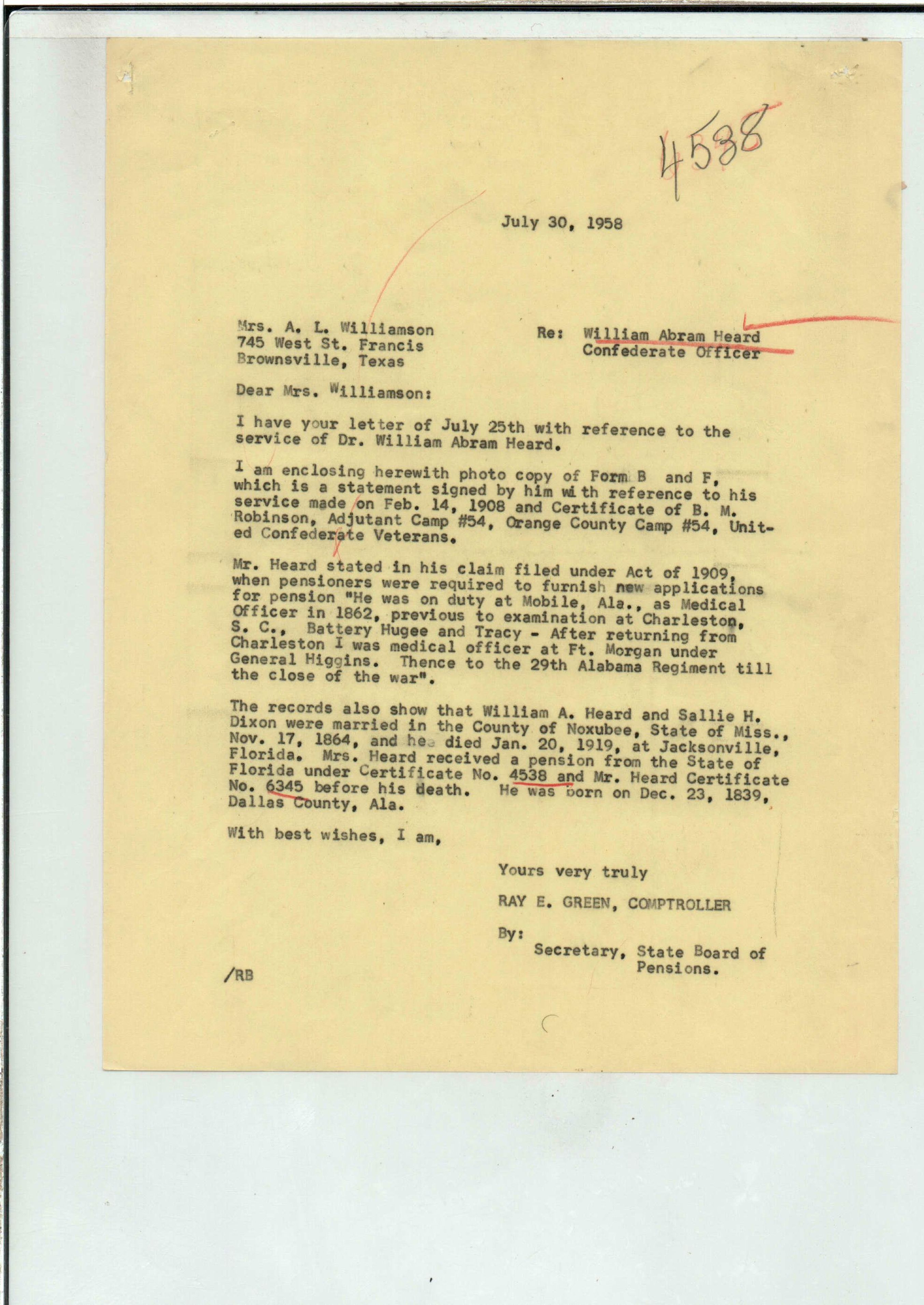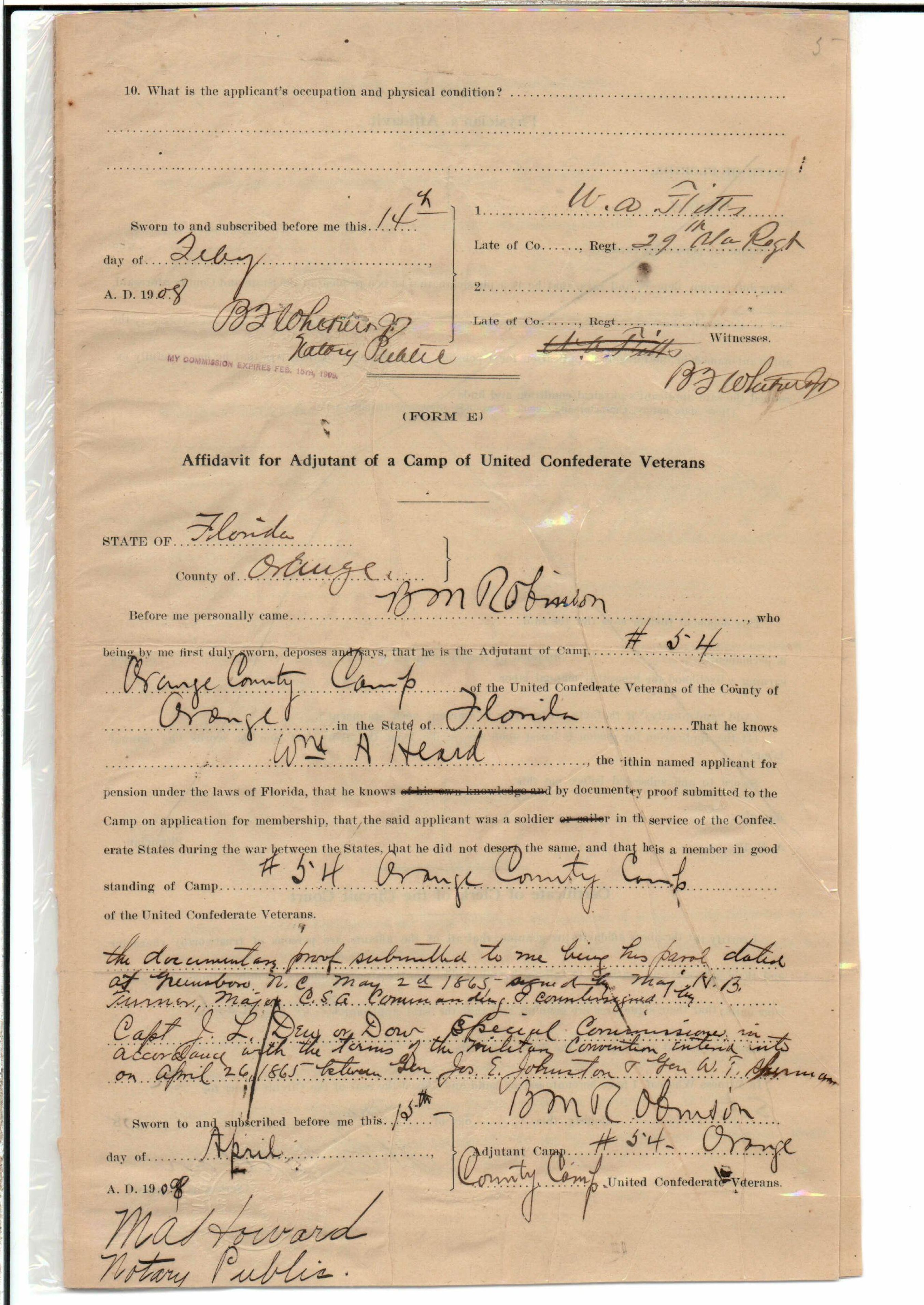 State Board of Pensions. HEARD, William Abram. 1908. State Archives of Florida, Florida Memory. <https://www.floridamemory.com/items/show/168304>, accessed 1 January 2026.