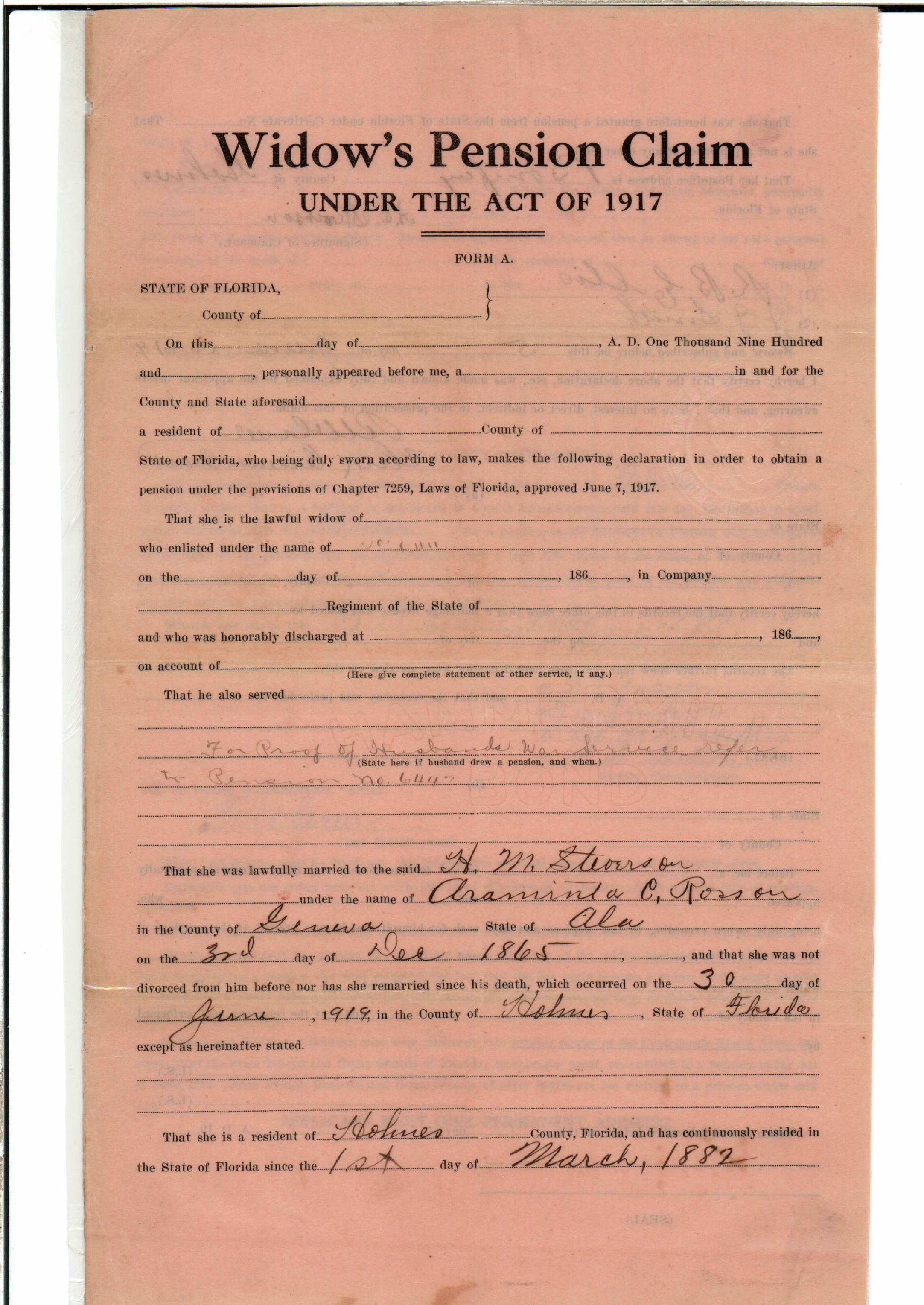 State Board of Pensions. STEVENSON, Hardy Mack. 1908. State Archives of Florida, Florida Memory. <https://www.floridamemory.com/items/show/168327>, accessed 2 January 2026.