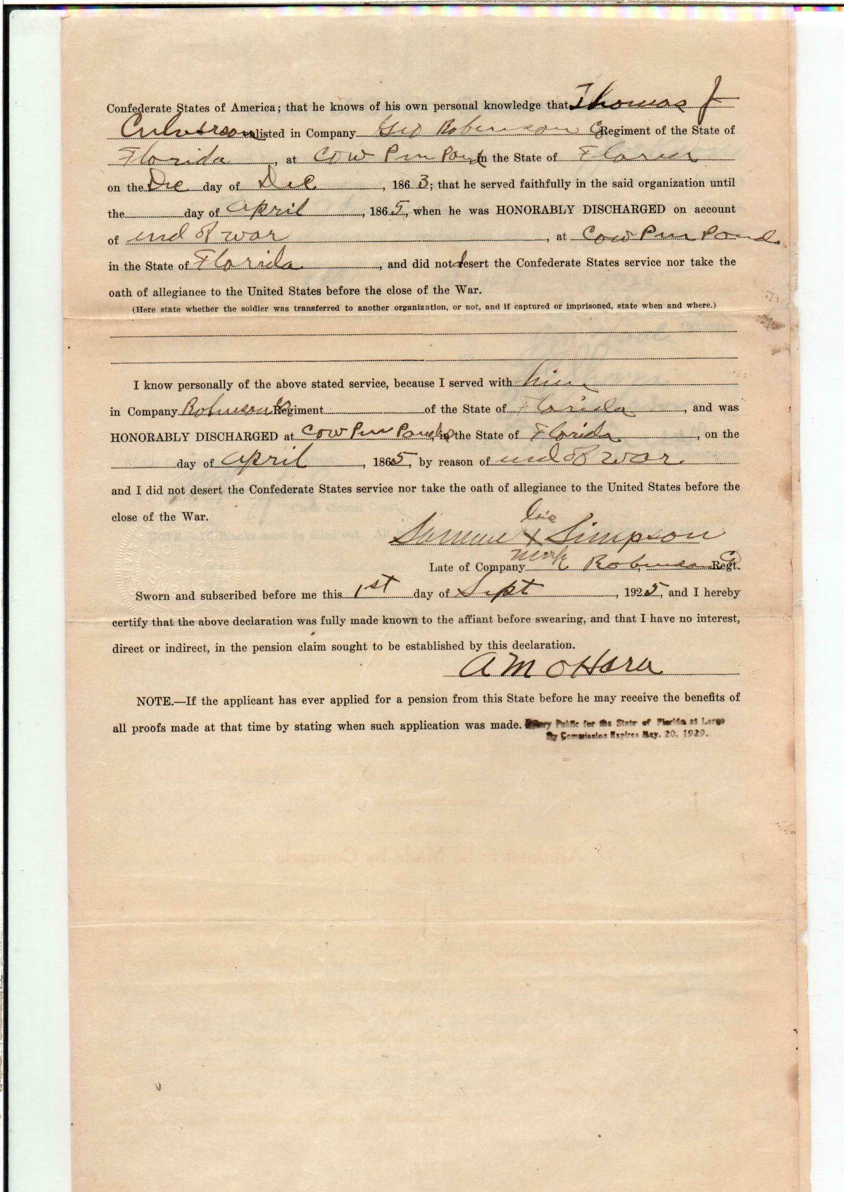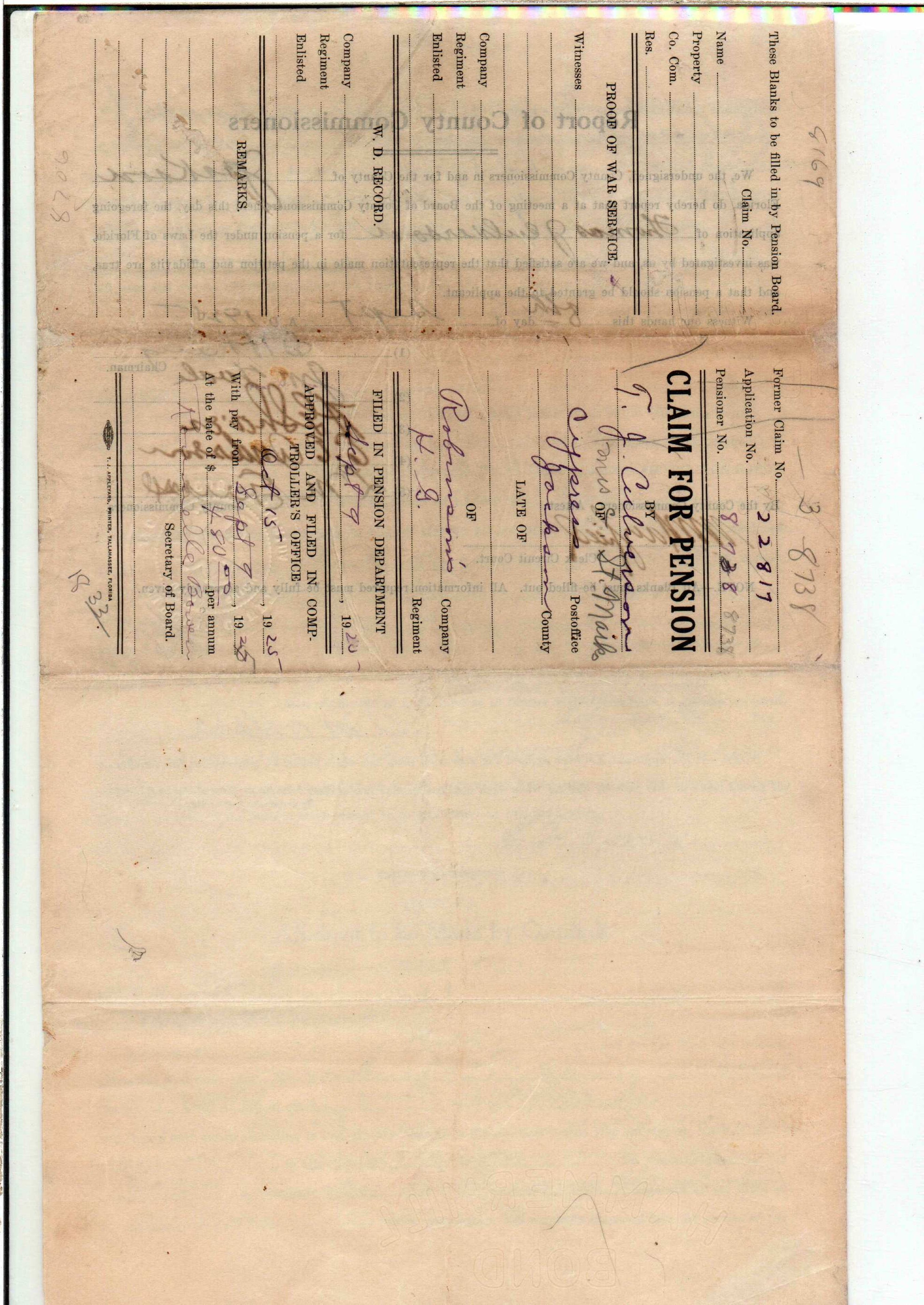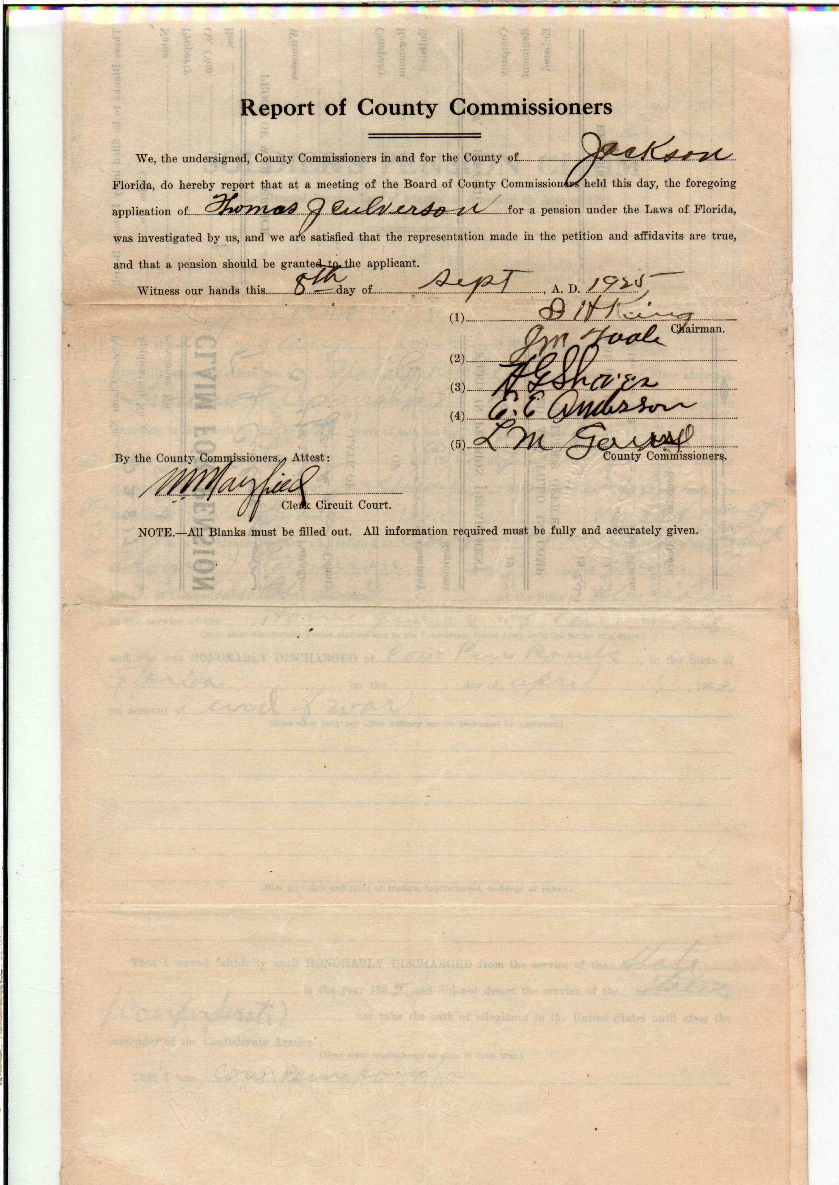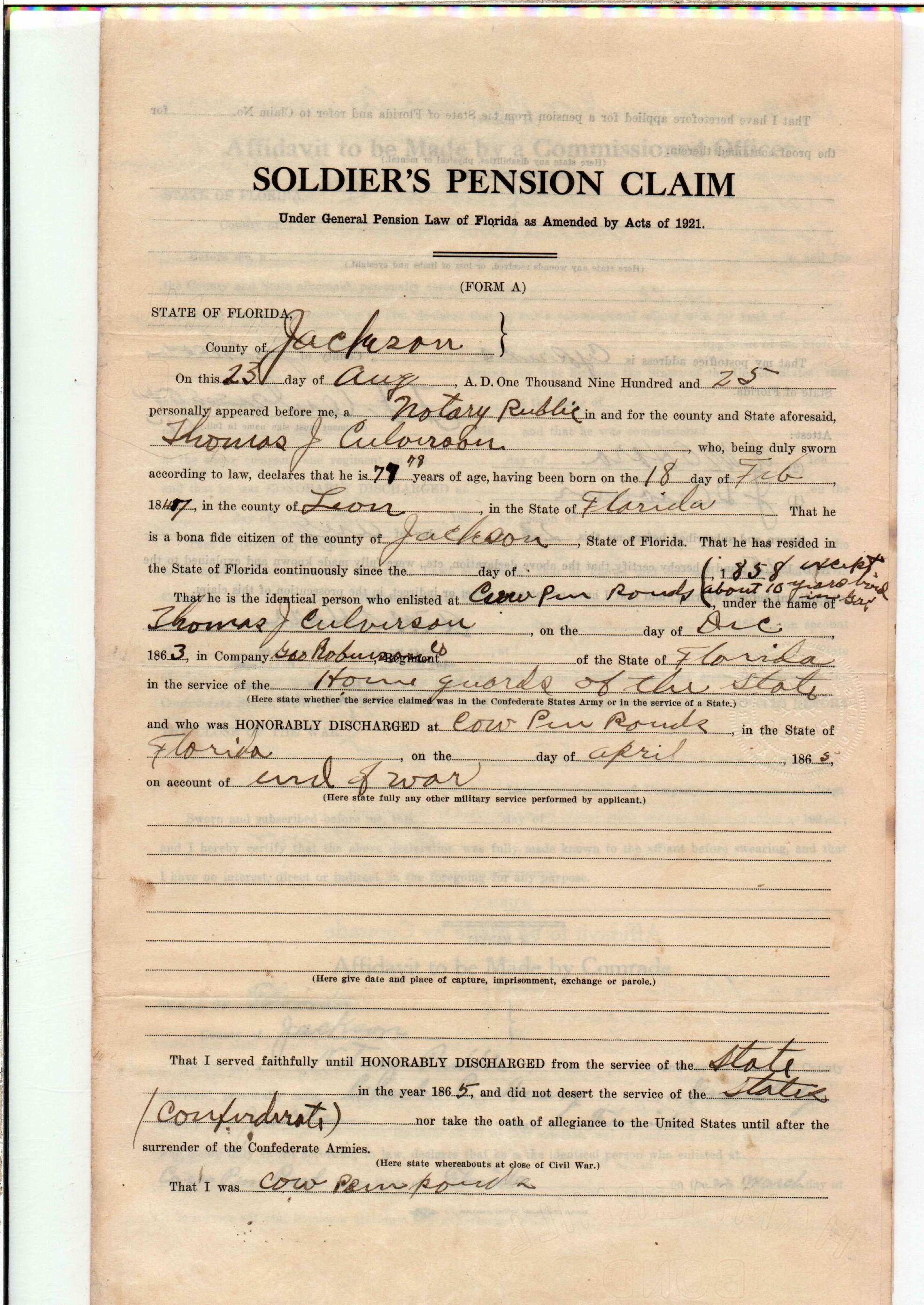 State Board of Pensions. CULVERSON, Thomas J. 1925. State Archives of Florida, Florida Memory. <https://www.floridamemory.com/items/show/172282>, accessed 3 March 2026.