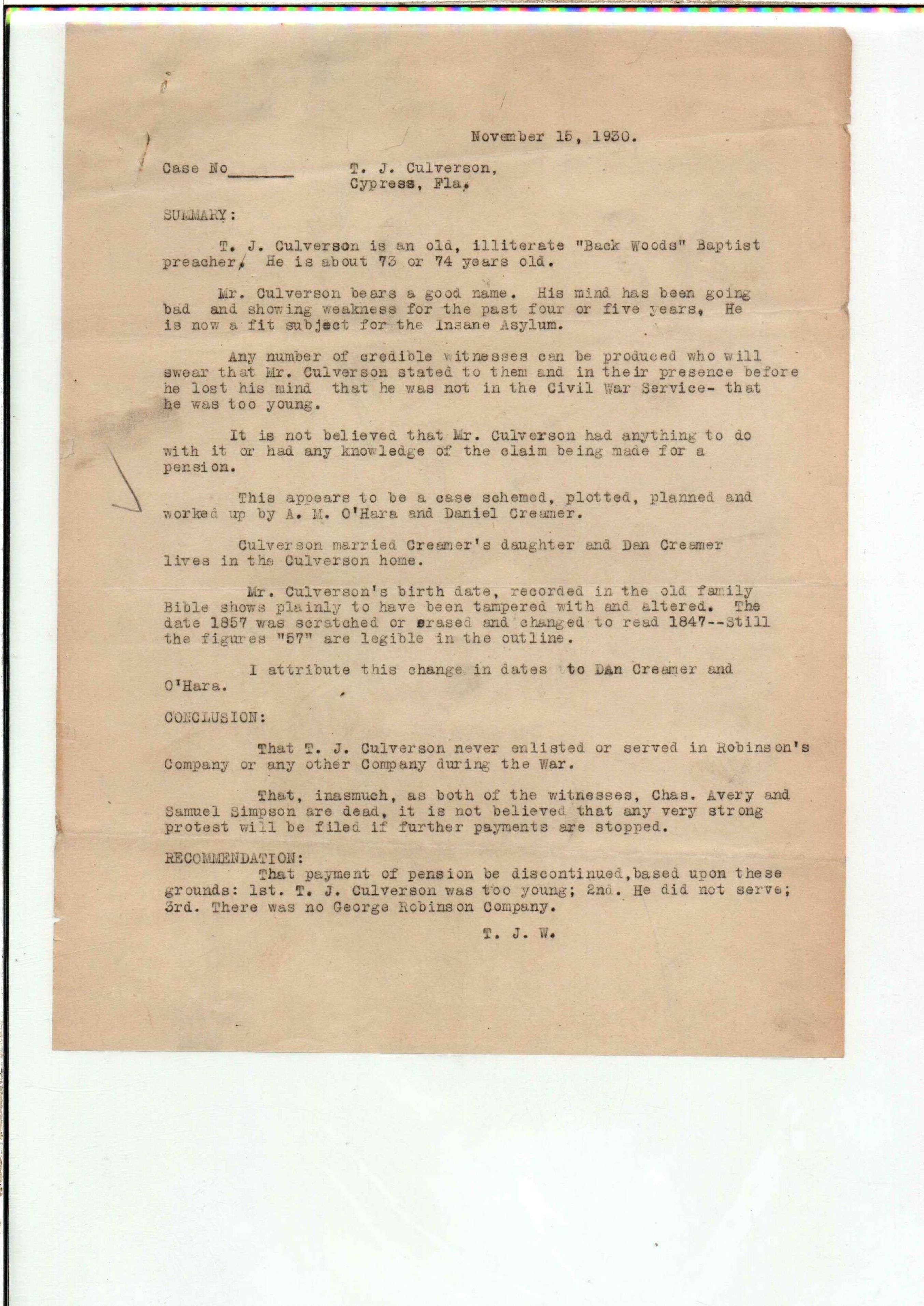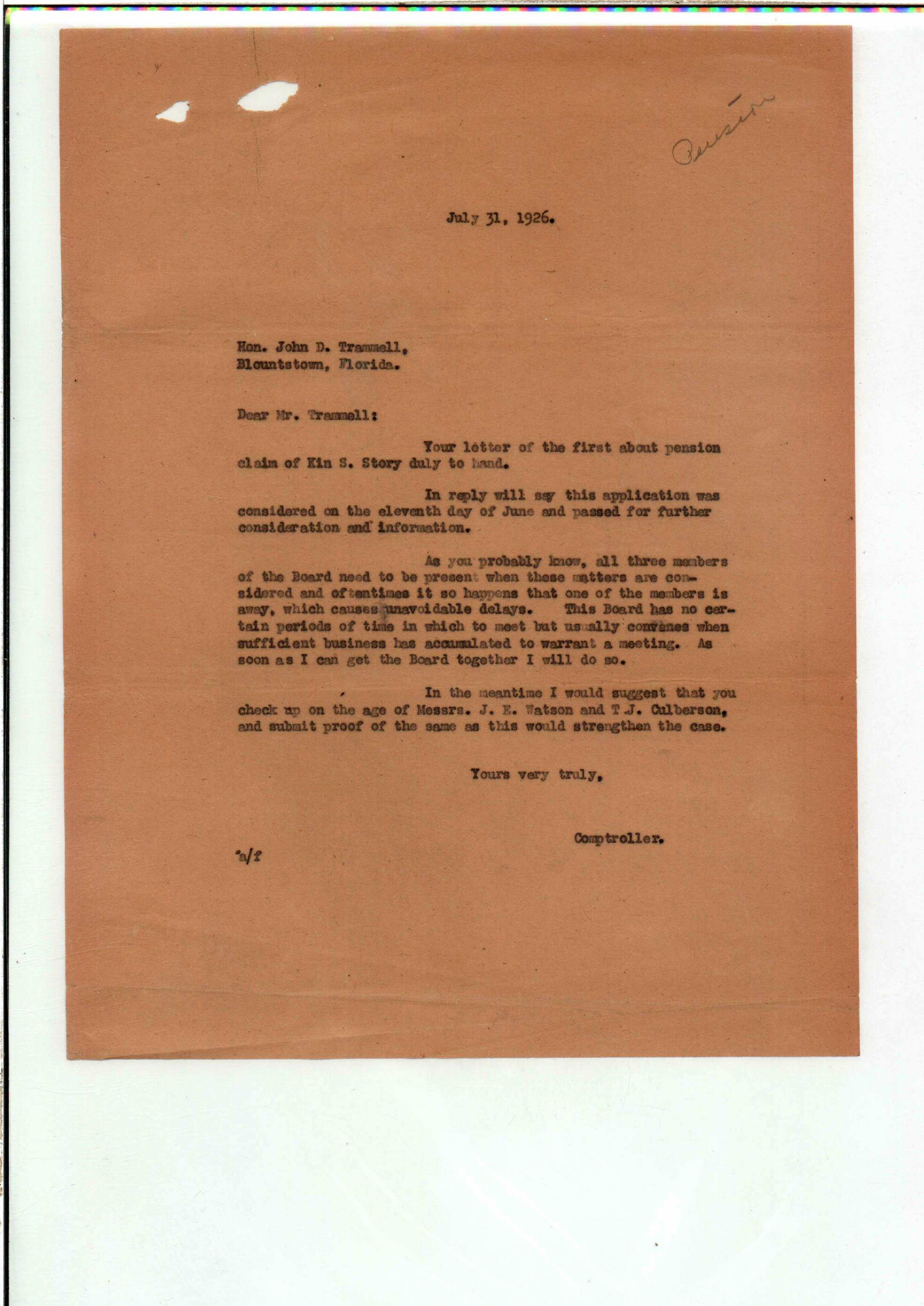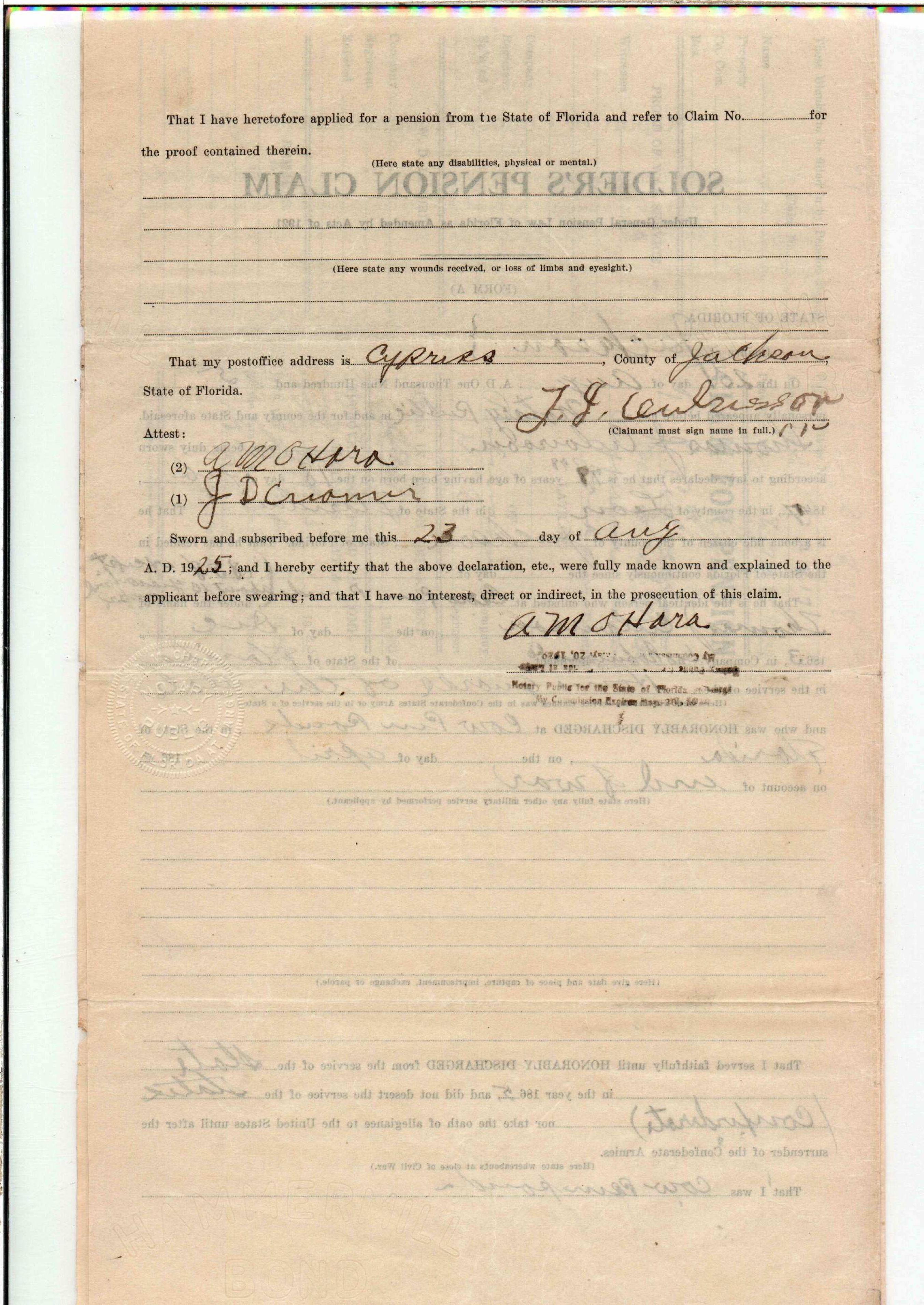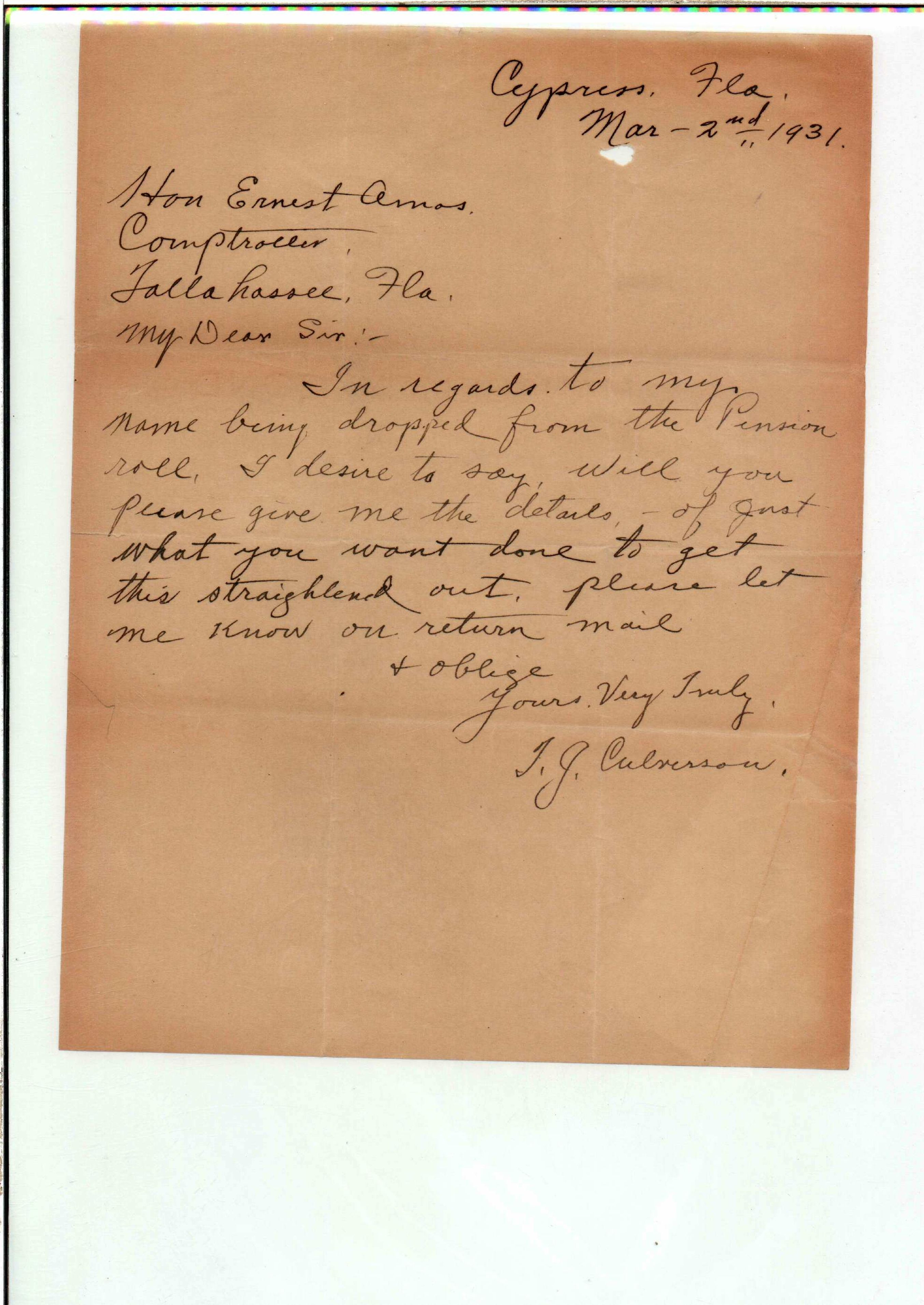 State Board of Pensions. CULVERSON, Thomas J. 1925. State Archives of Florida, Florida Memory. <https://www.floridamemory.com/items/show/172282>, accessed 3 March 2026.