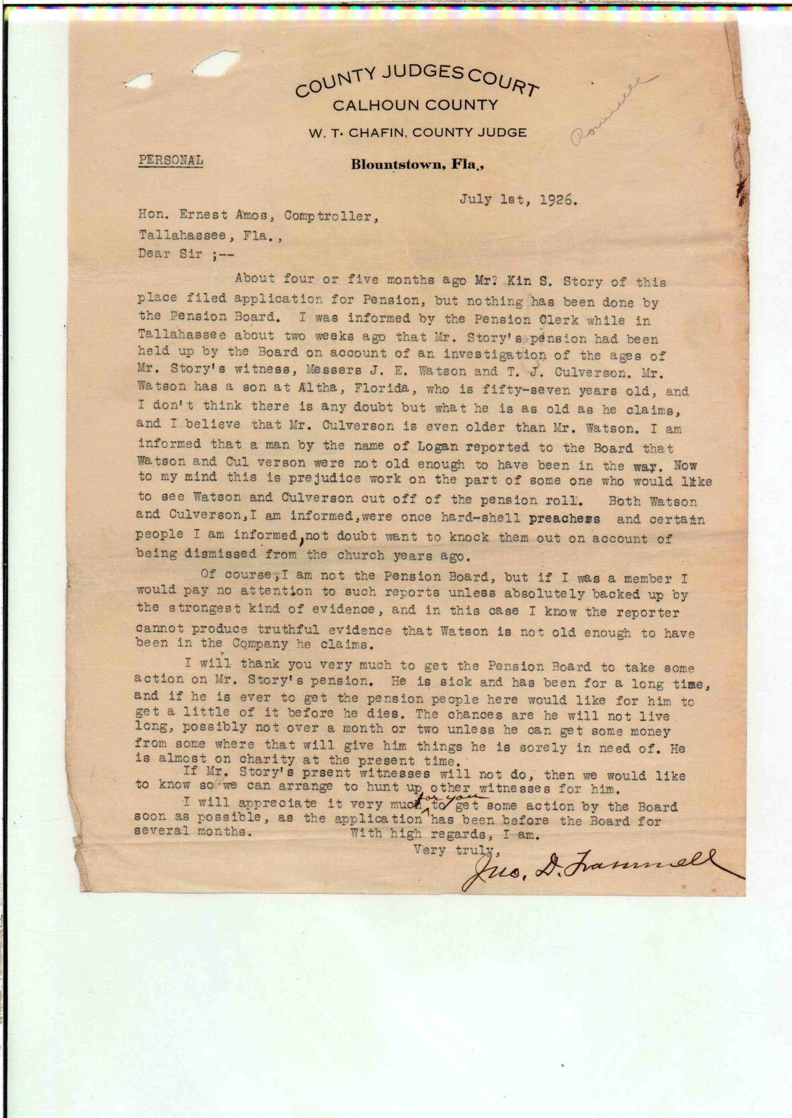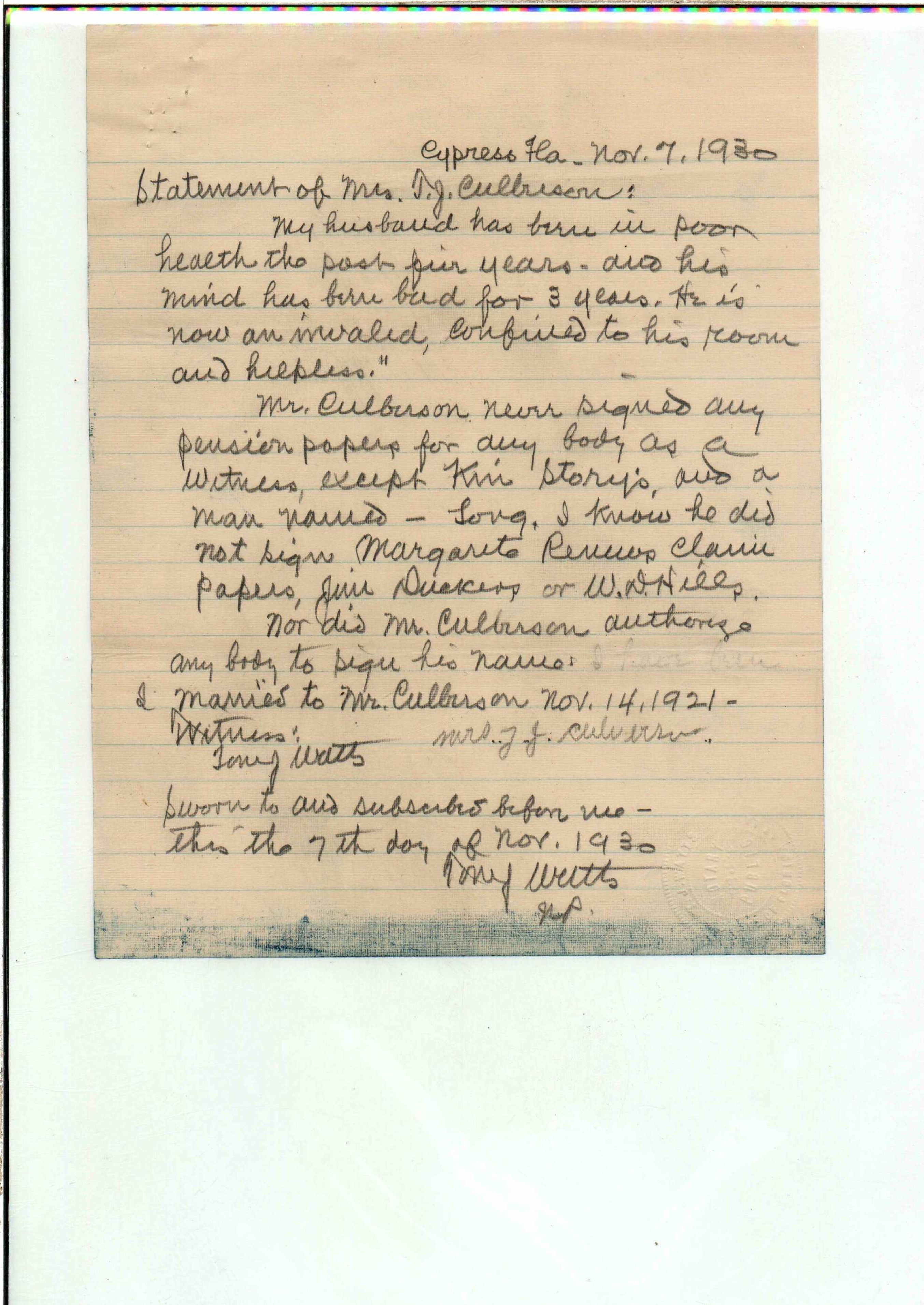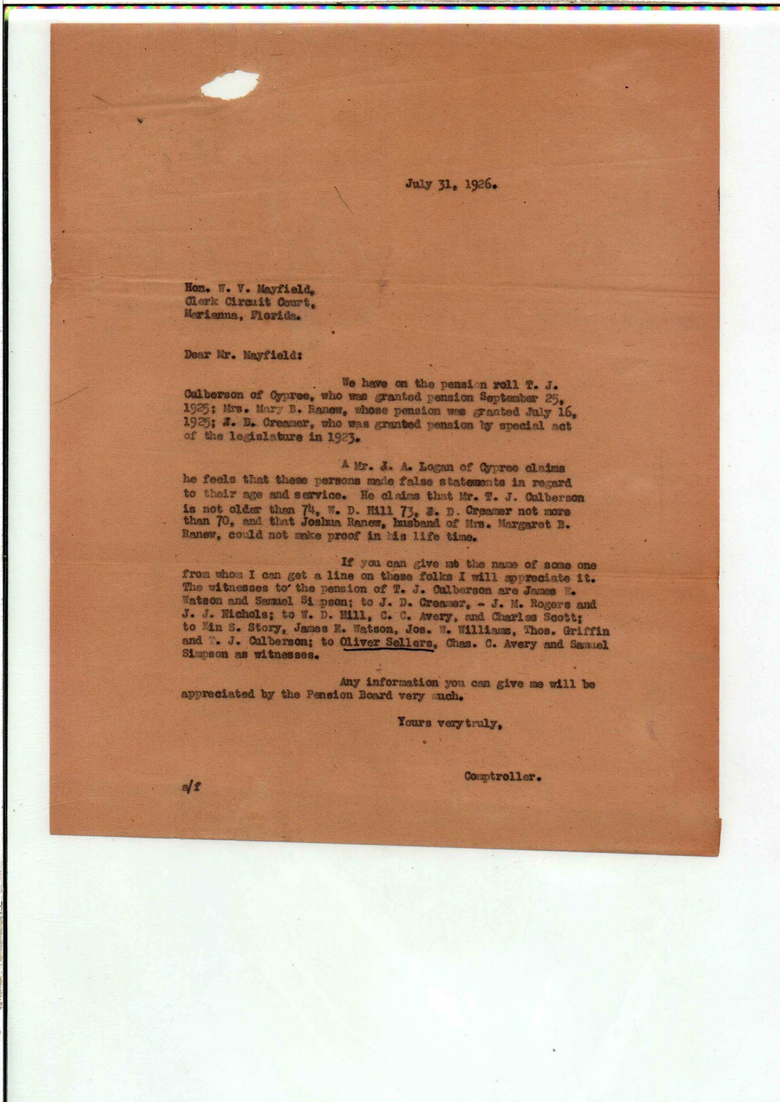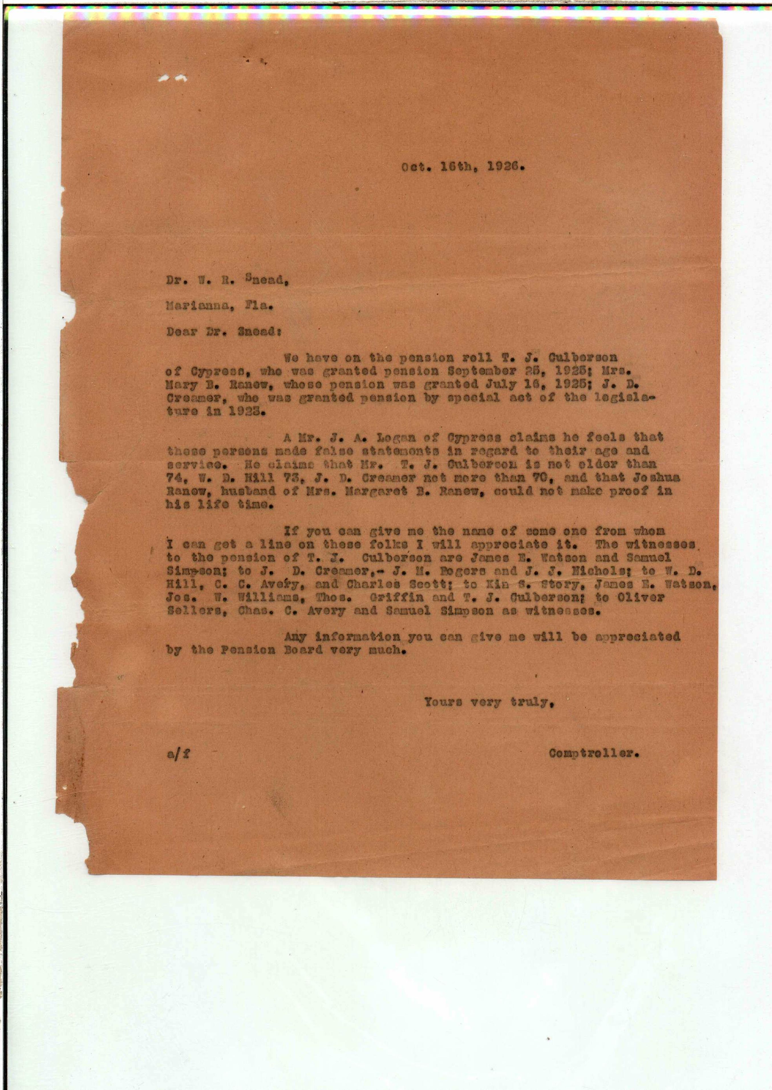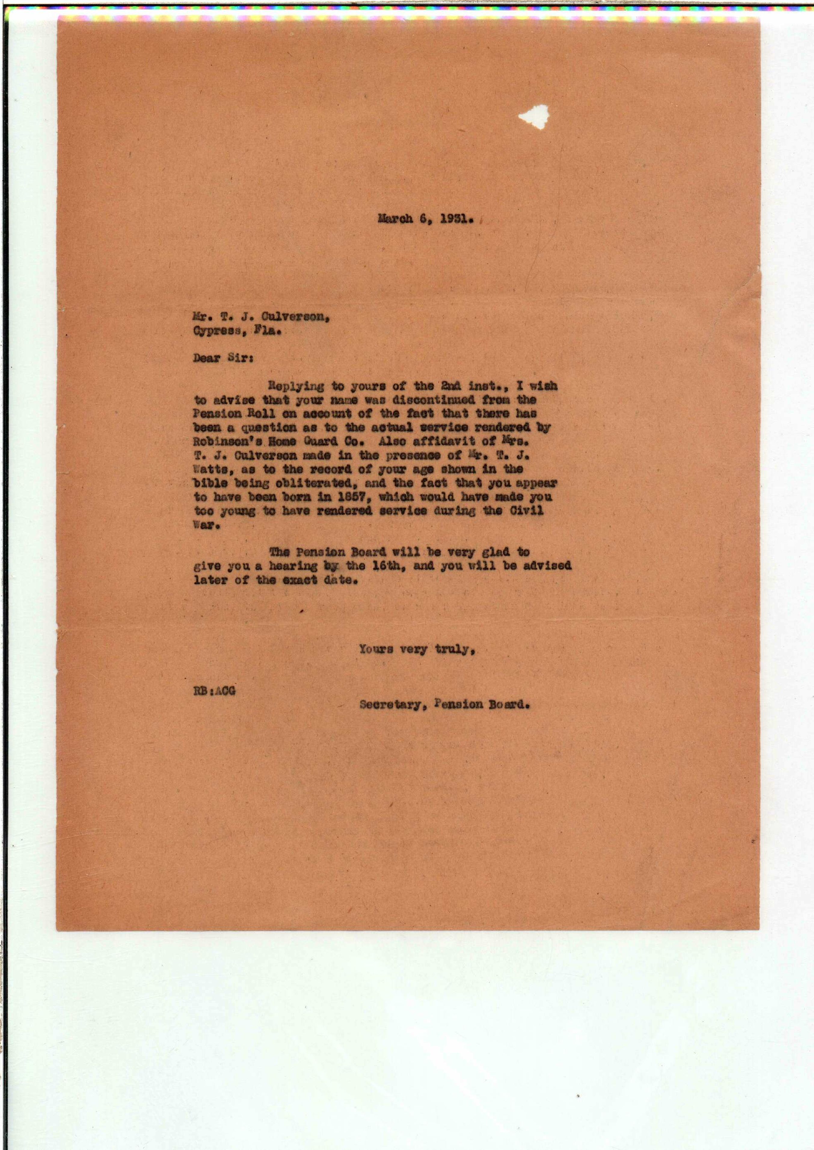 State Board of Pensions. CULVERSON, Thomas J. 1925. State Archives of Florida, Florida Memory. <https://www.floridamemory.com/items/show/172282>, accessed 3 March 2026.