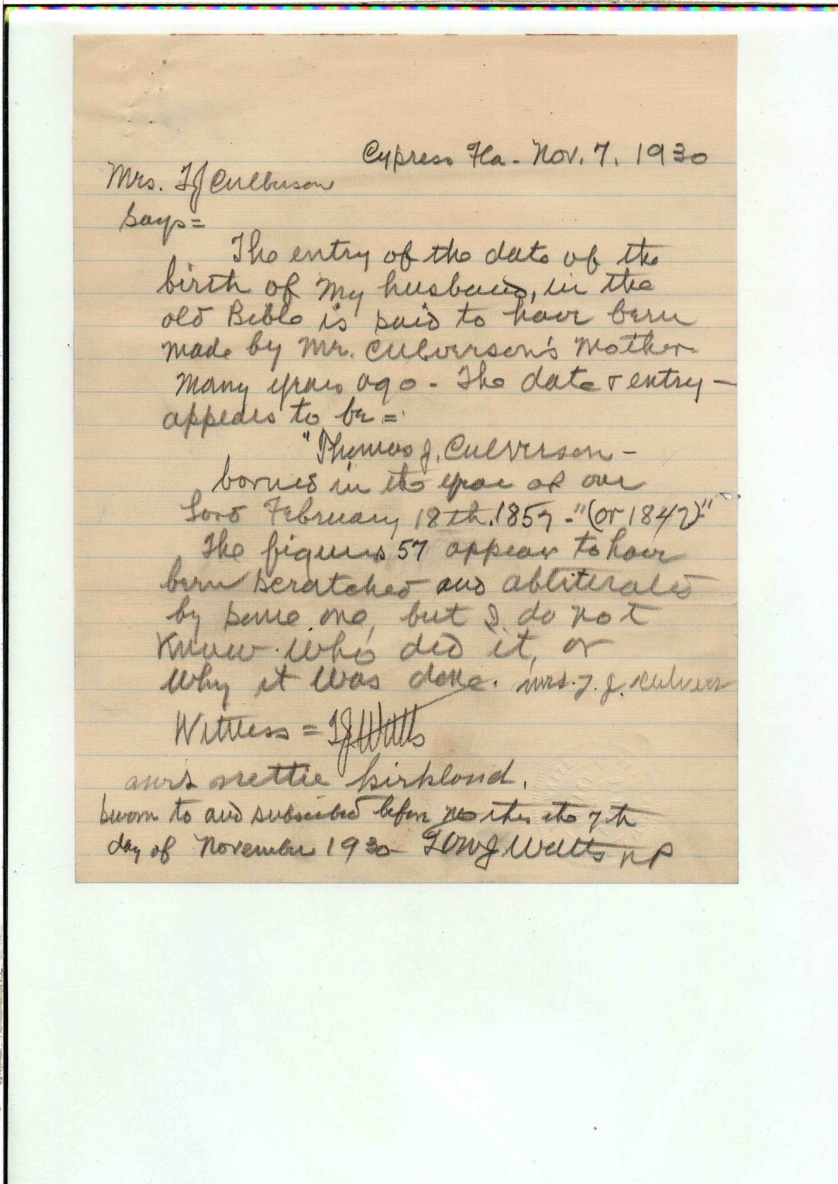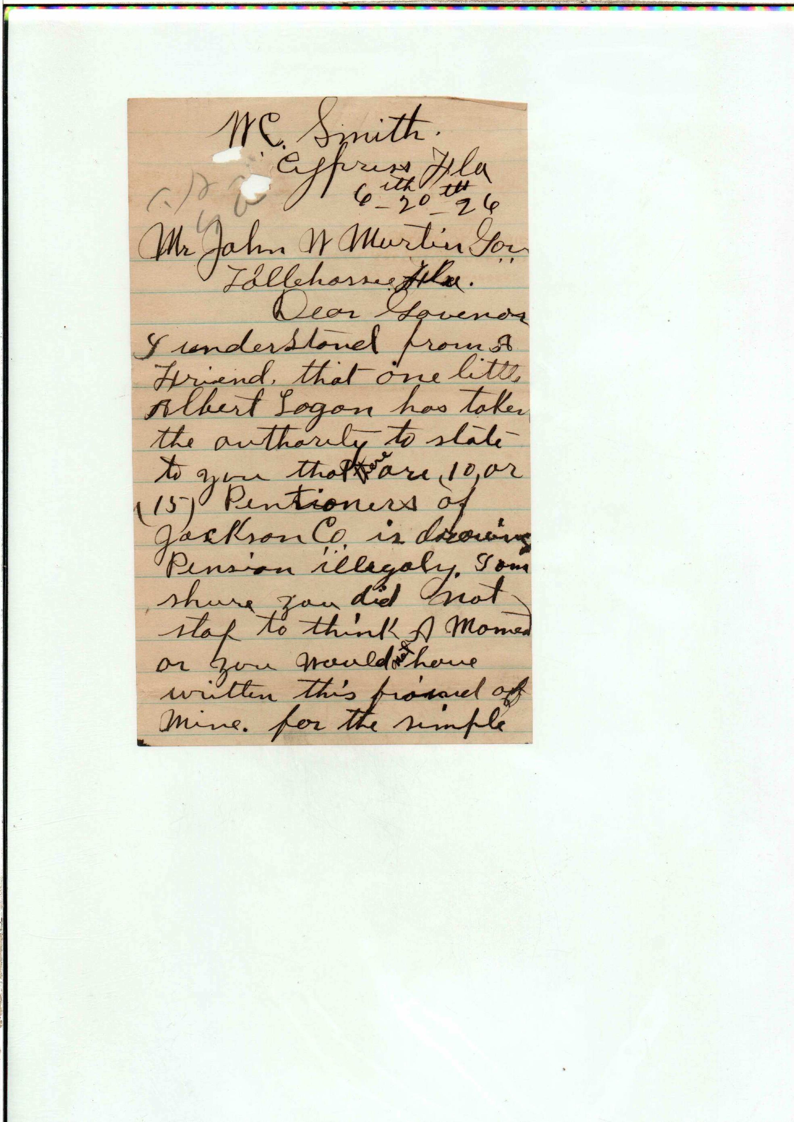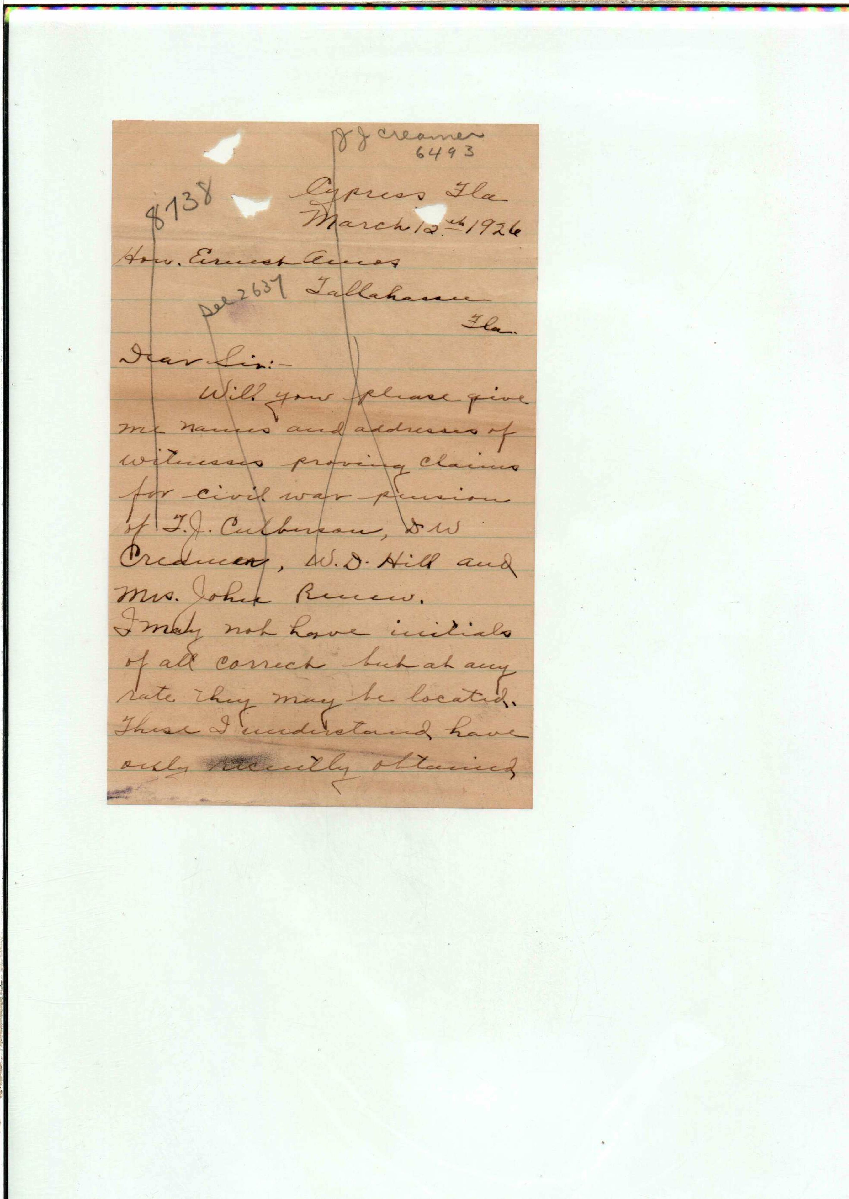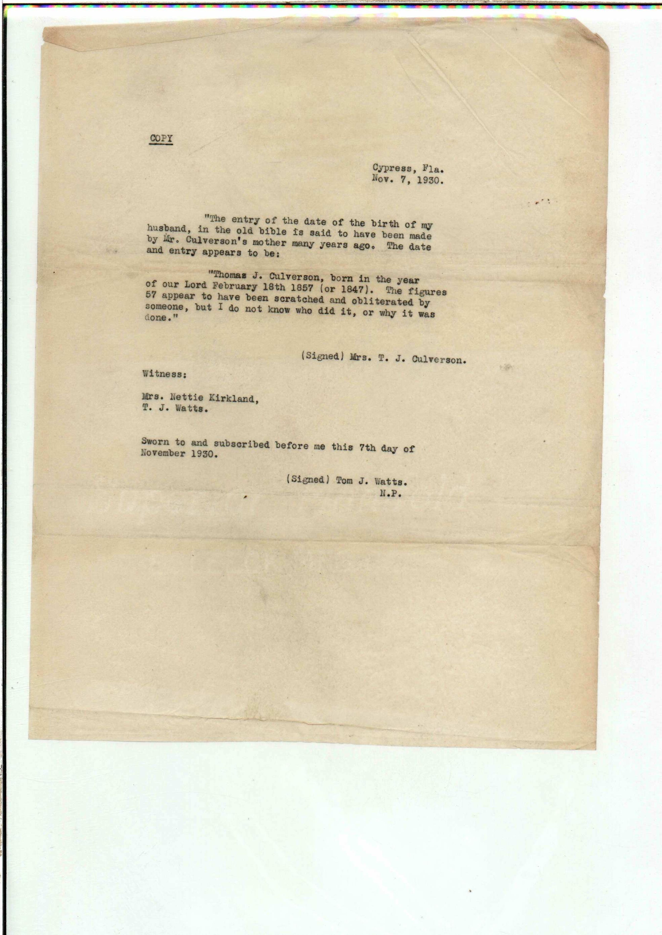 State Board of Pensions. CULVERSON, Thomas J. 1925. State Archives of Florida, Florida Memory. <https://www.floridamemory.com/items/show/172282>, accessed 3 March 2026.