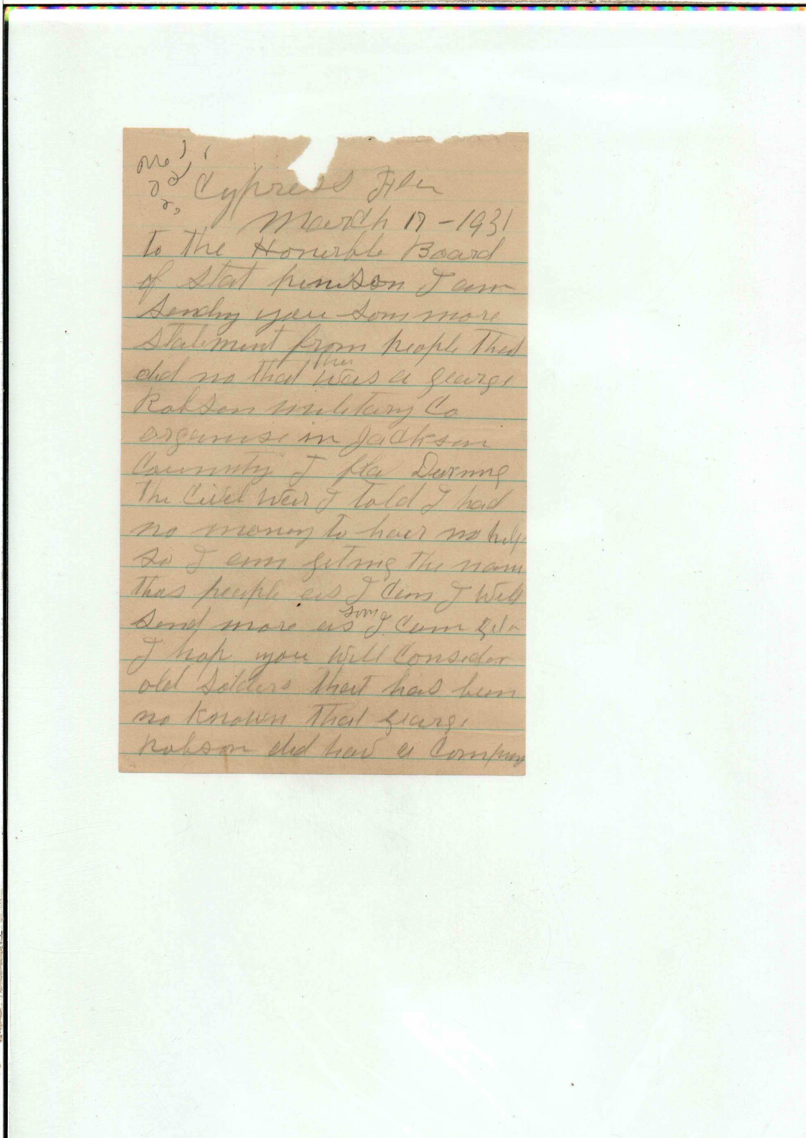 State Board of Pensions. CULVERSON, Thomas J. 1925. State Archives of Florida, Florida Memory. Accessed 3 Mar. 2026.<https://www.floridamemory.com/items/show/172282>