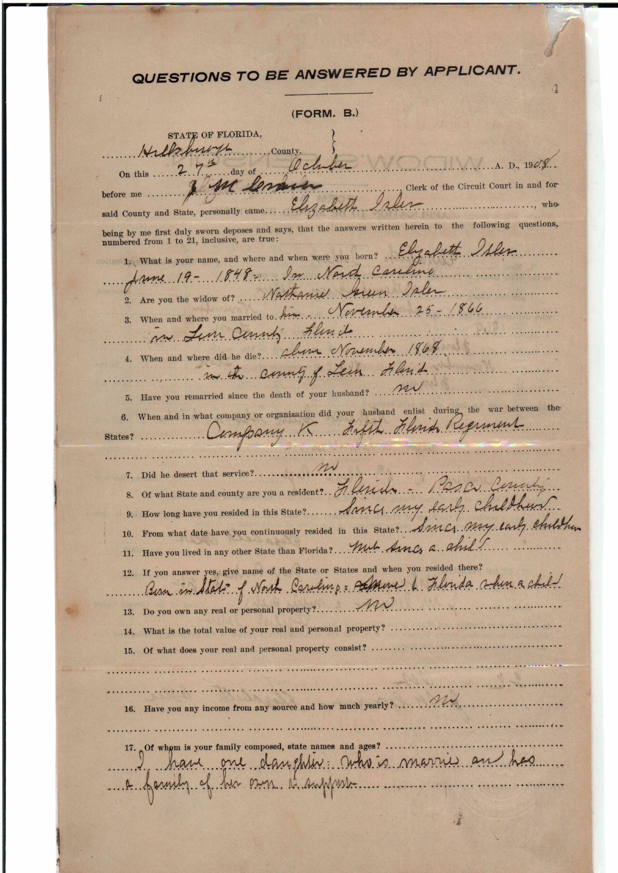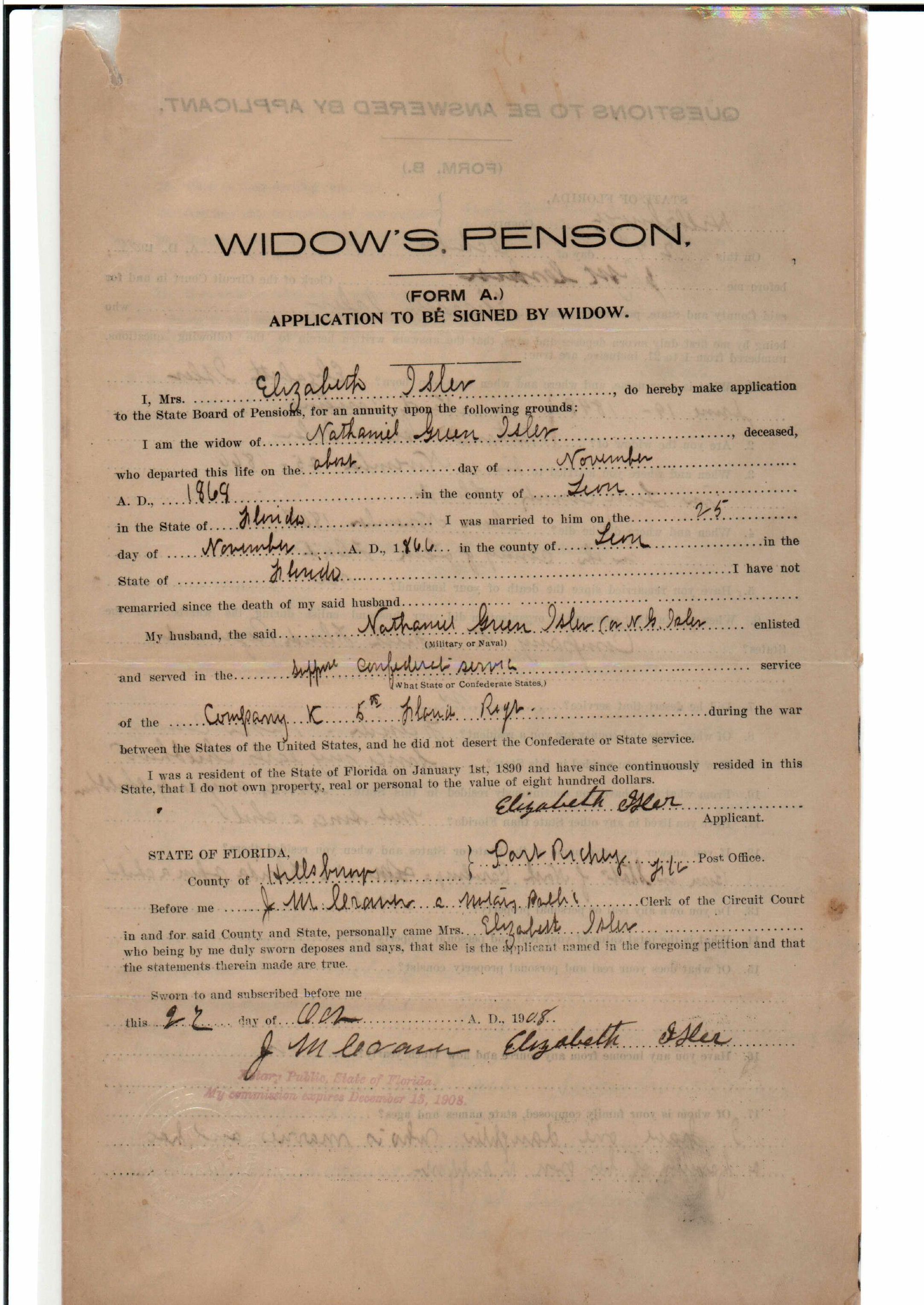 ISLER, Nathaniel Green