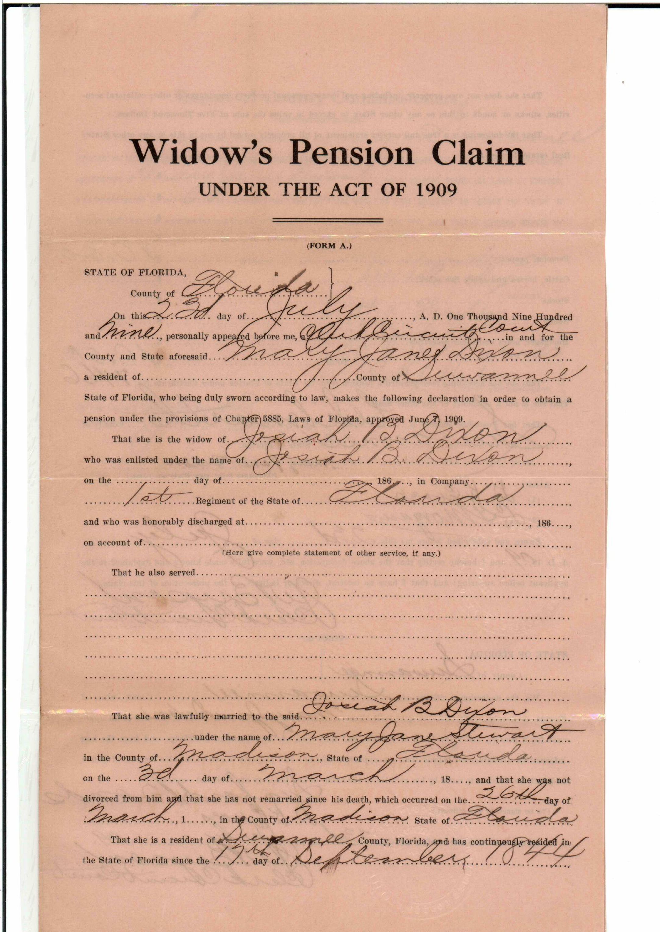 State Board of Pensions. DIXON, Josiah B. 1904. State Archives of Florida, Florida Memory. <https://www.floridamemory.com/items/show/172511>, accessed 27 December 2025.