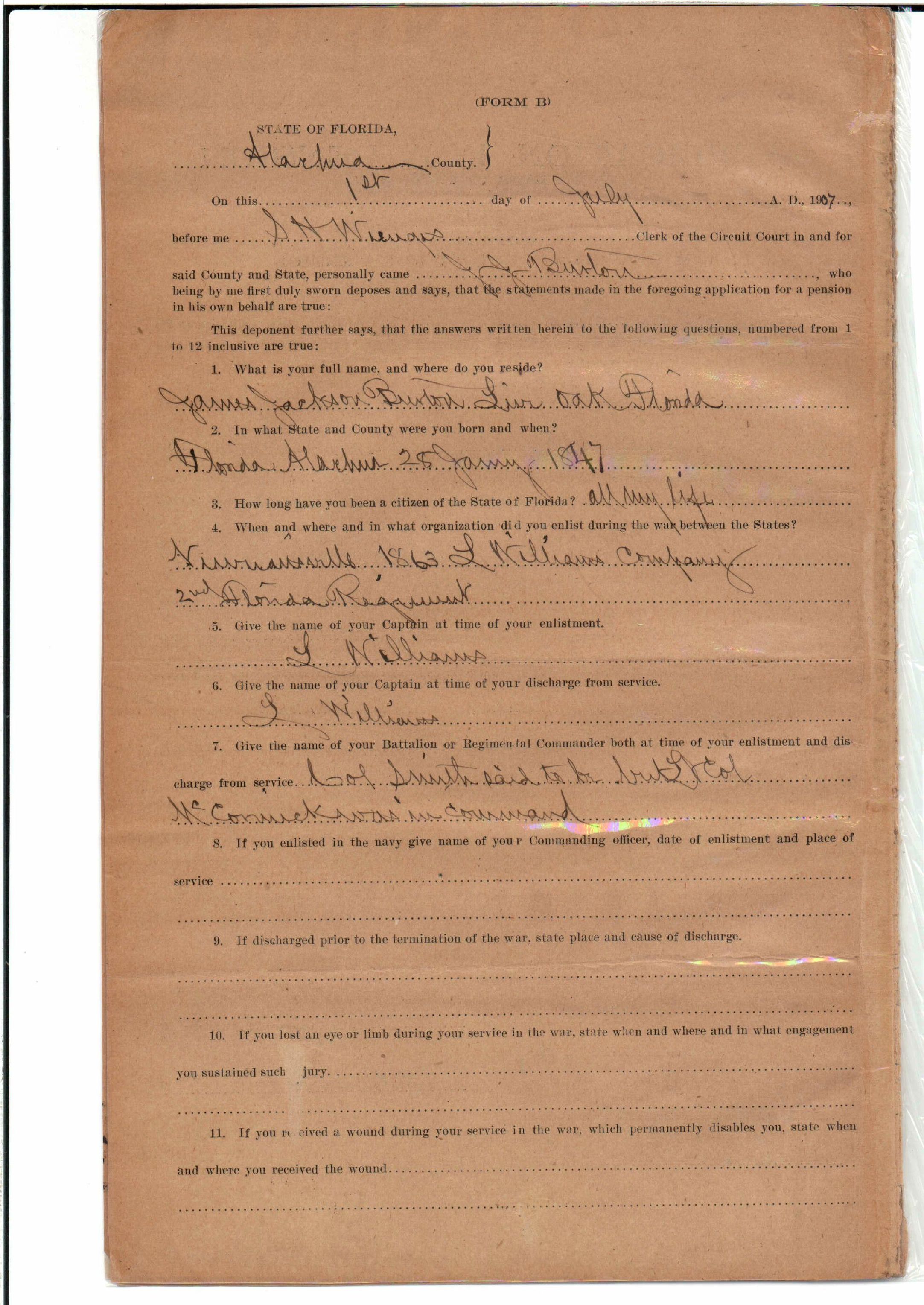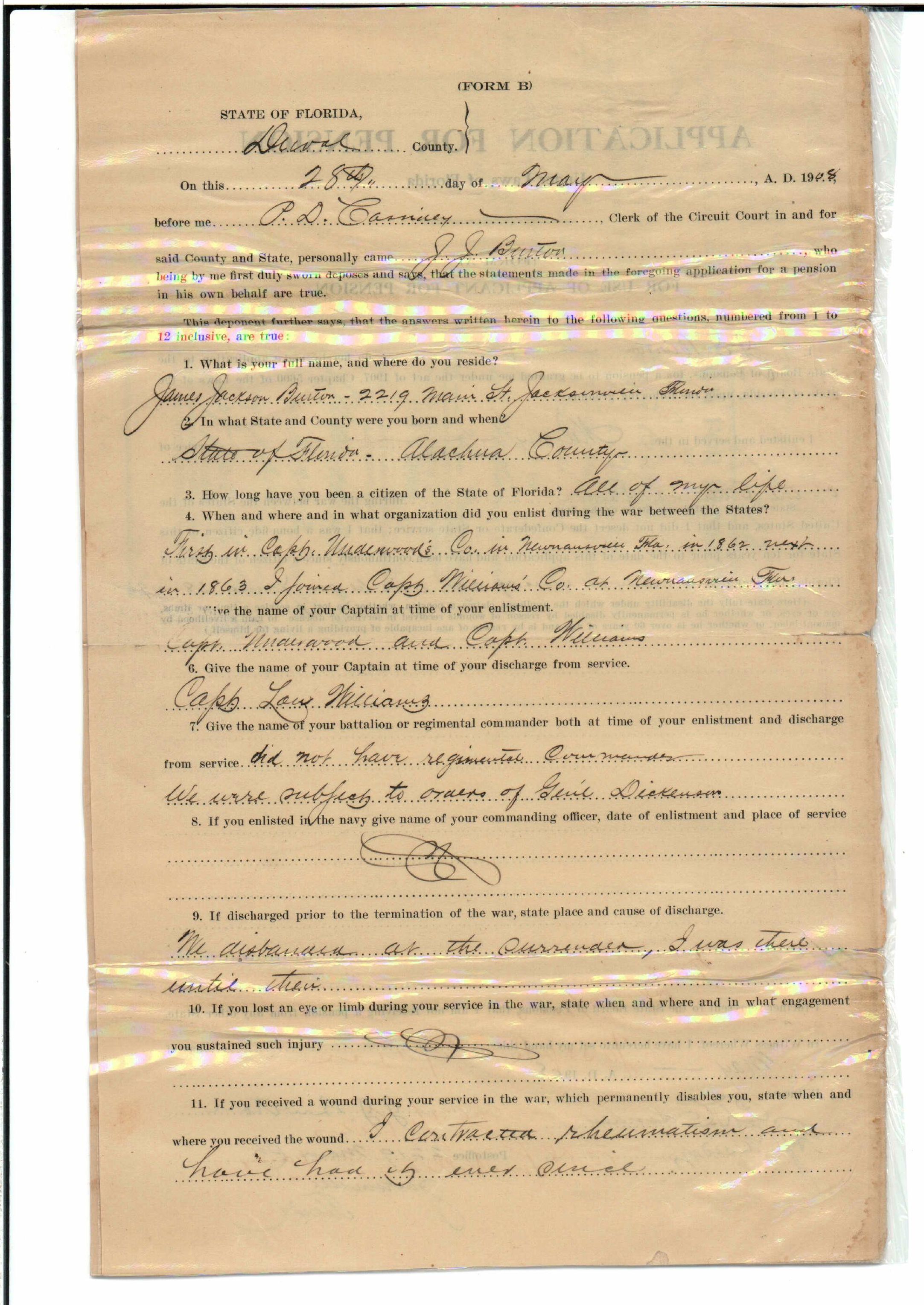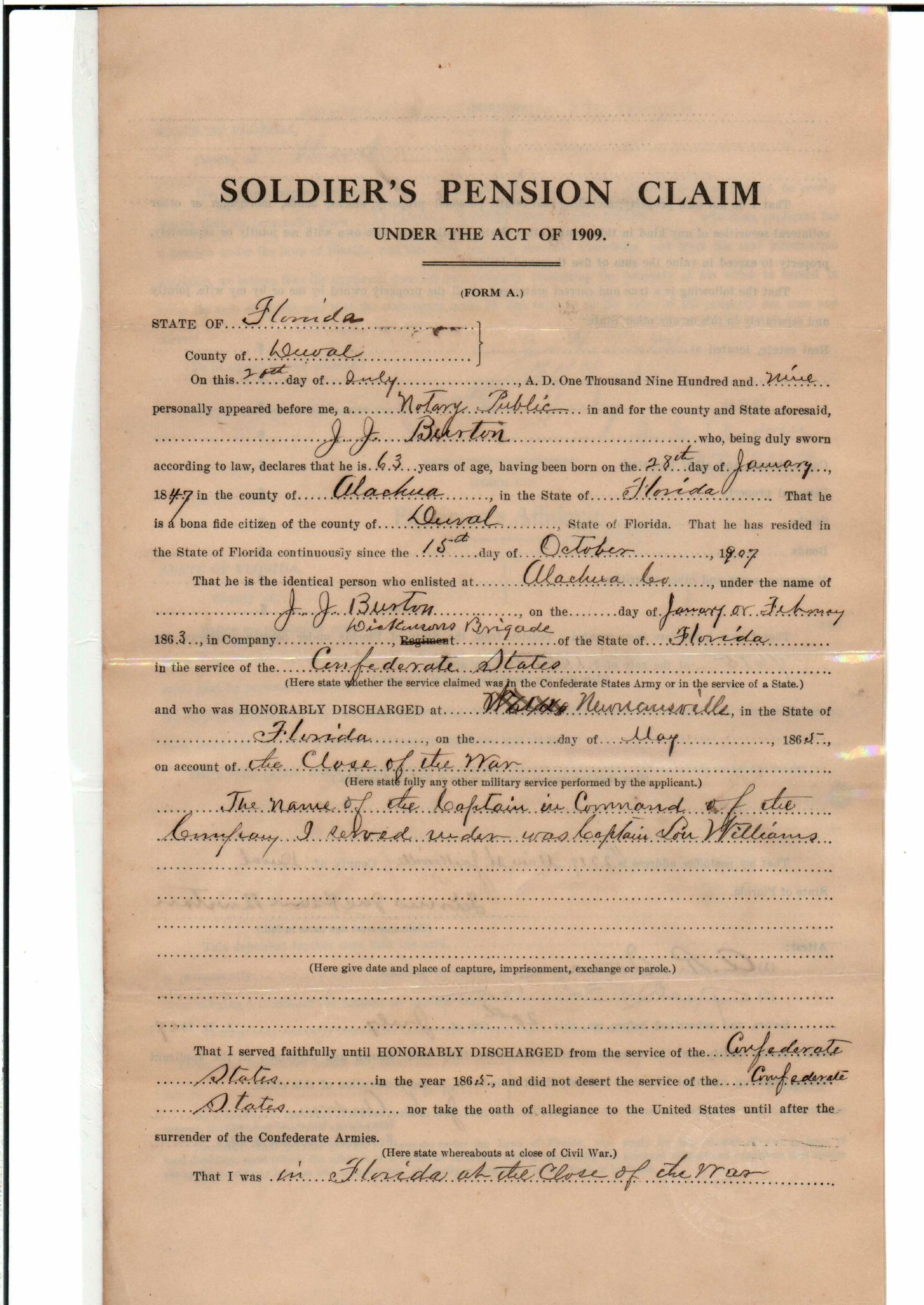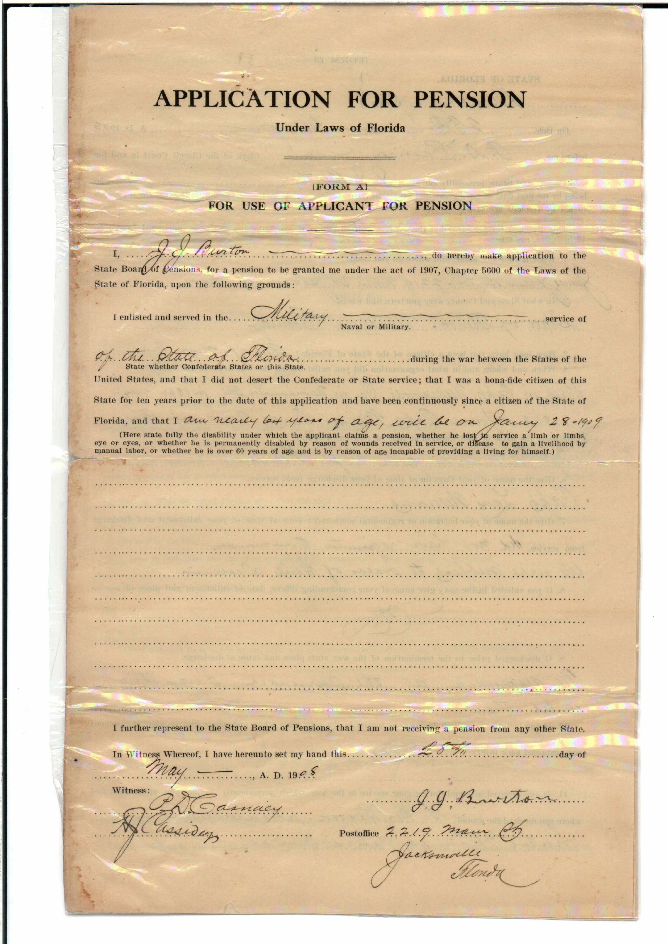 State Board of Pensions. BURTON, James Jackson. 1907. State Archives of Florida, Florida Memory. <https://www.floridamemory.com/items/show/174929>, accessed 24 January 2026.