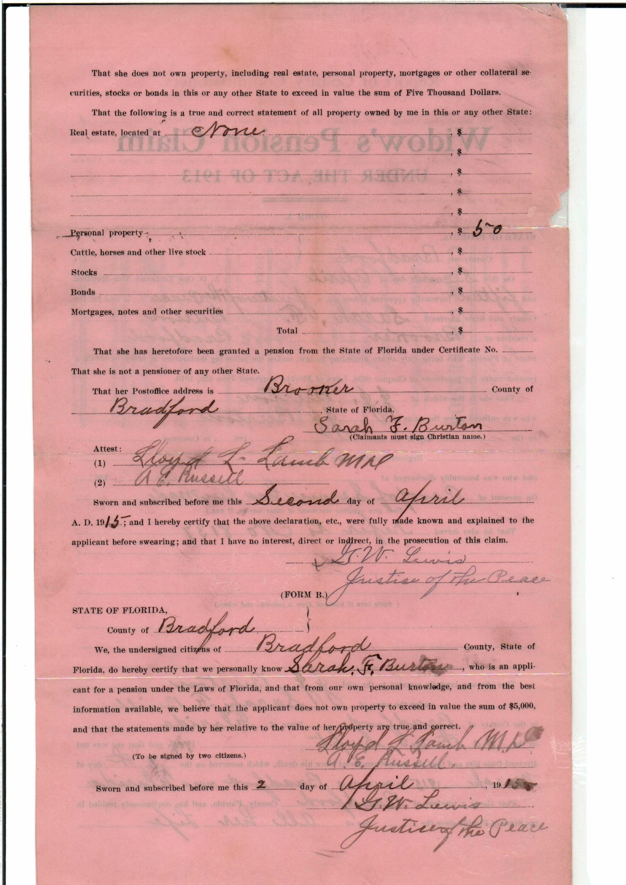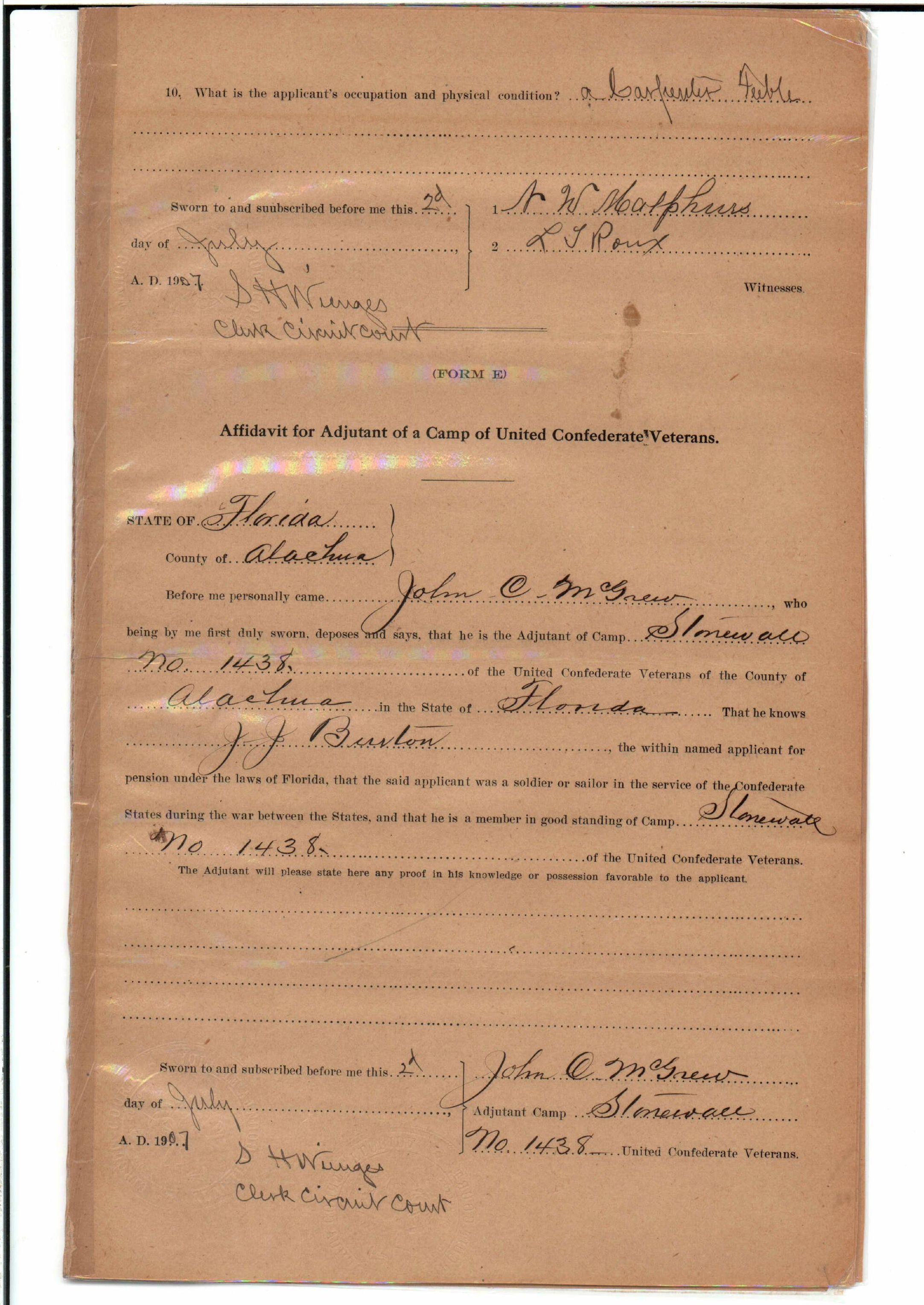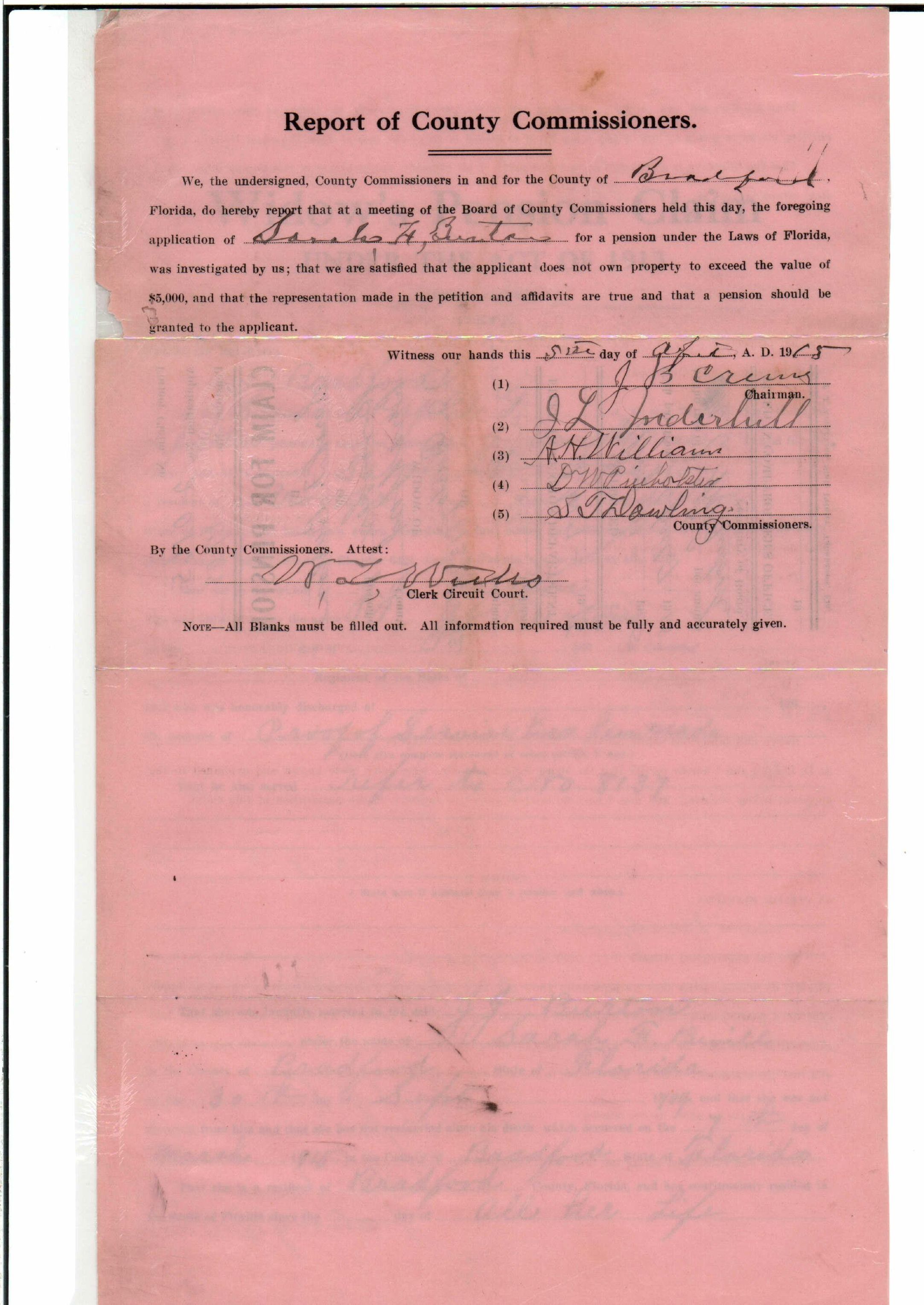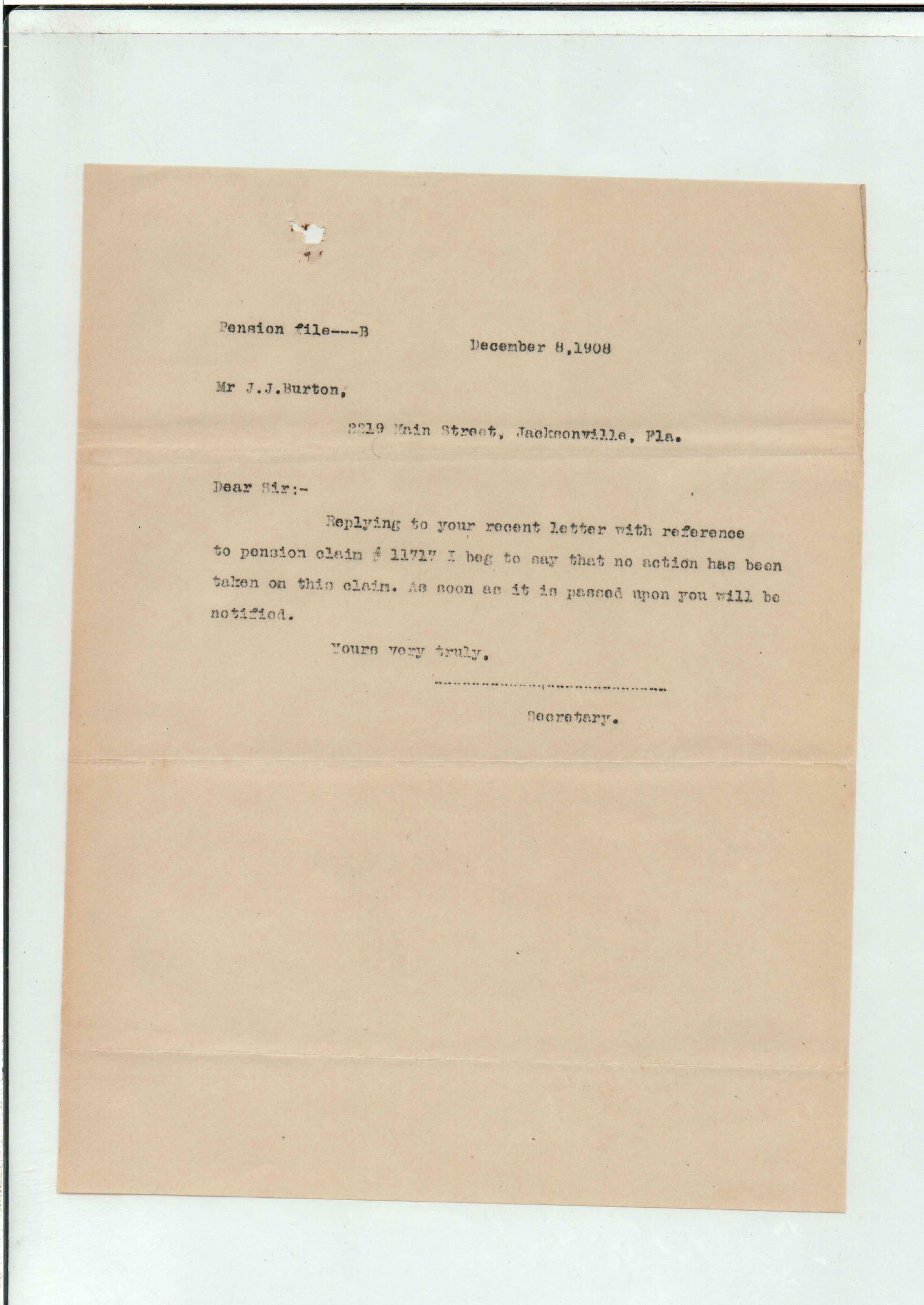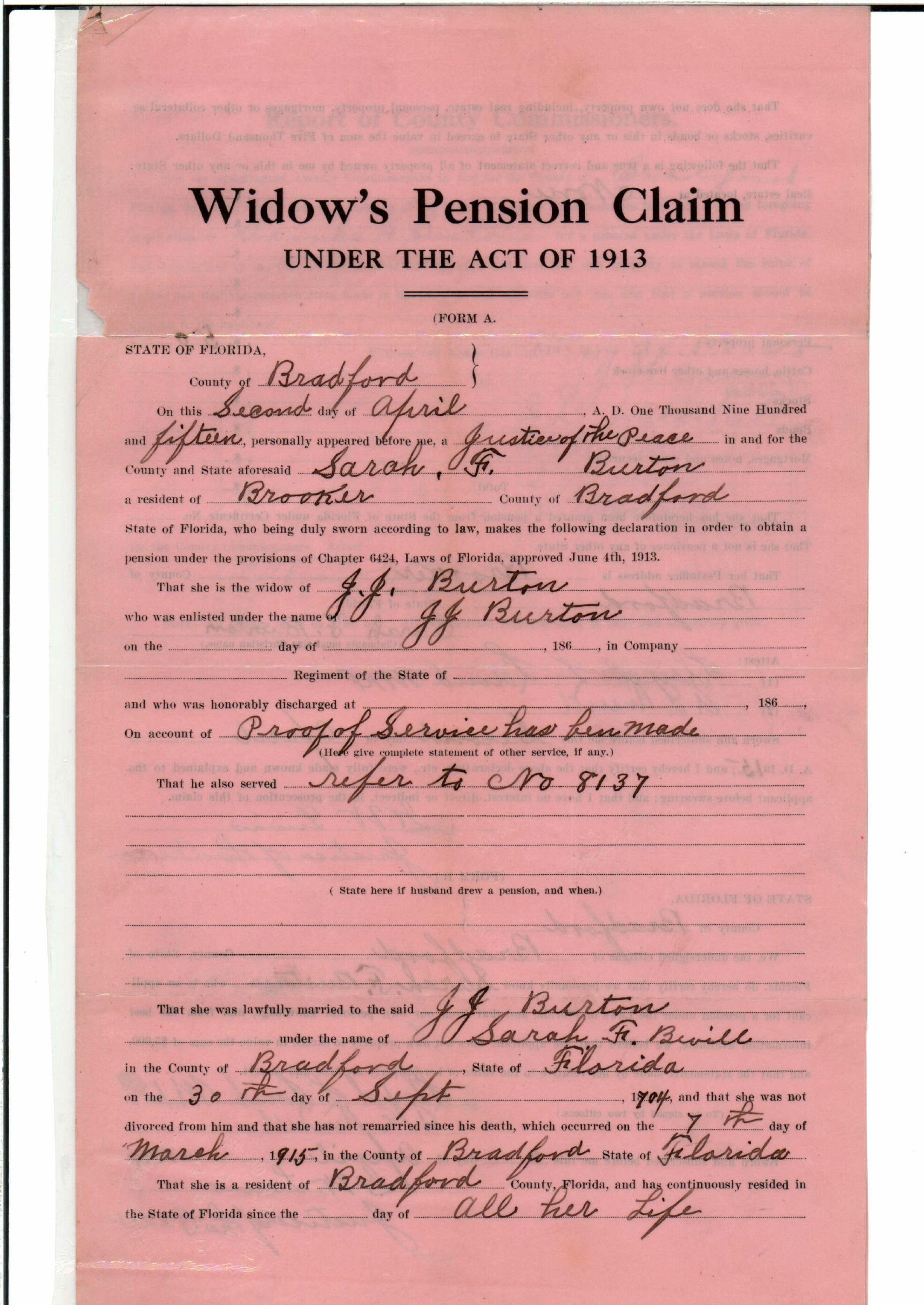 State Board of Pensions. BURTON, James Jackson. 1907. State Archives of Florida, Florida Memory. <https://www.floridamemory.com/items/show/174929>, accessed 24 January 2026.