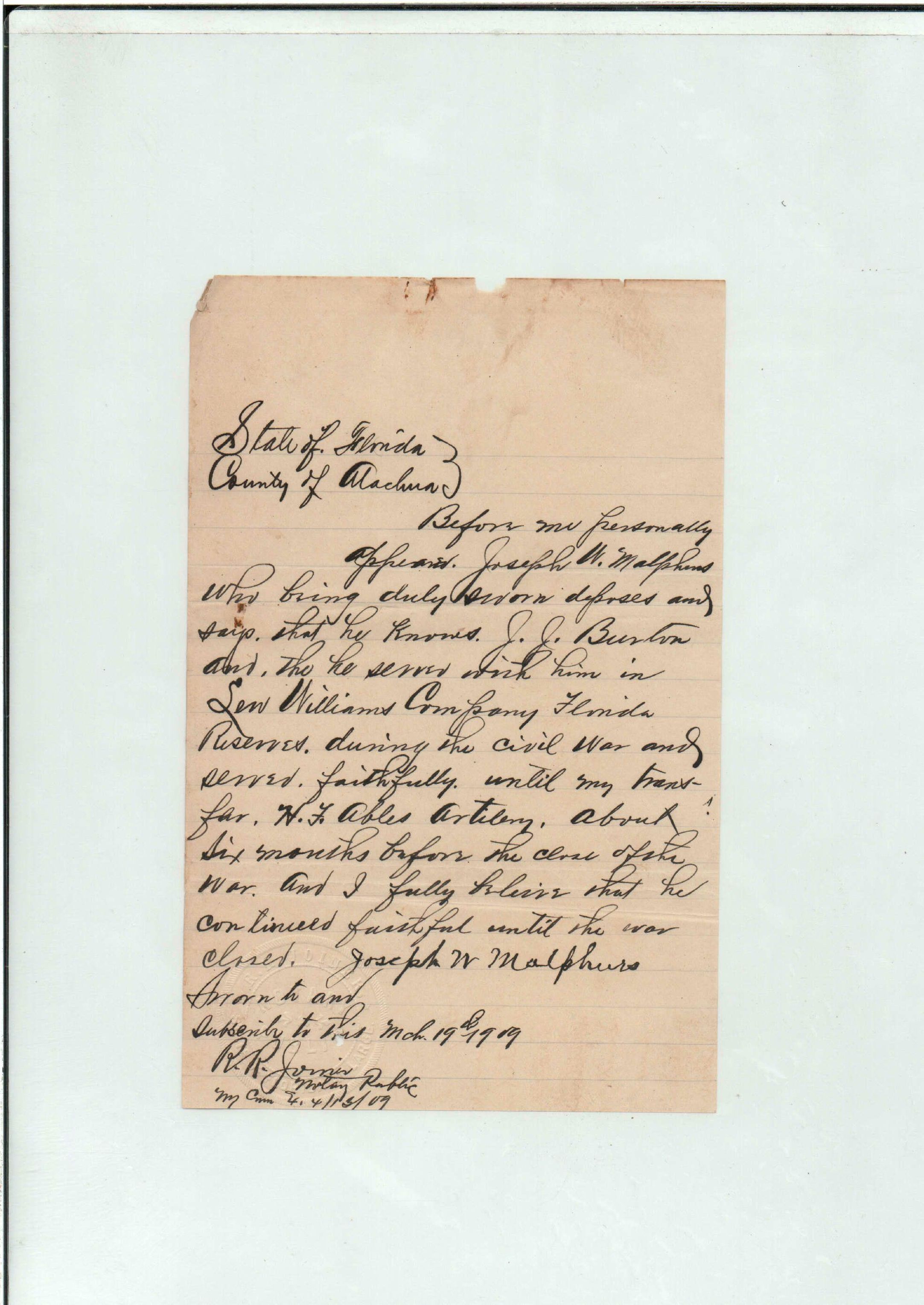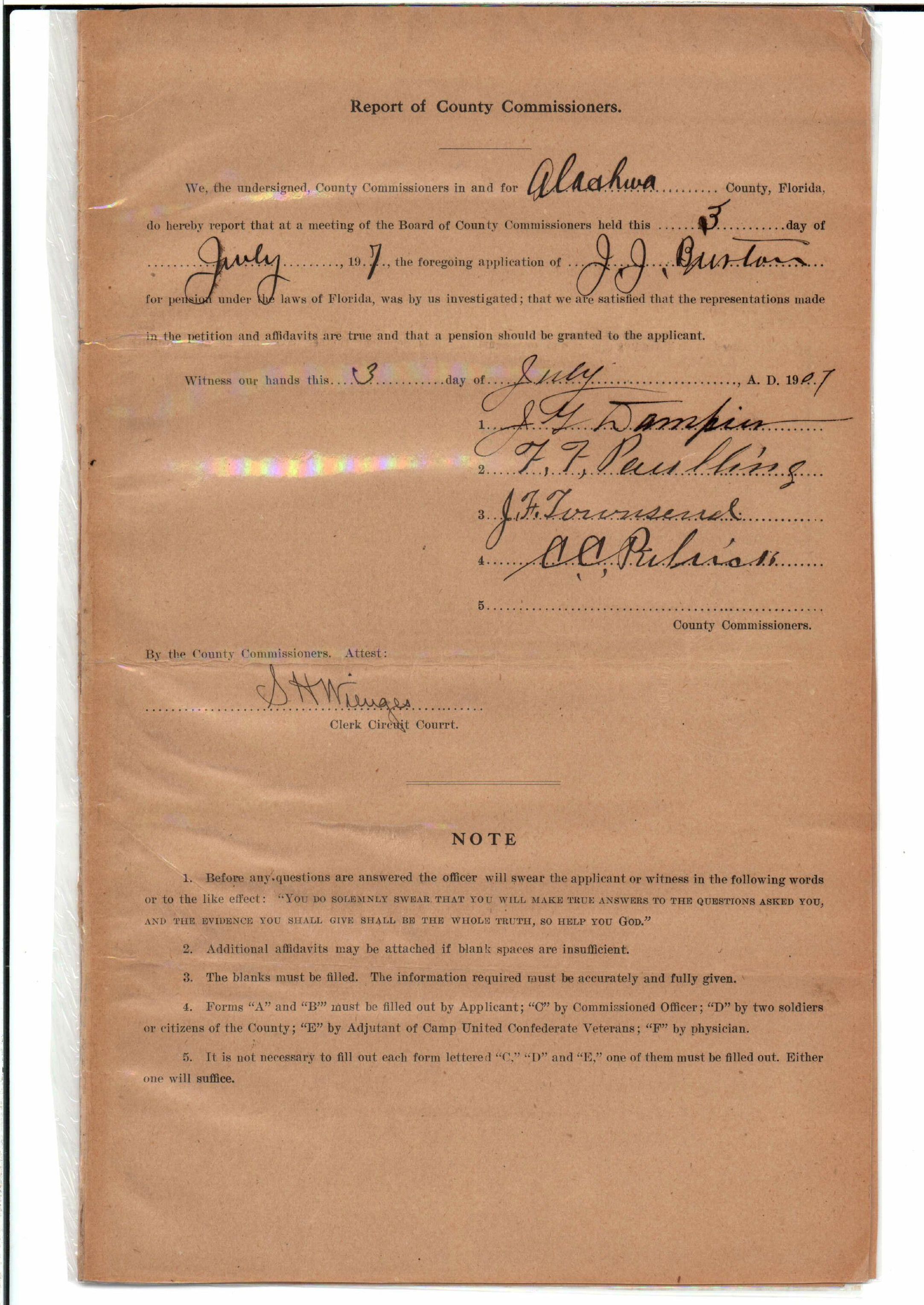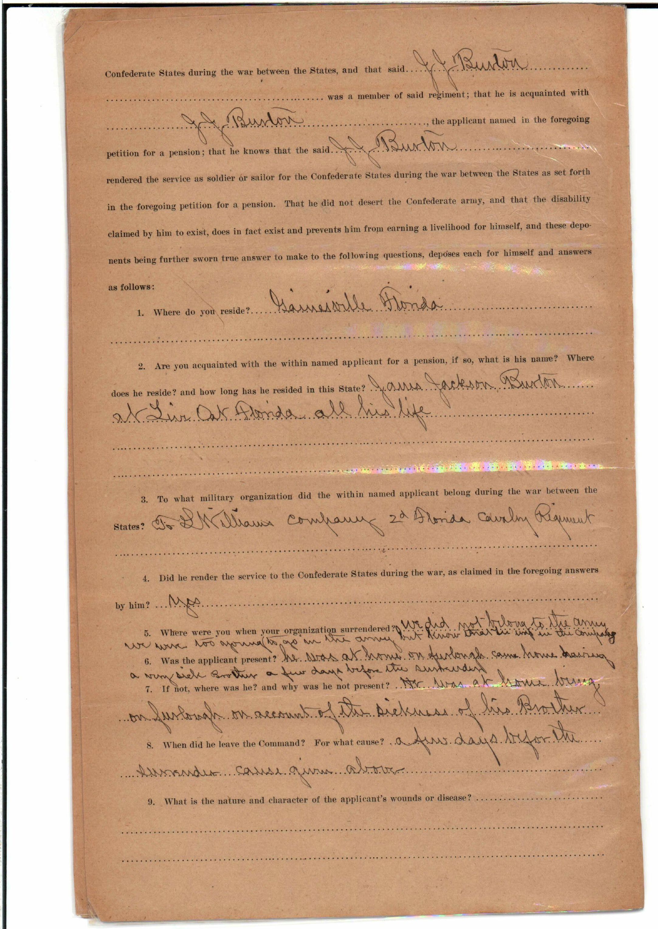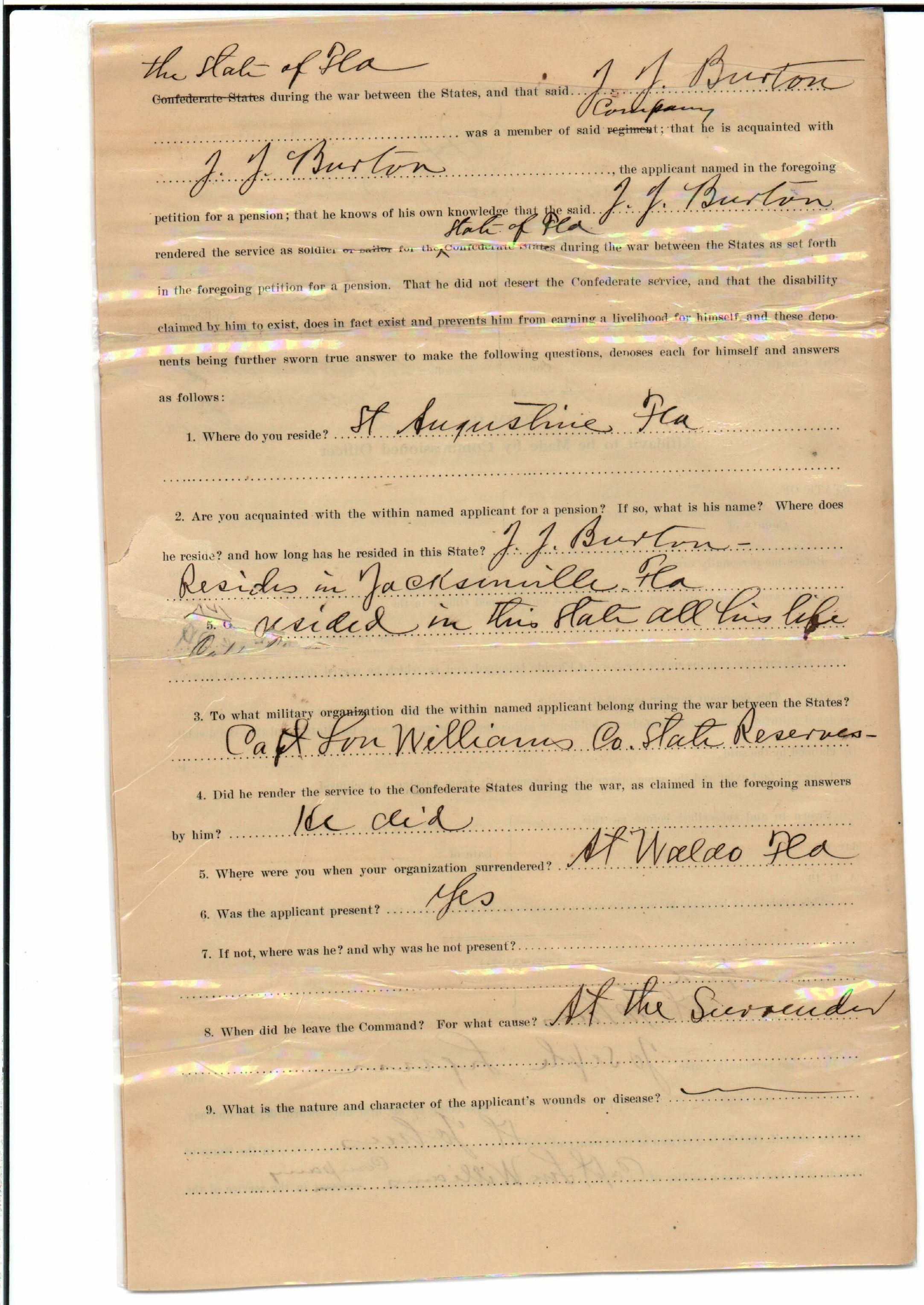 State Board of Pensions. BURTON, James Jackson. 1907. State Archives of Florida, Florida Memory. Accessed 24 Jan. 2026.<https://www.floridamemory.com/items/show/174929>