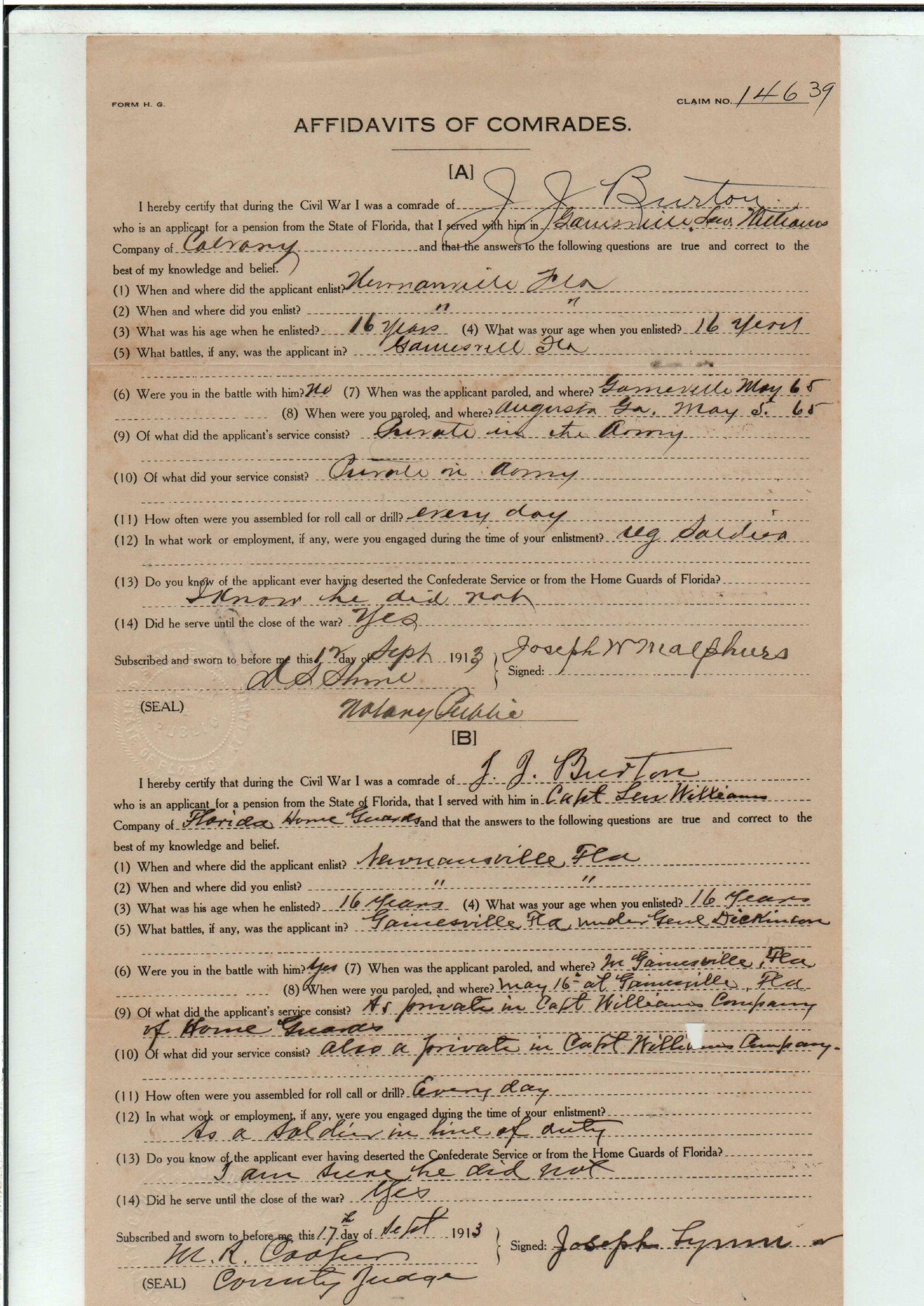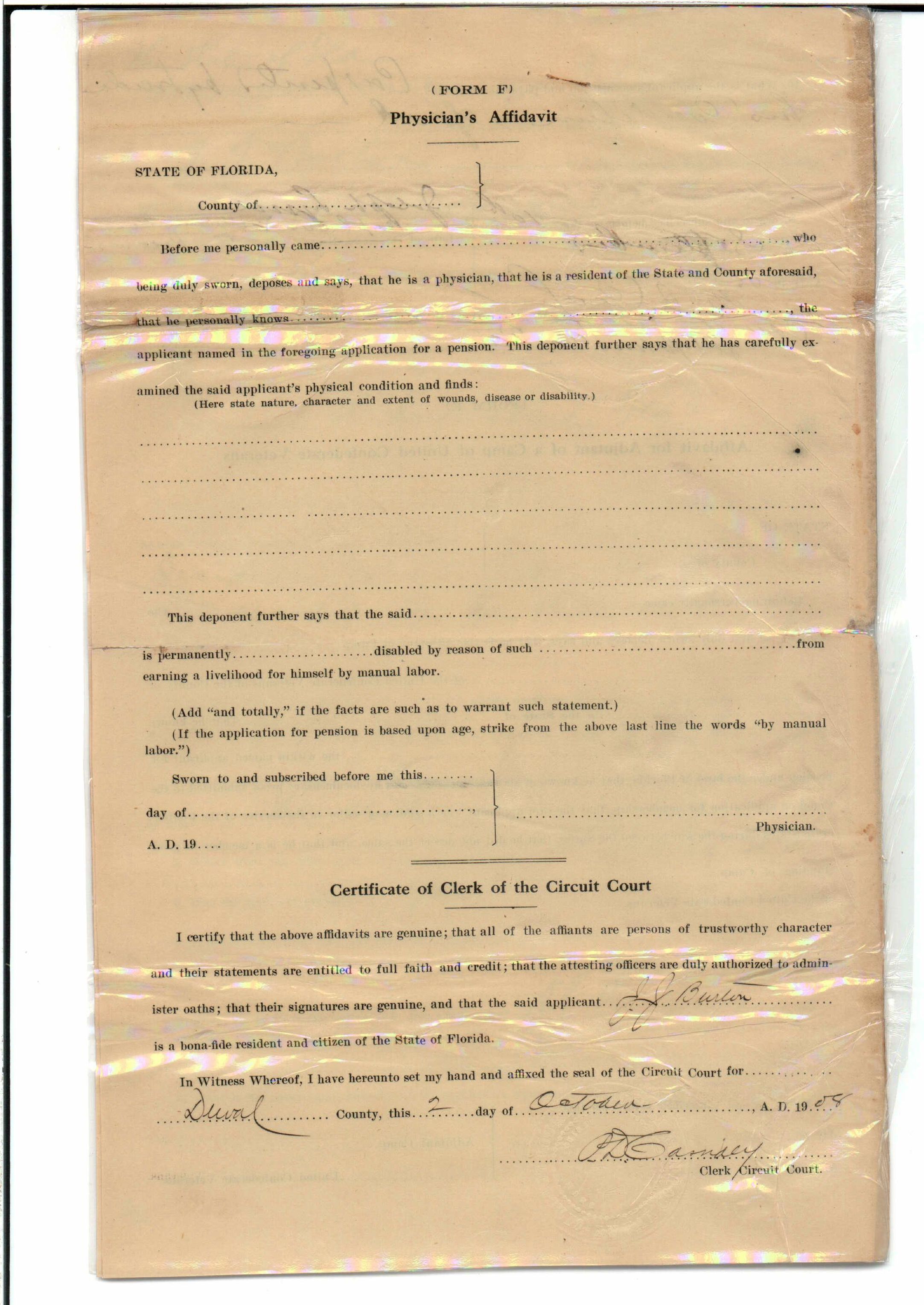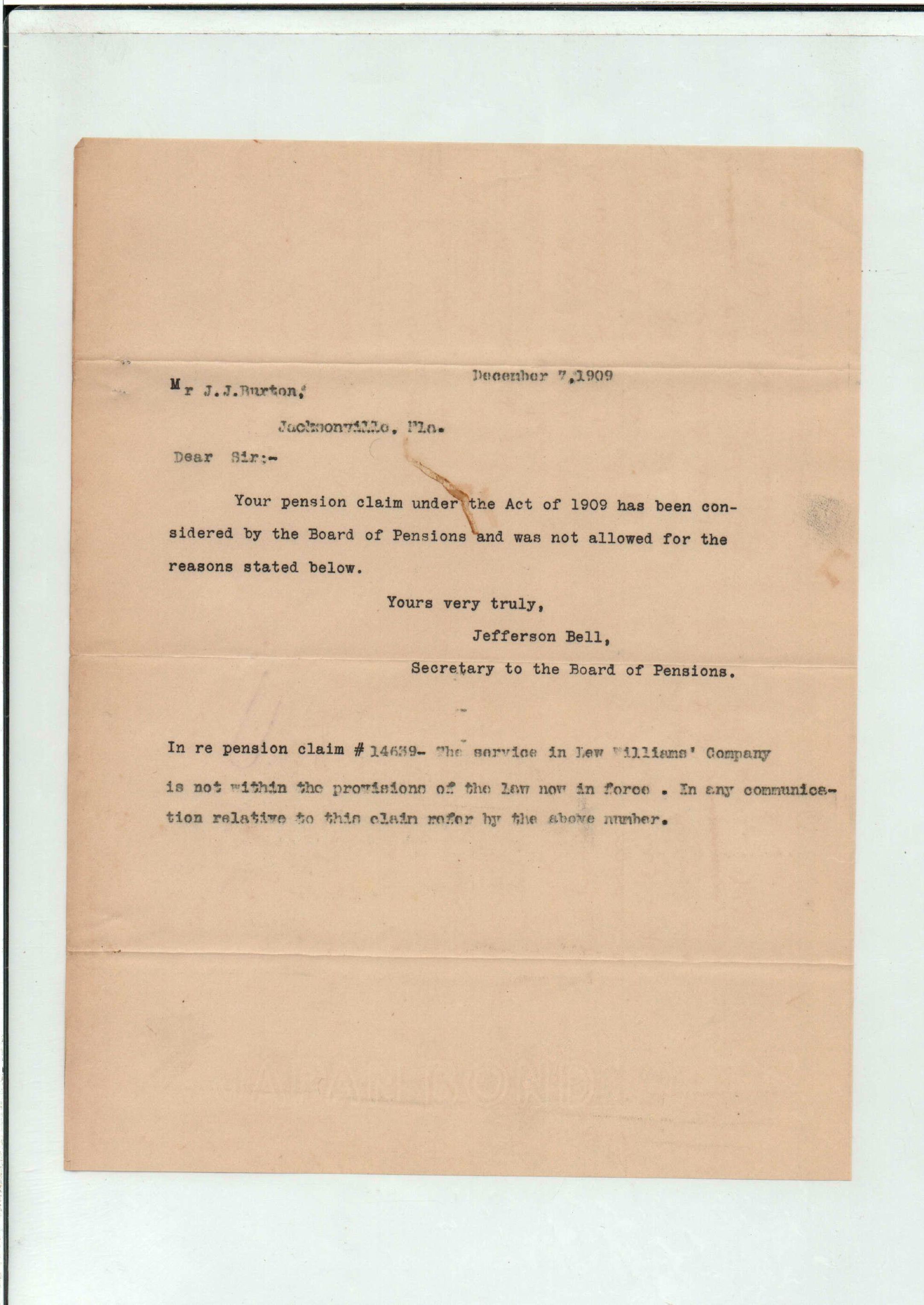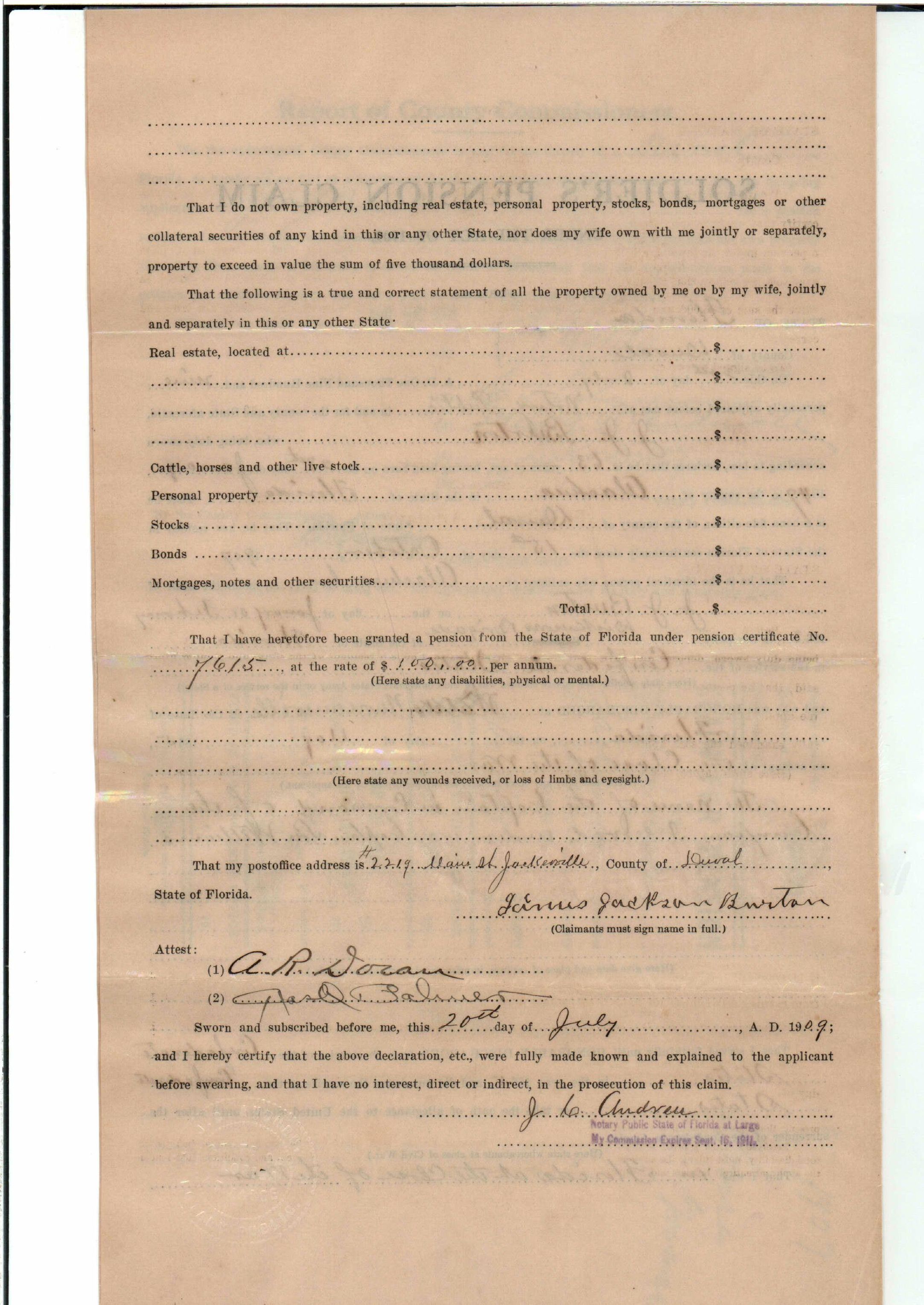 State Board of Pensions. BURTON, James Jackson. 1907. State Archives of Florida, Florida Memory. Accessed 24 Jan. 2026.<https://www.floridamemory.com/items/show/174929>