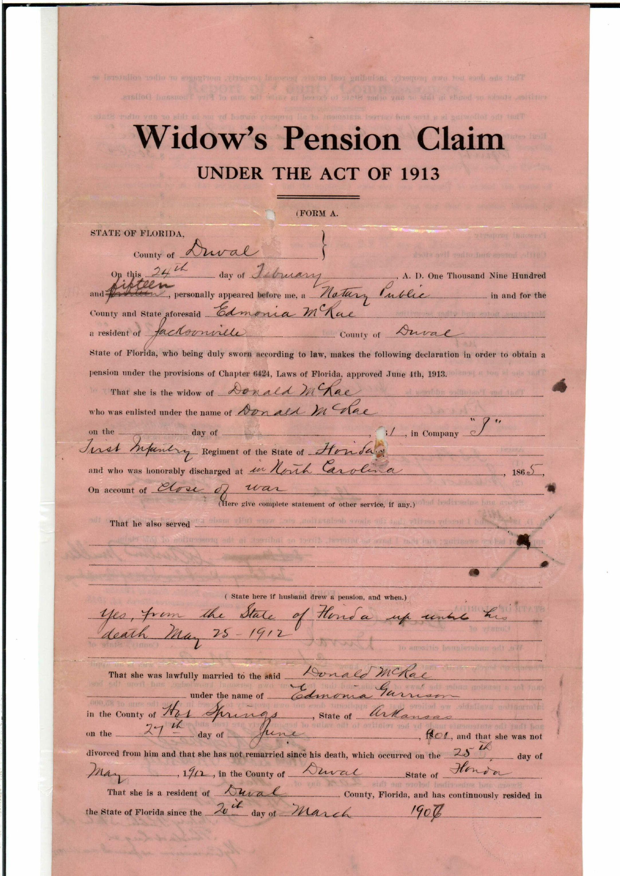 State Board of Pensions. McRAE, Donald. 1909. State Archives of Florida, Florida Memory. <https://www.floridamemory.com/items/show/174959>, accessed 25 January 2026.