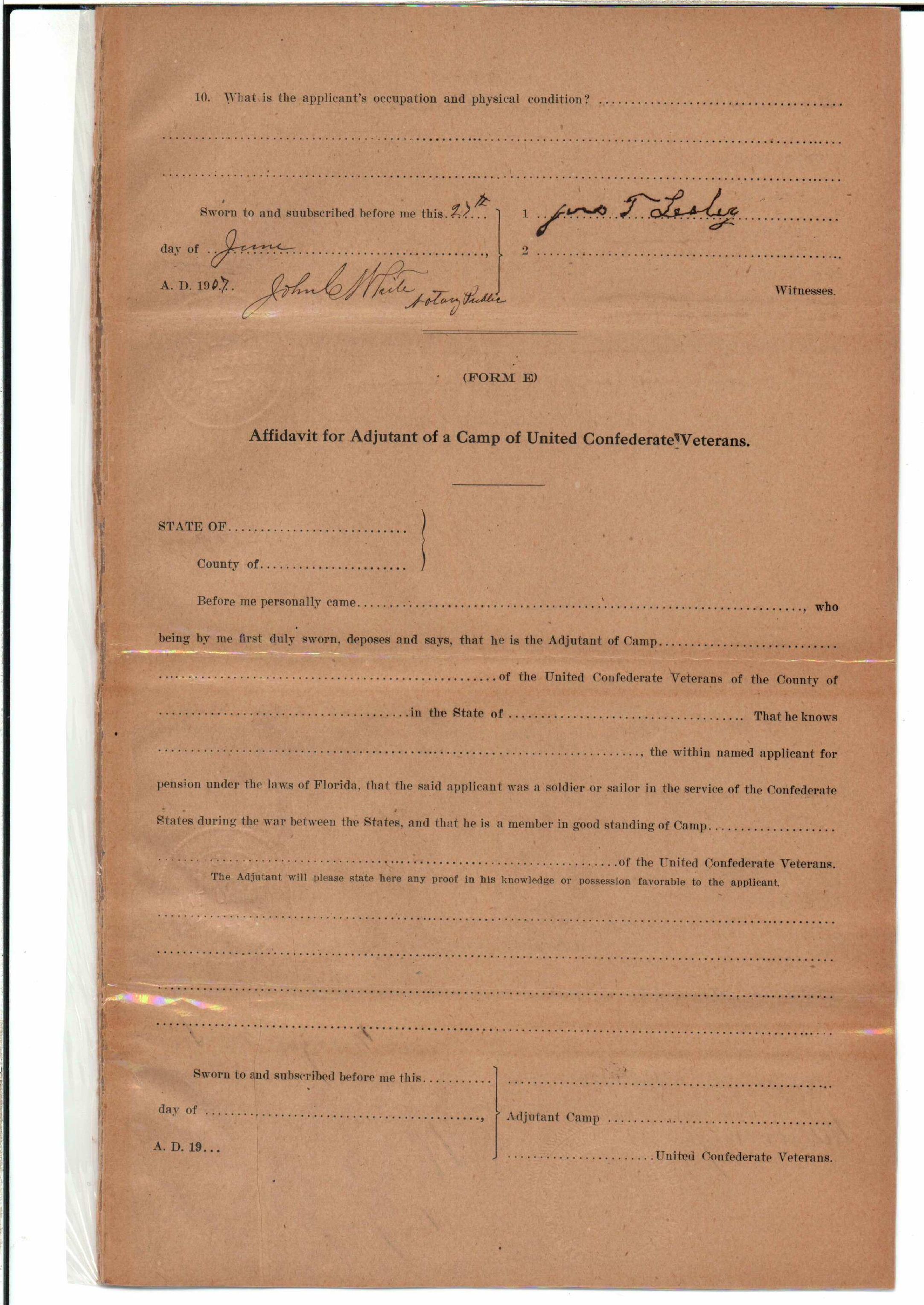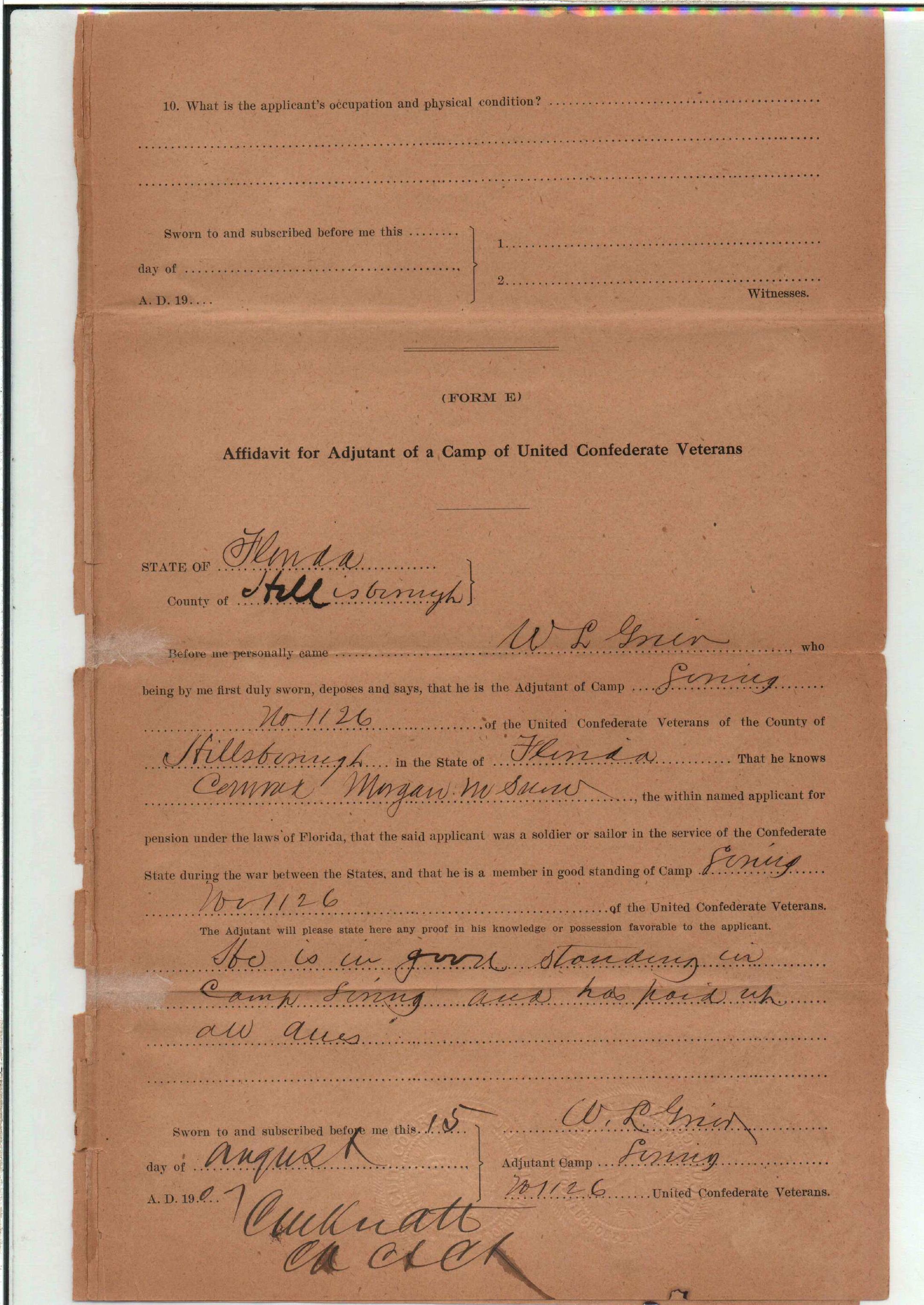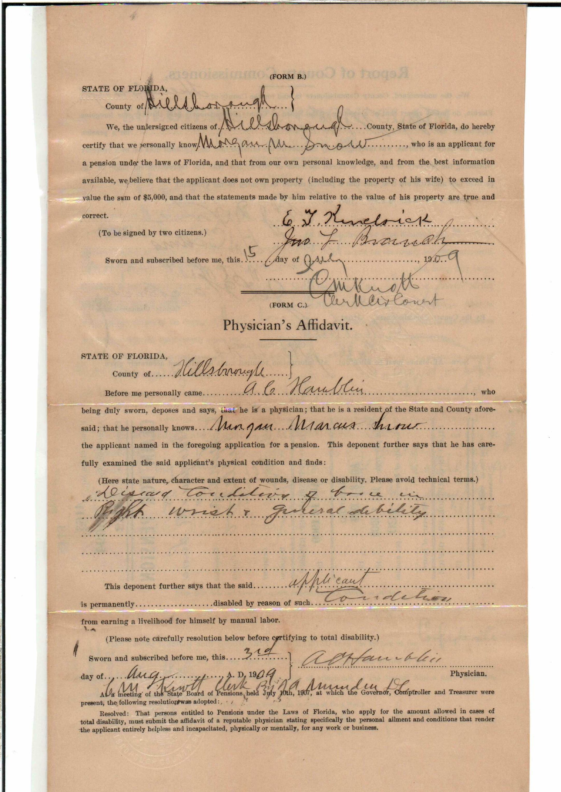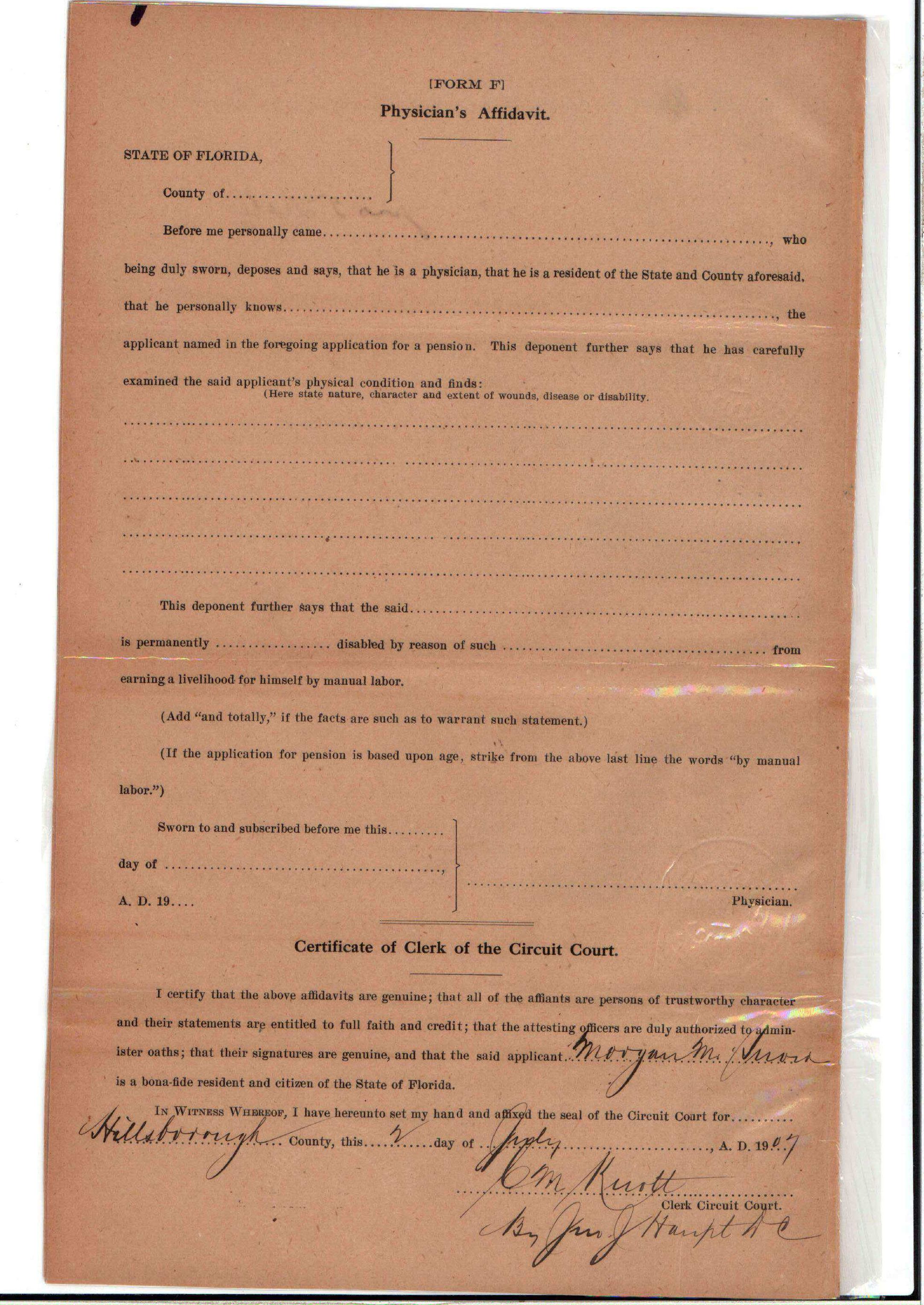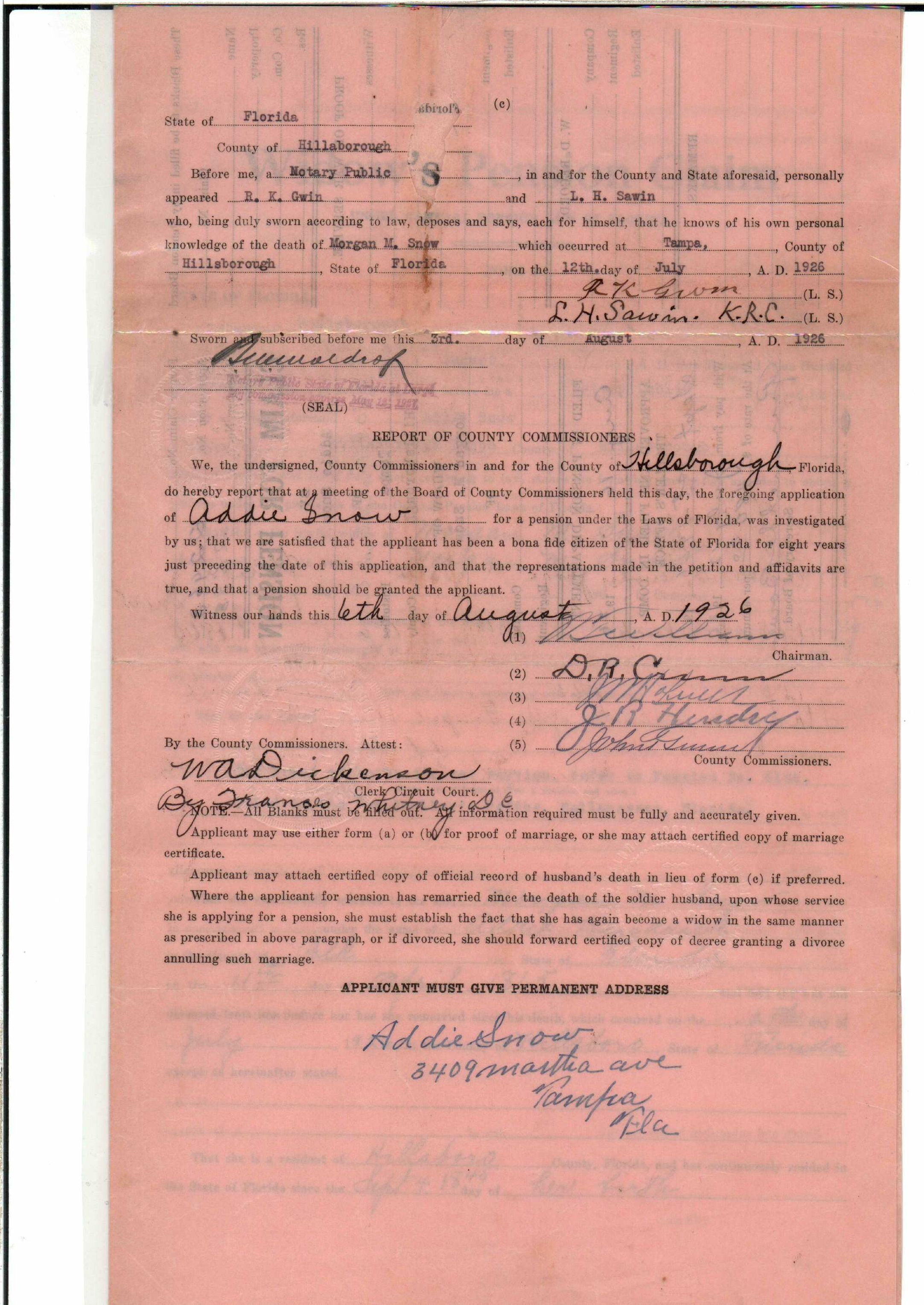 State Board of Pensions. SNOW, Morgan M. 1904. State Archives of Florida, Florida Memory. <https://www.floridamemory.com/items/show/177809>, accessed 1 January 2026.