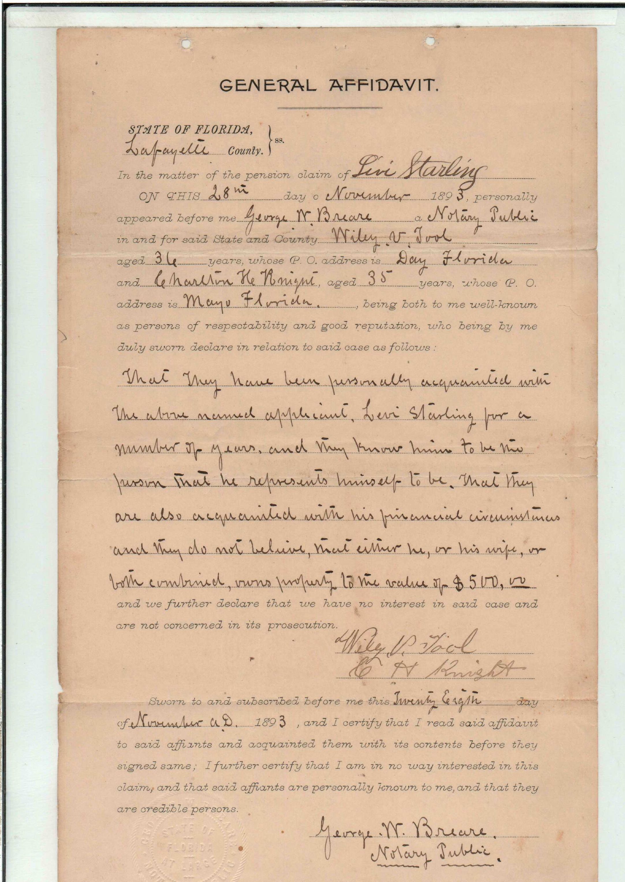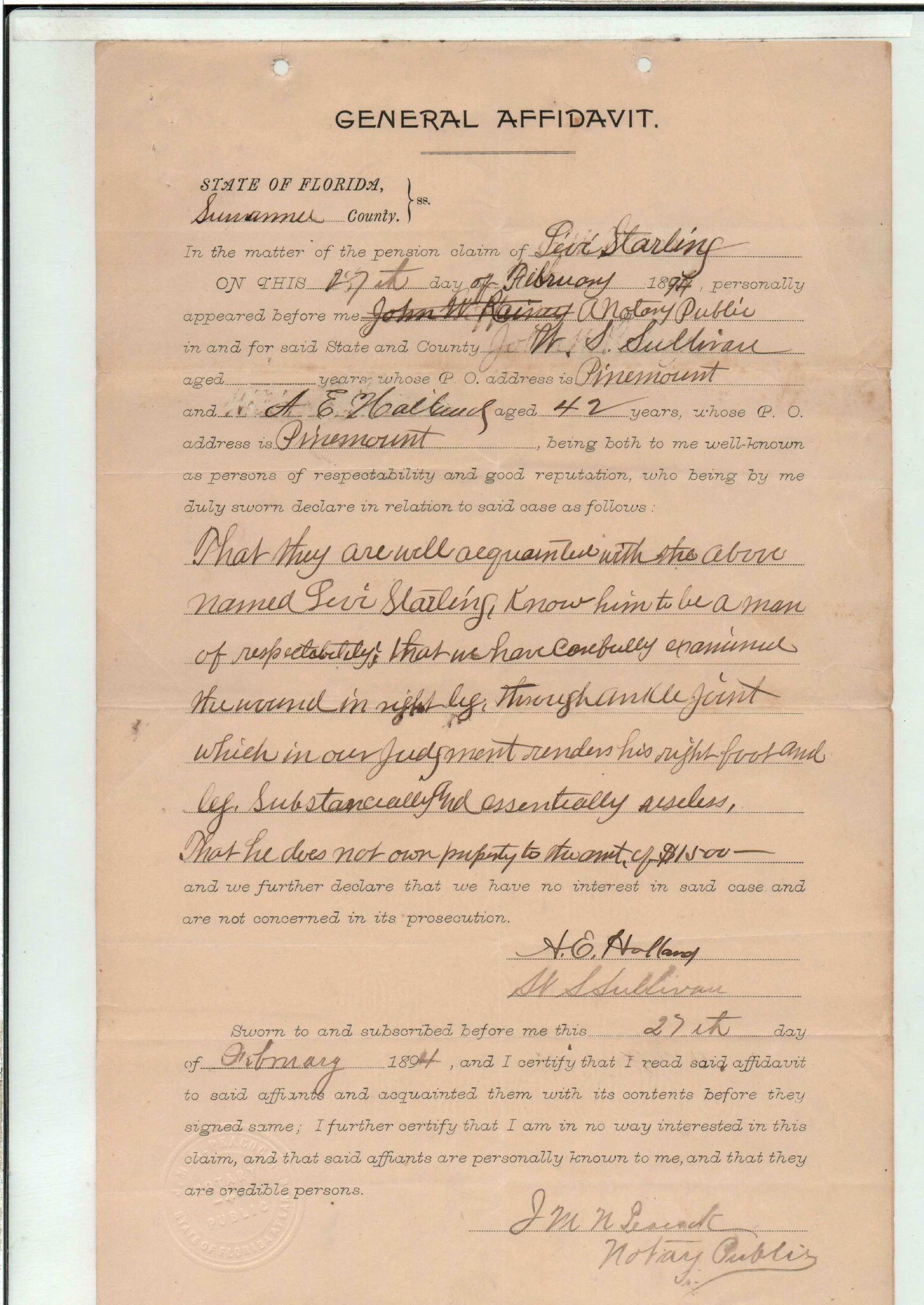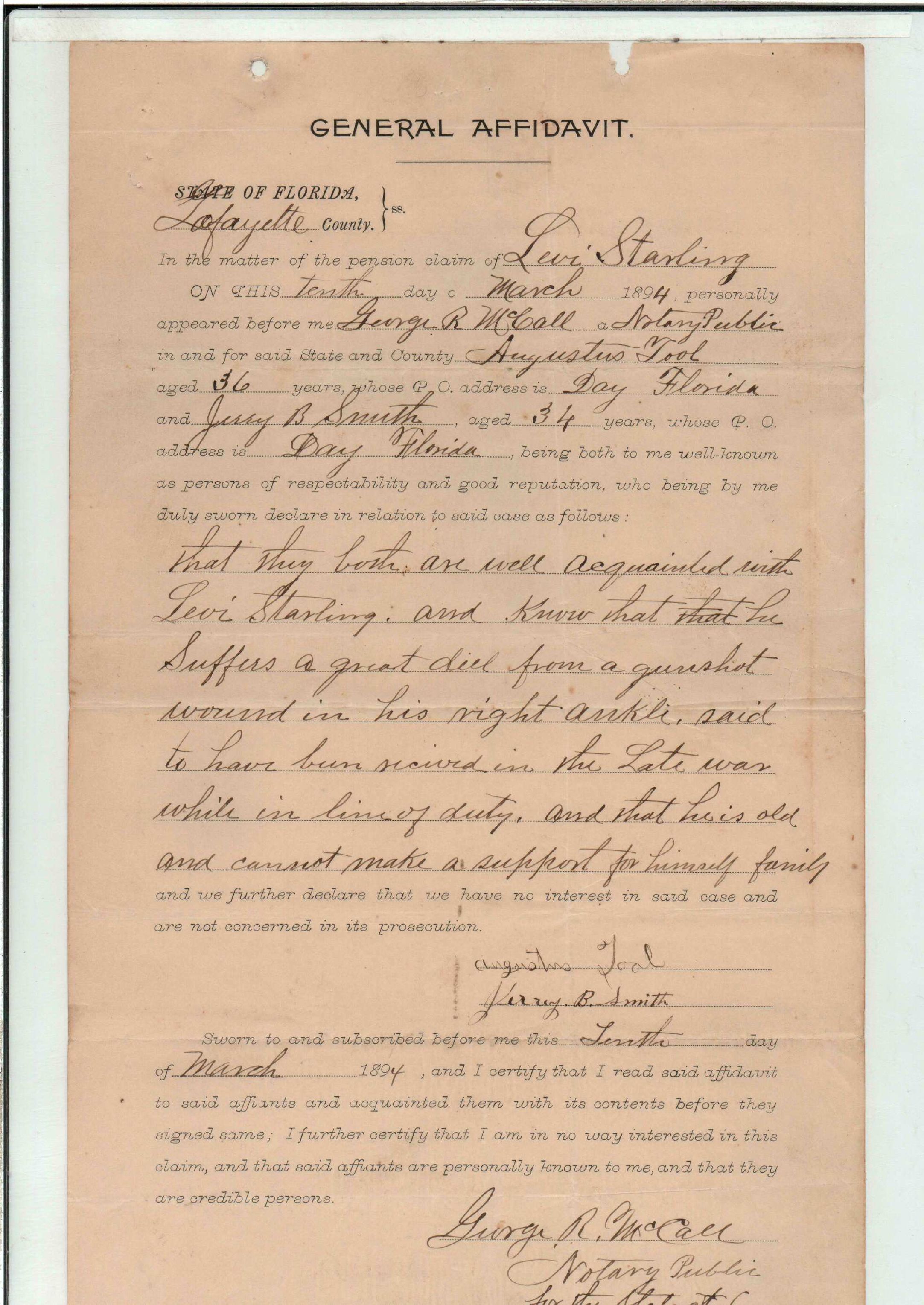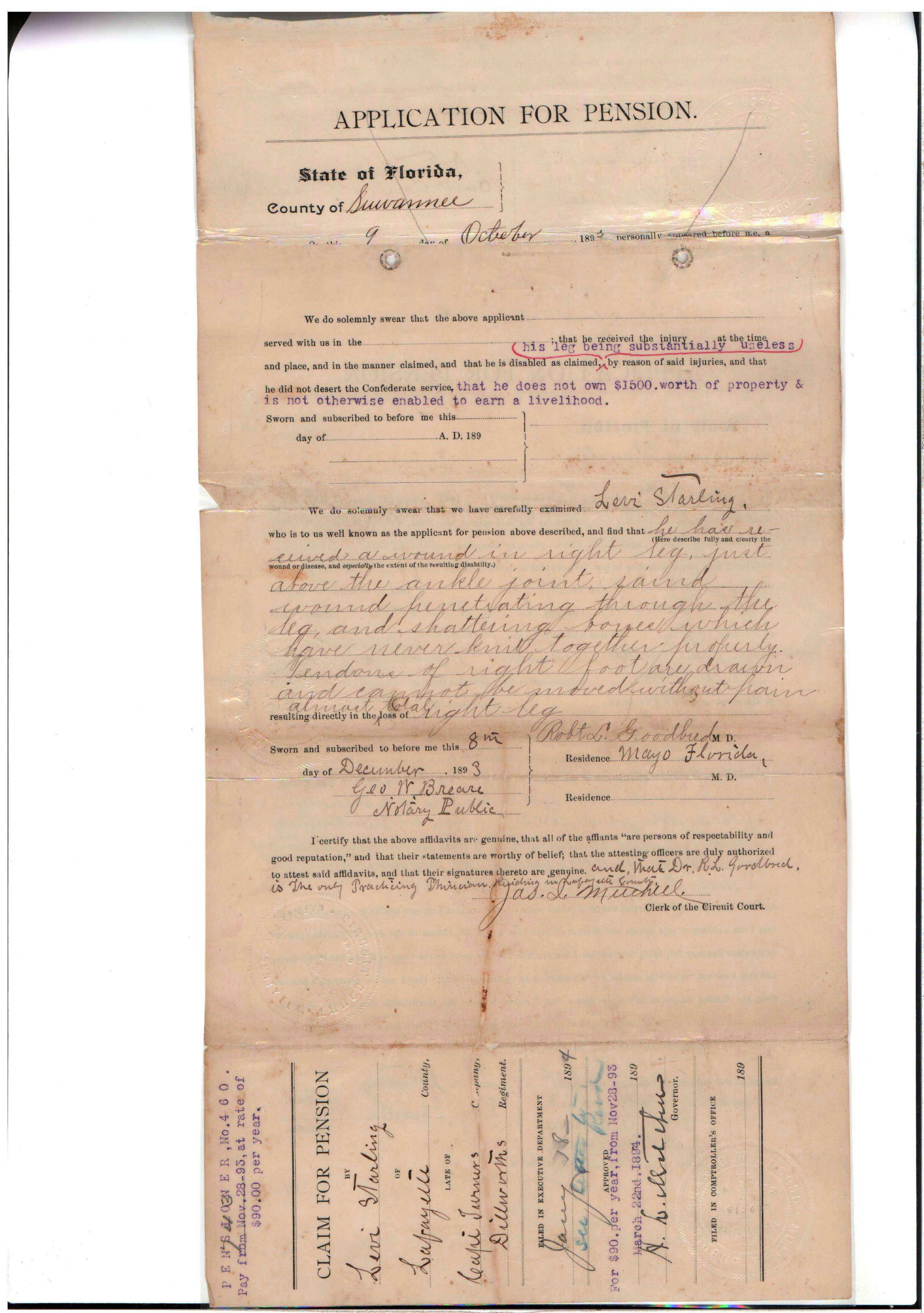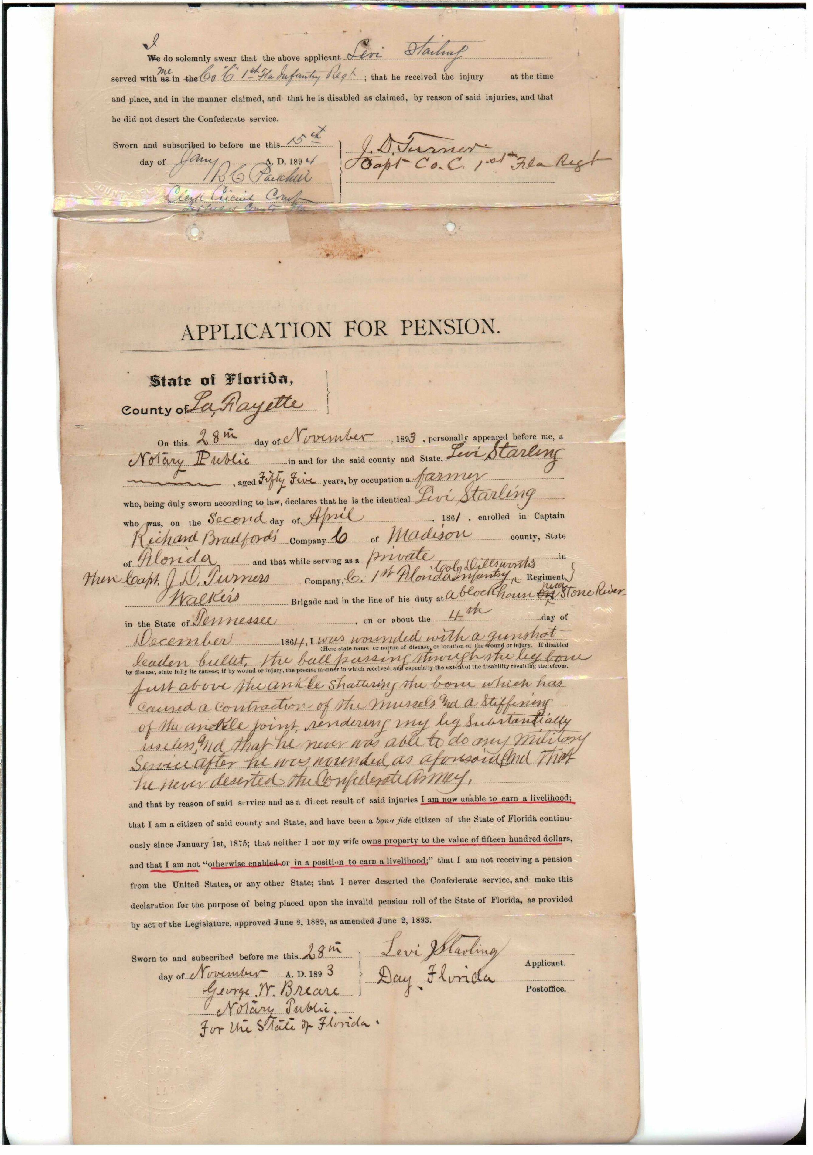 State Board of Pensions. STARLING, Levi. 1894. State Archives of Florida, Florida Memory. <https://www.floridamemory.com/items/show/177814>, accessed 31 December 2025.
