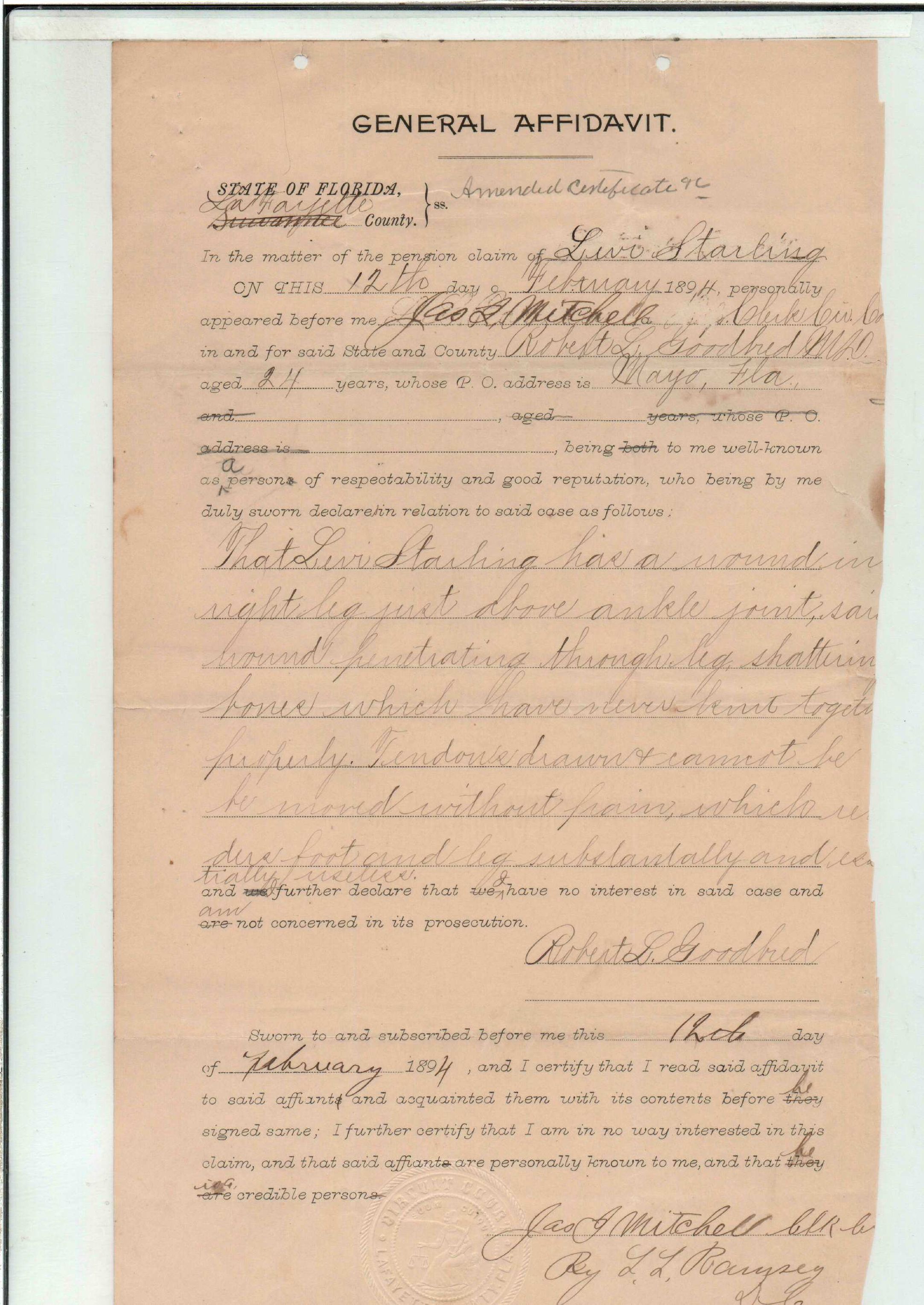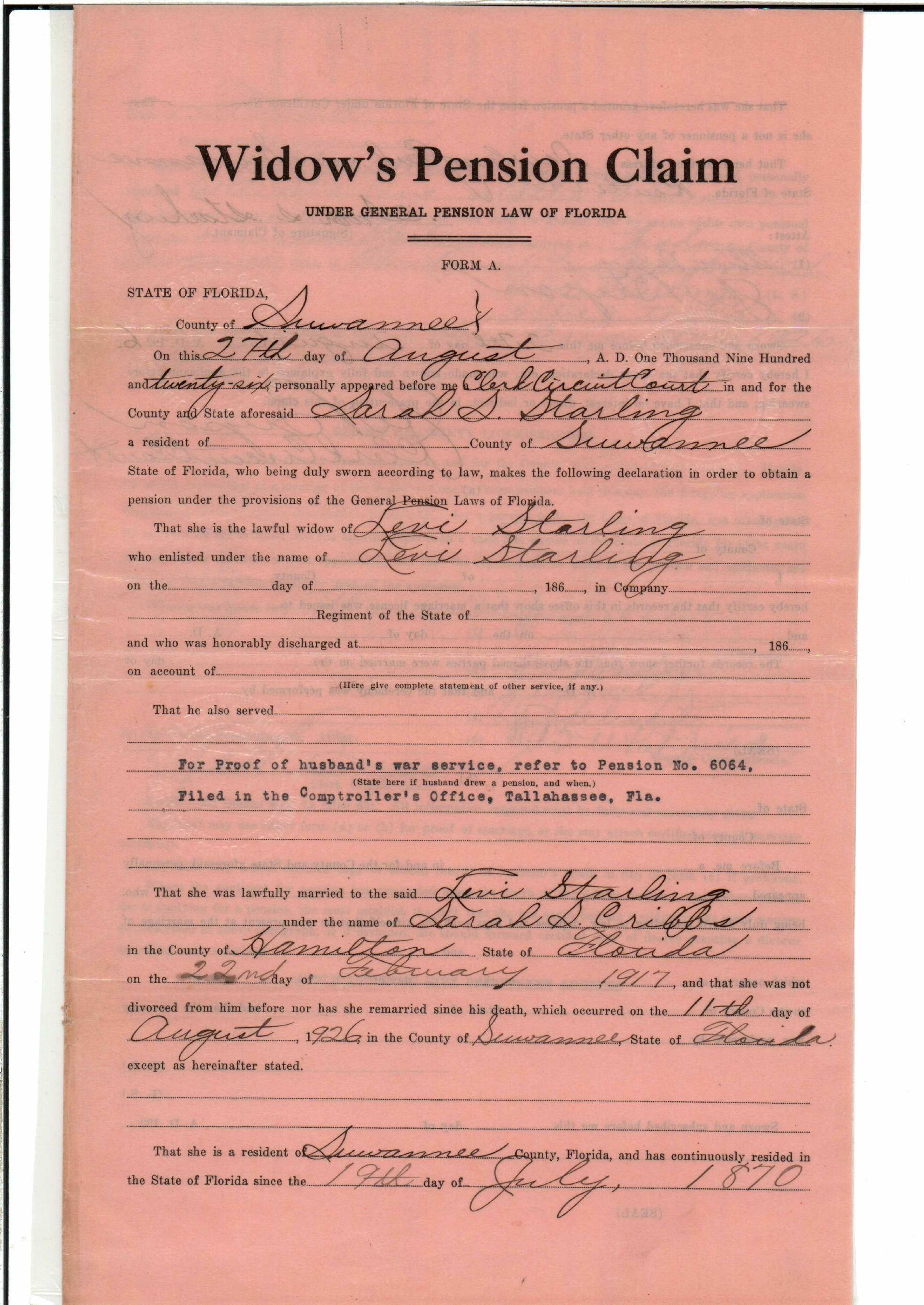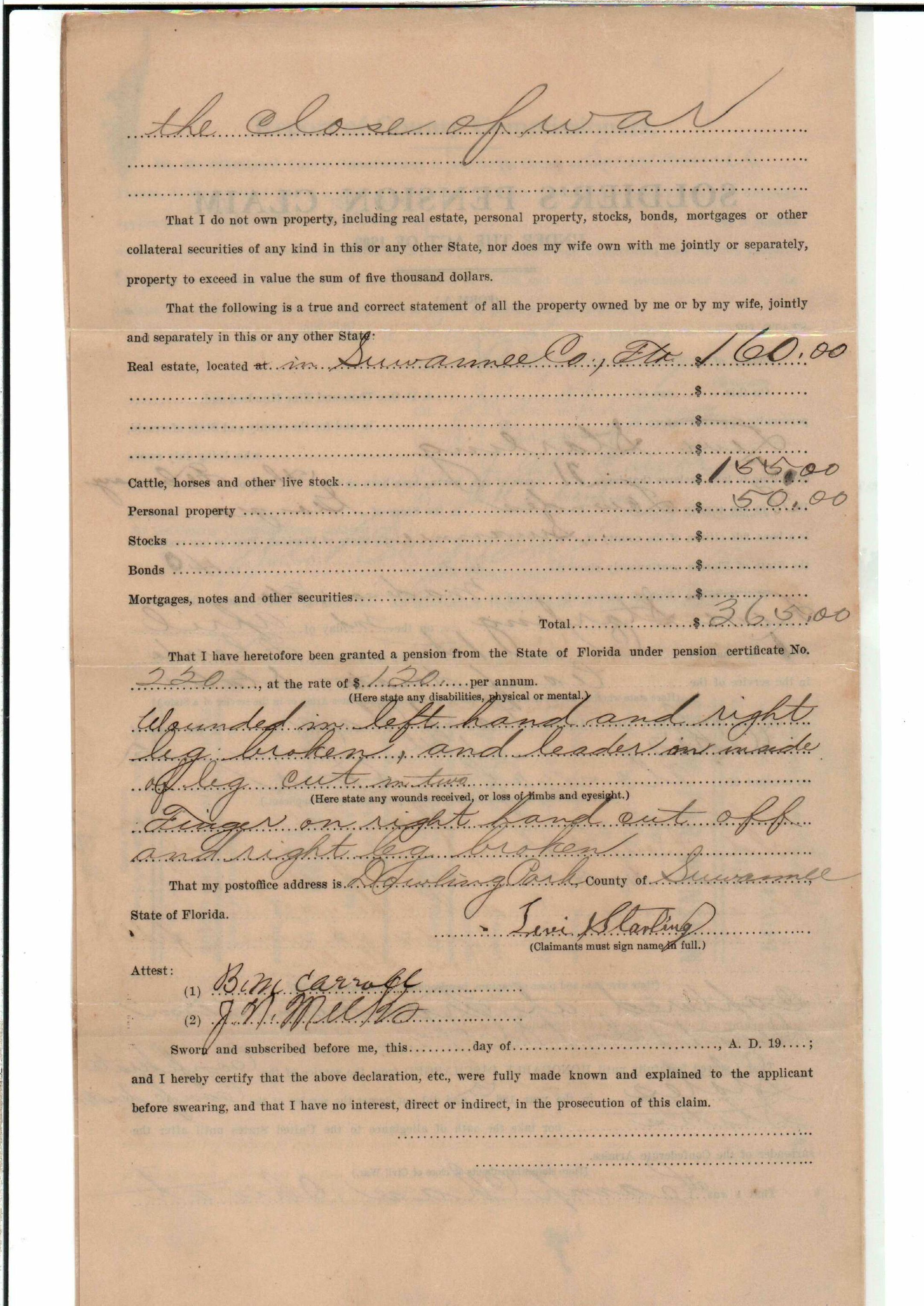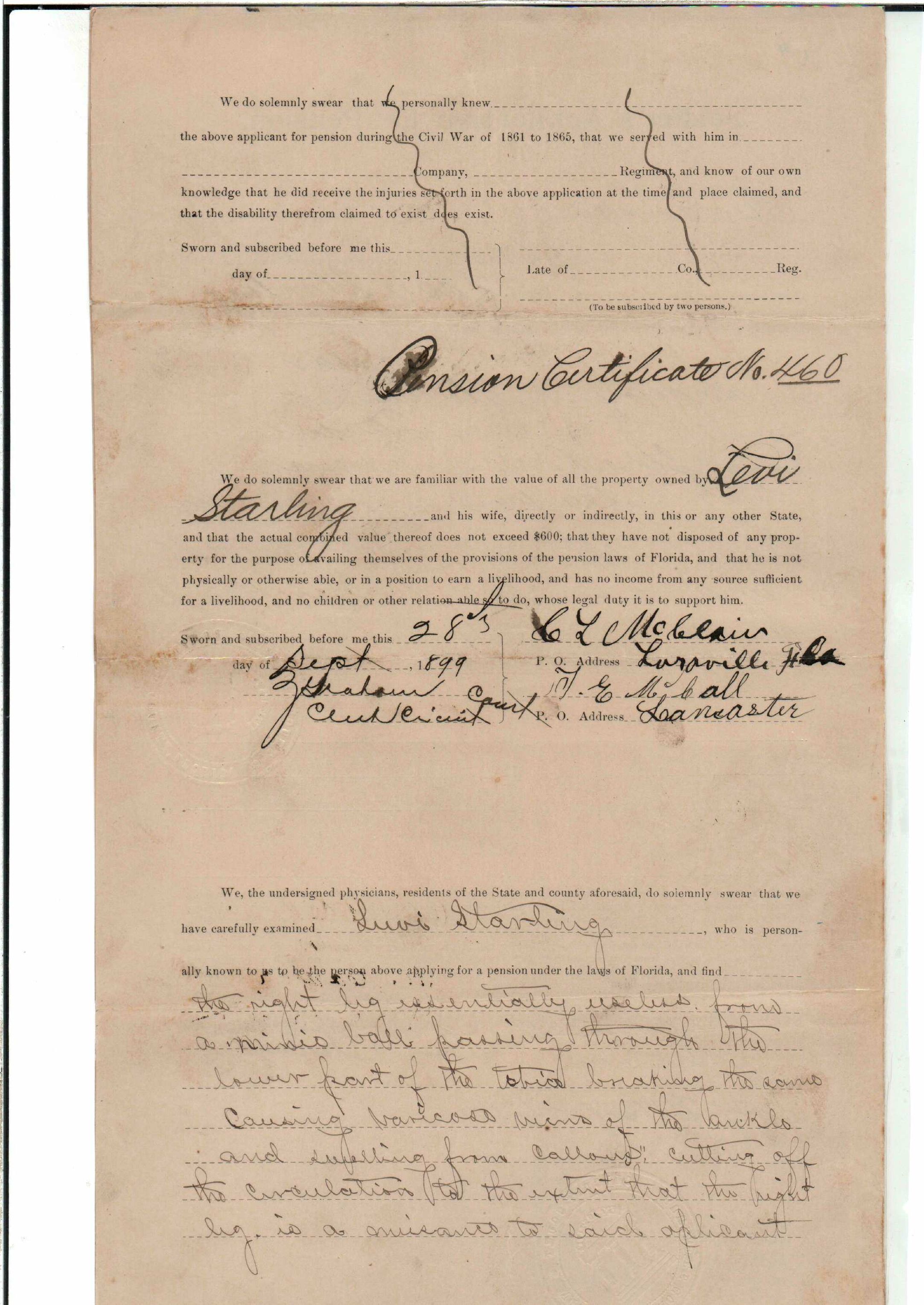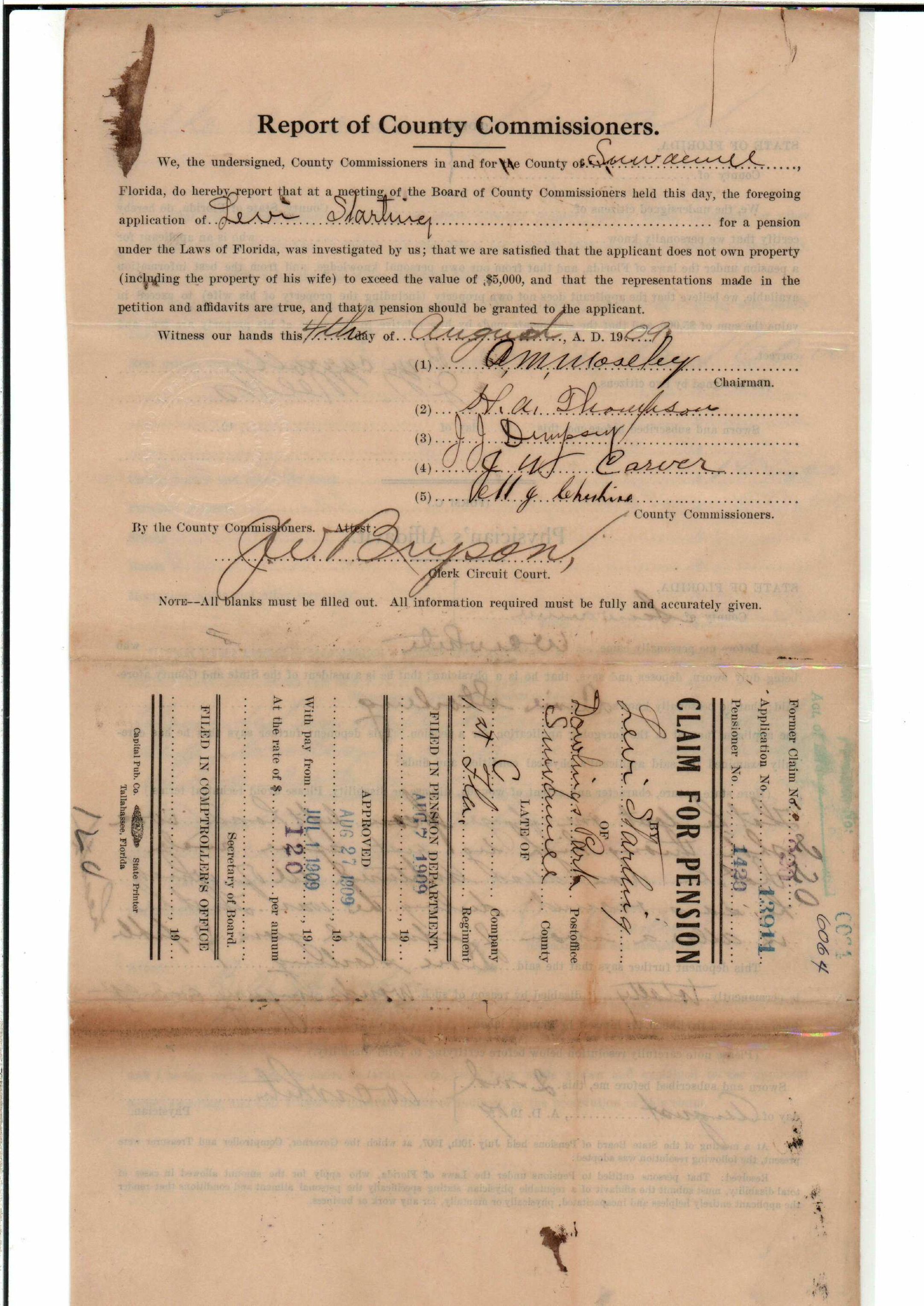 State Board of Pensions. STARLING, Levi. 1894. State Archives of Florida, Florida Memory. <https://www.floridamemory.com/items/show/177814>, accessed 31 December 2025.