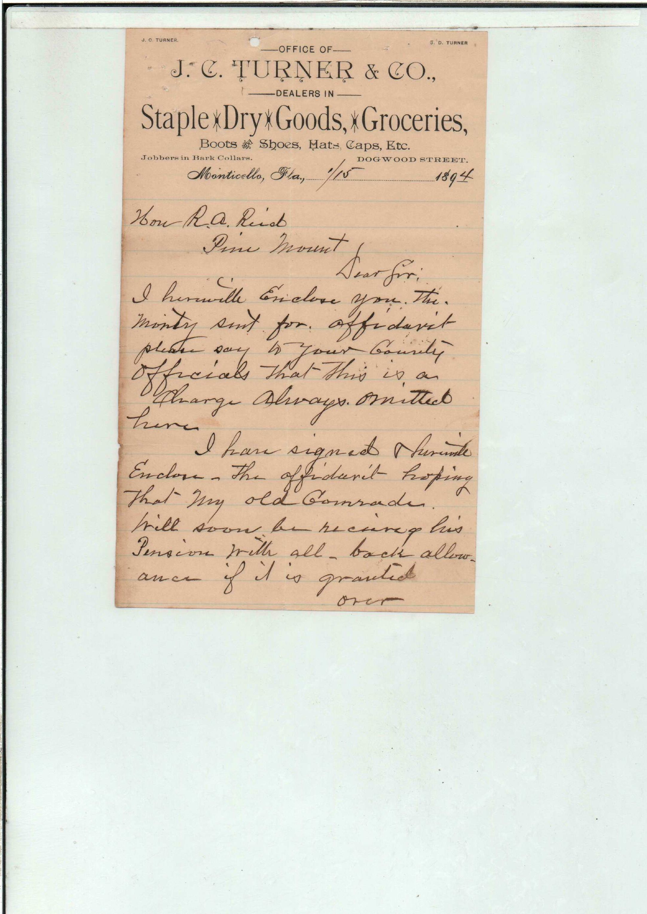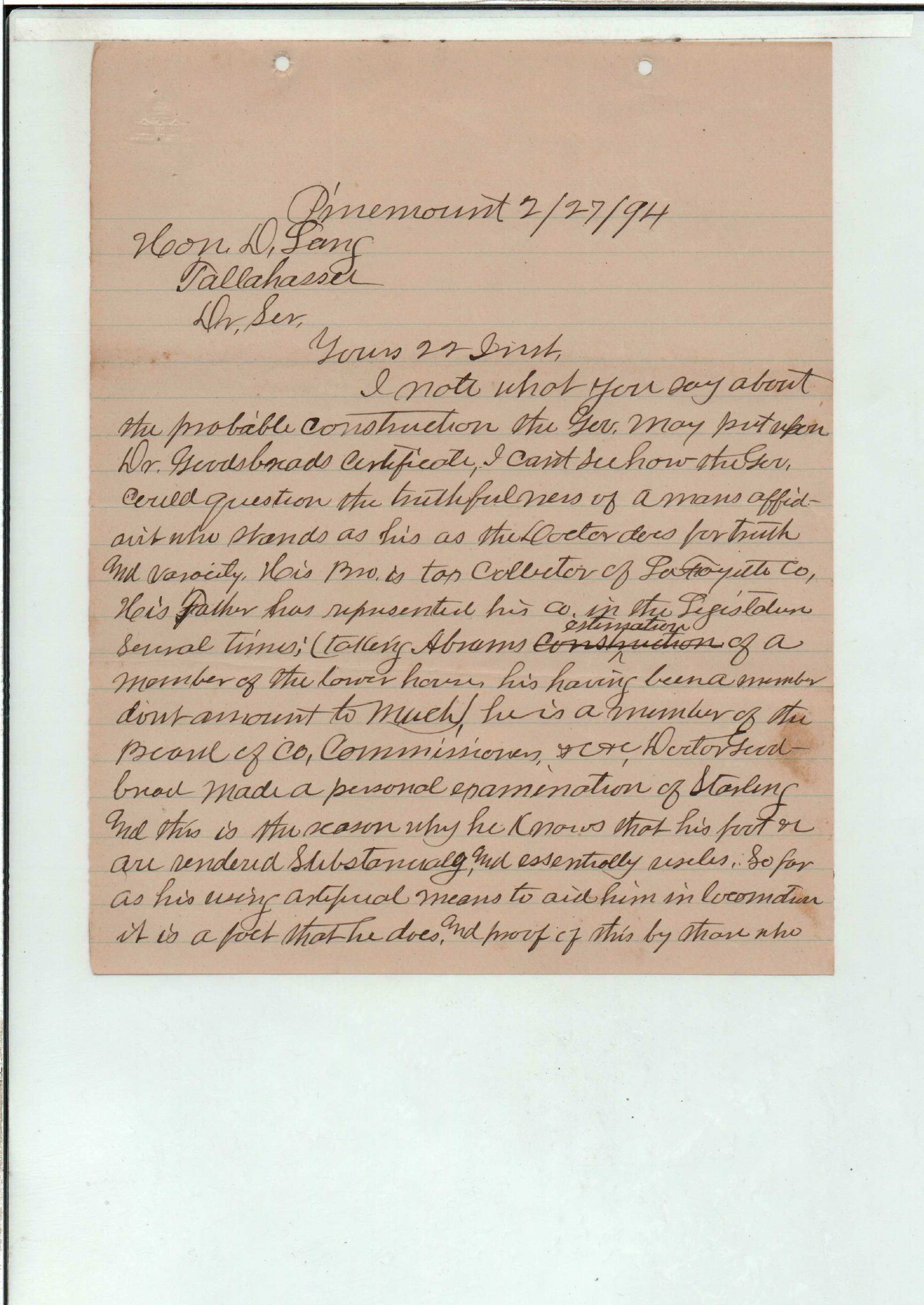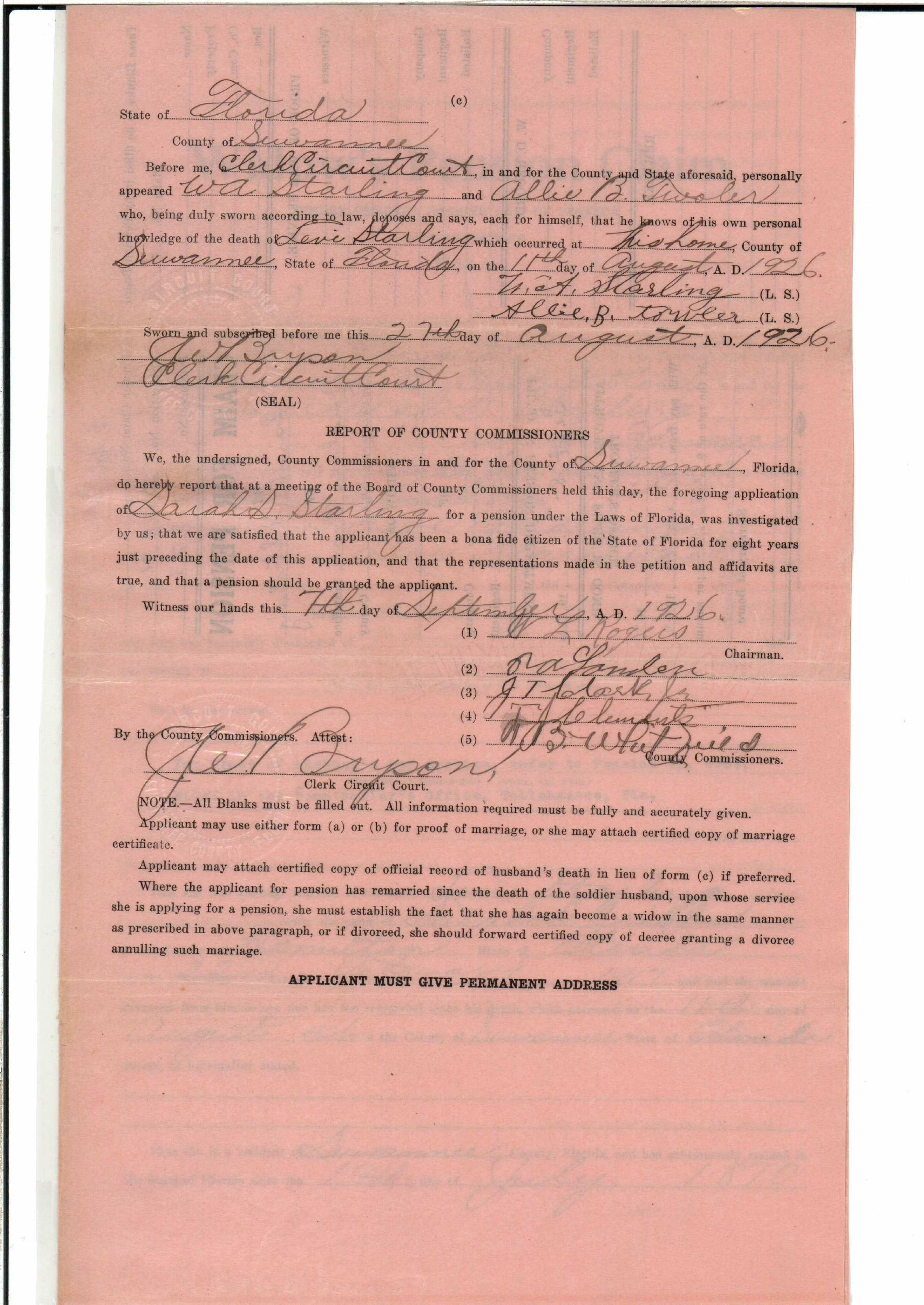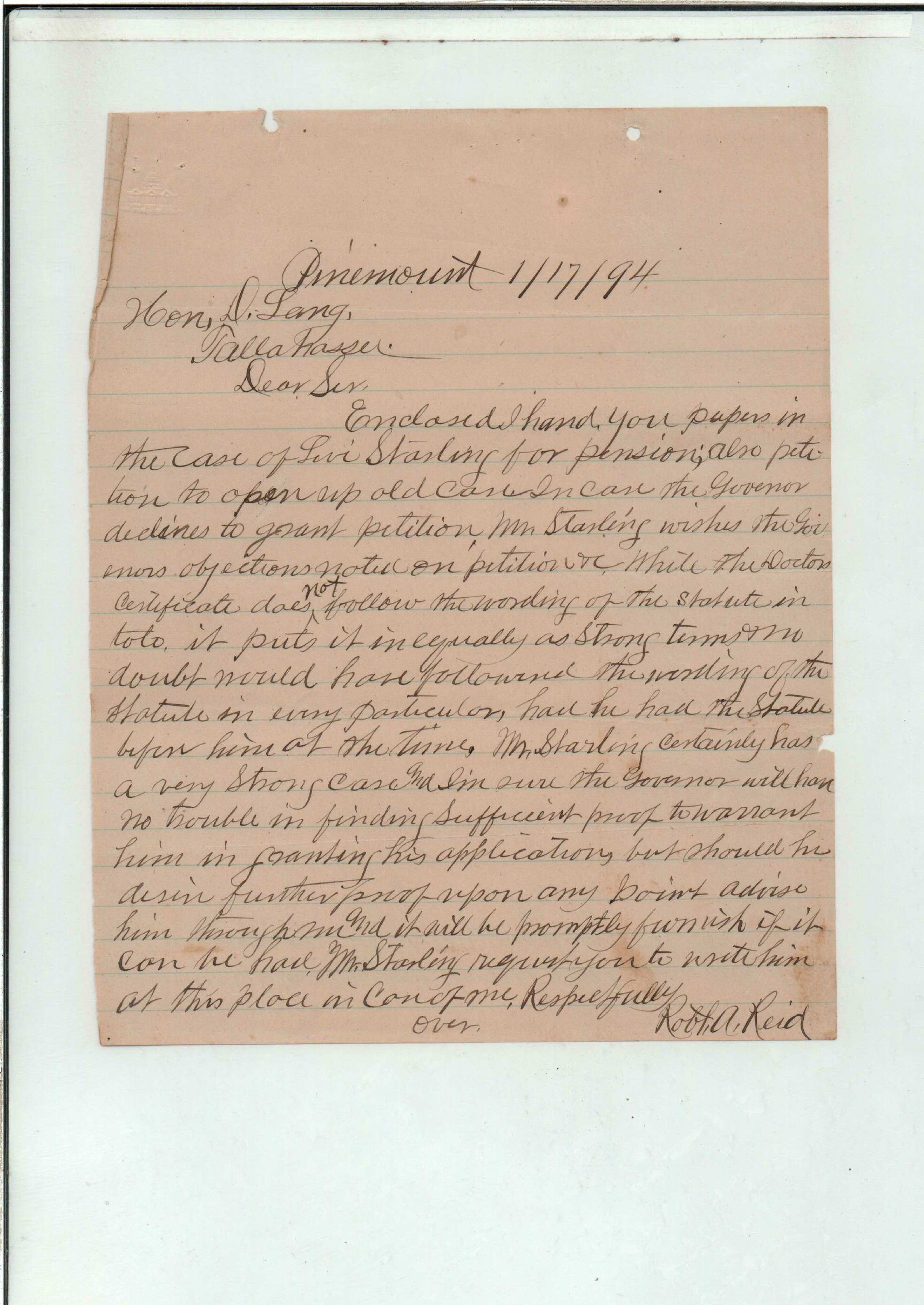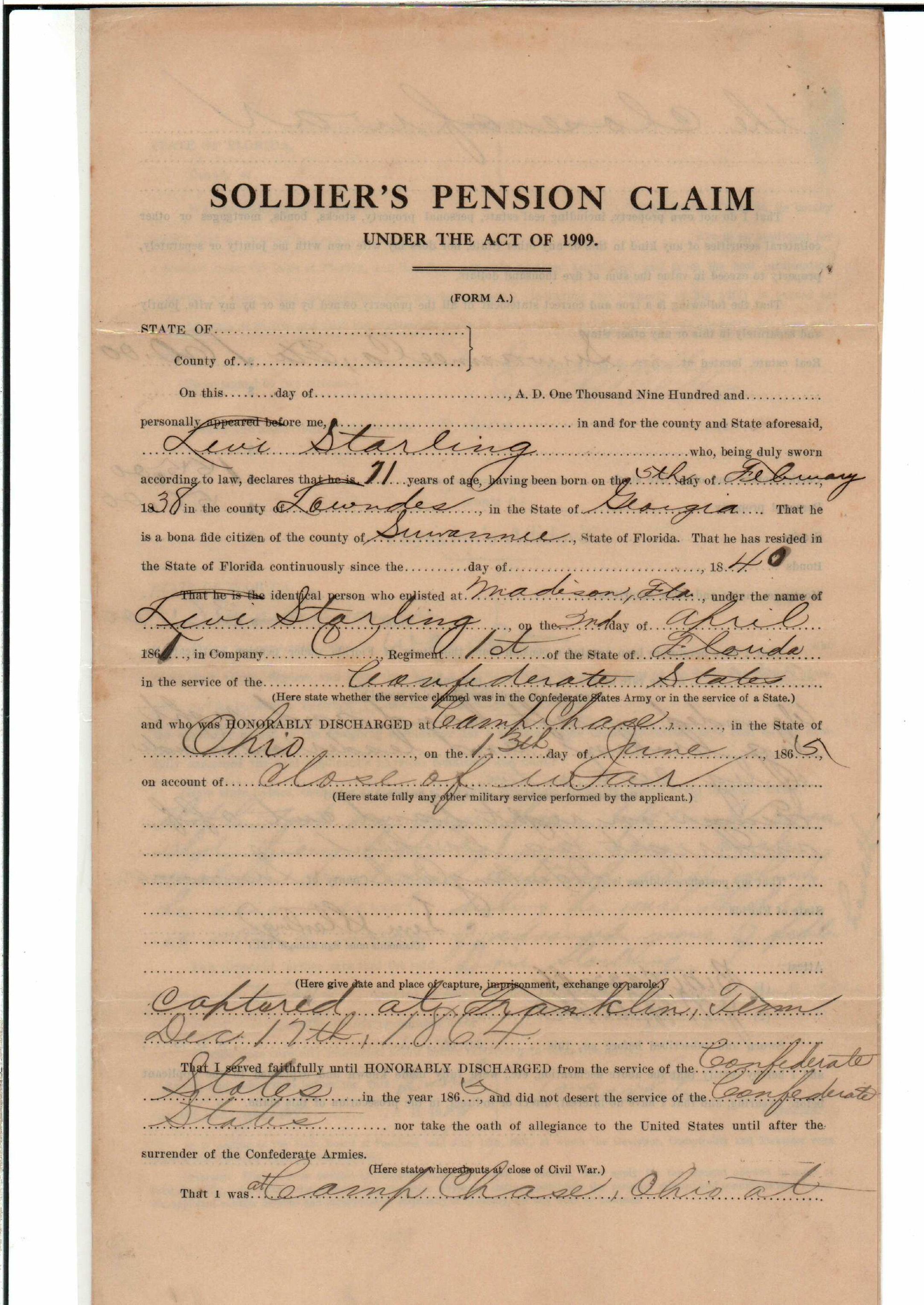 State Board of Pensions. STARLING, Levi. 1894. State Archives of Florida, Florida Memory. <https://www.floridamemory.com/items/show/177814>, accessed 31 December 2025.