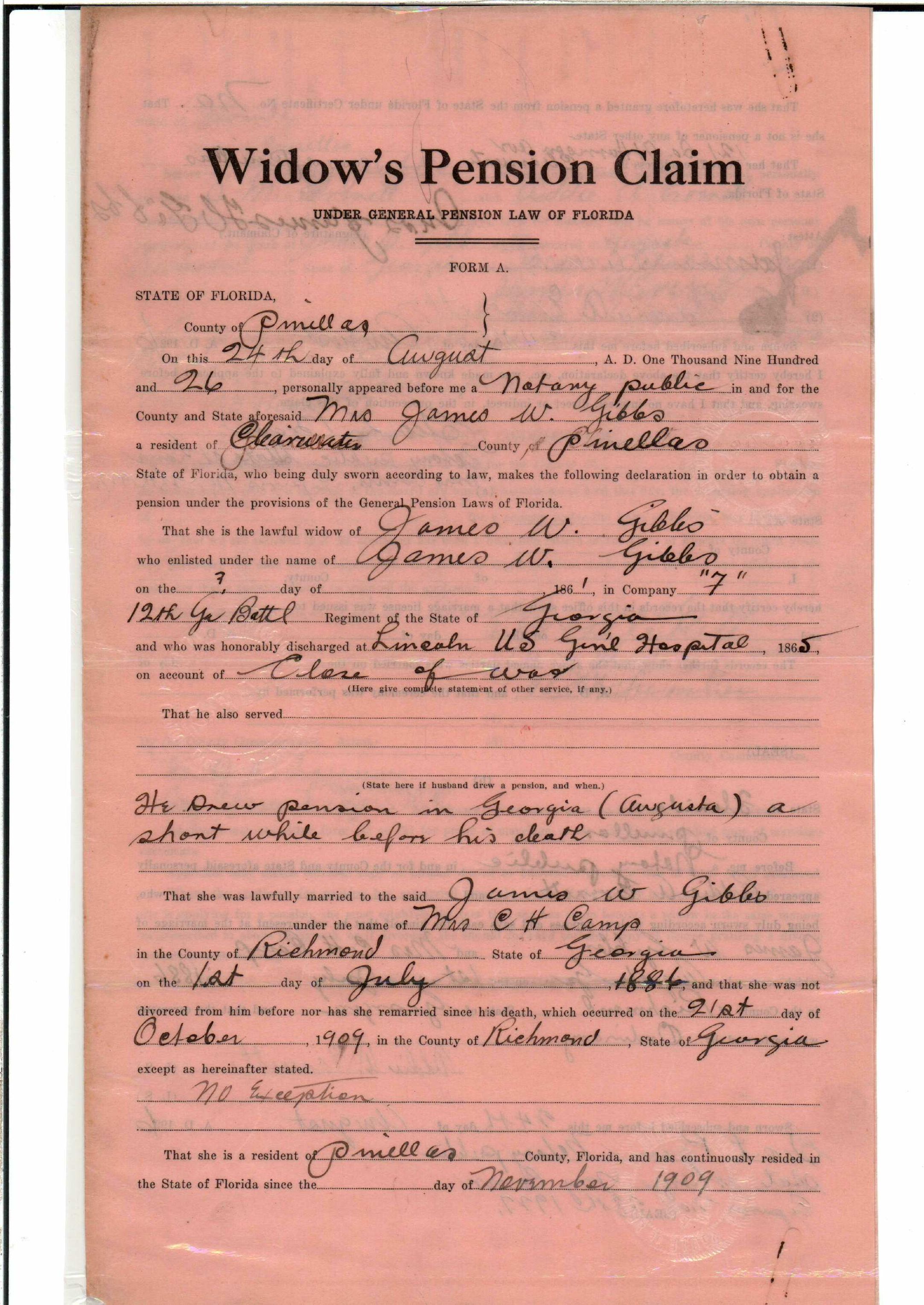 State Board of Pensions. GIBBS, James W. 1926. State Archives of Florida, Florida Memory. <https://www.floridamemory.com/items/show/177830>, accessed 30 December 2025.