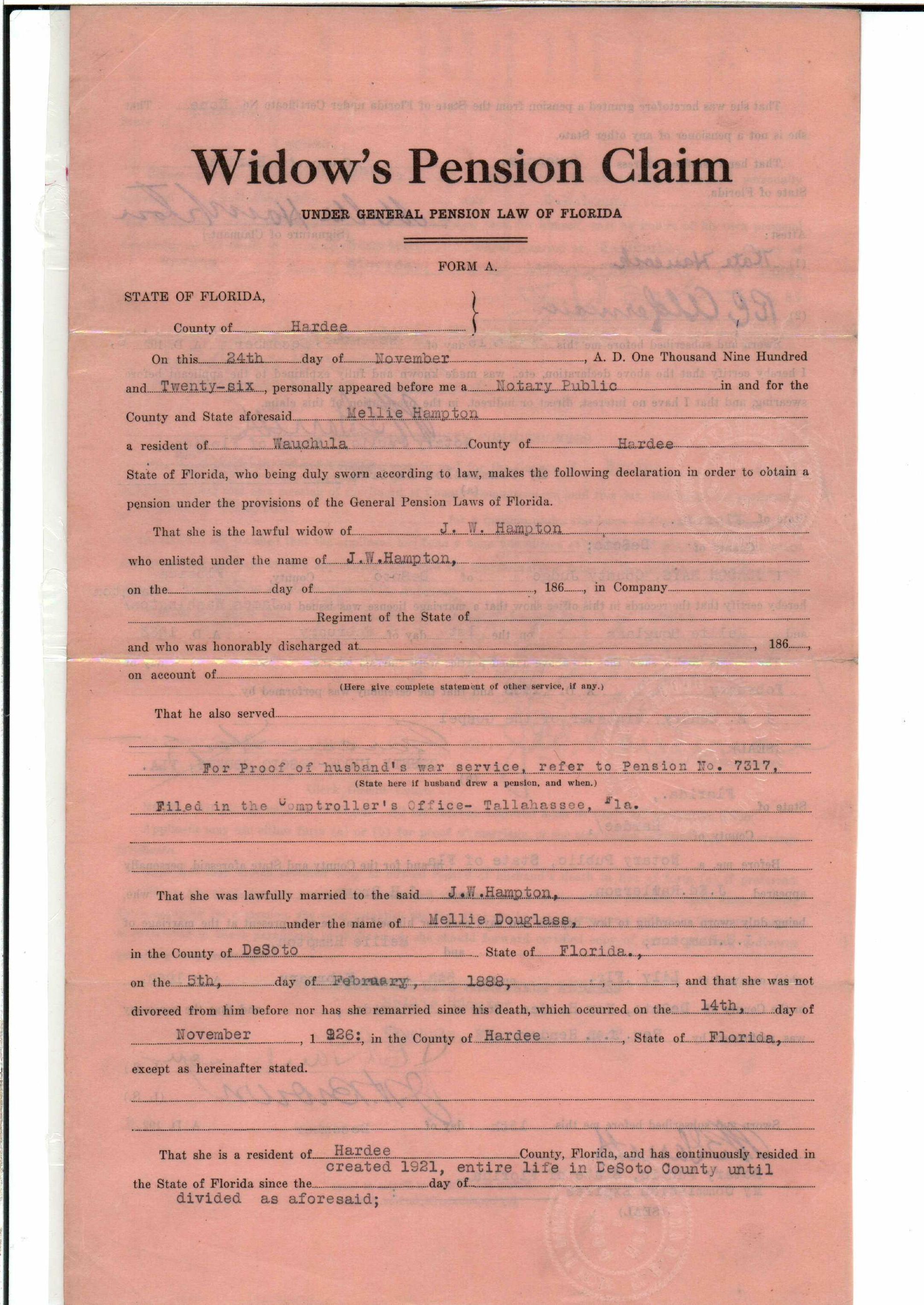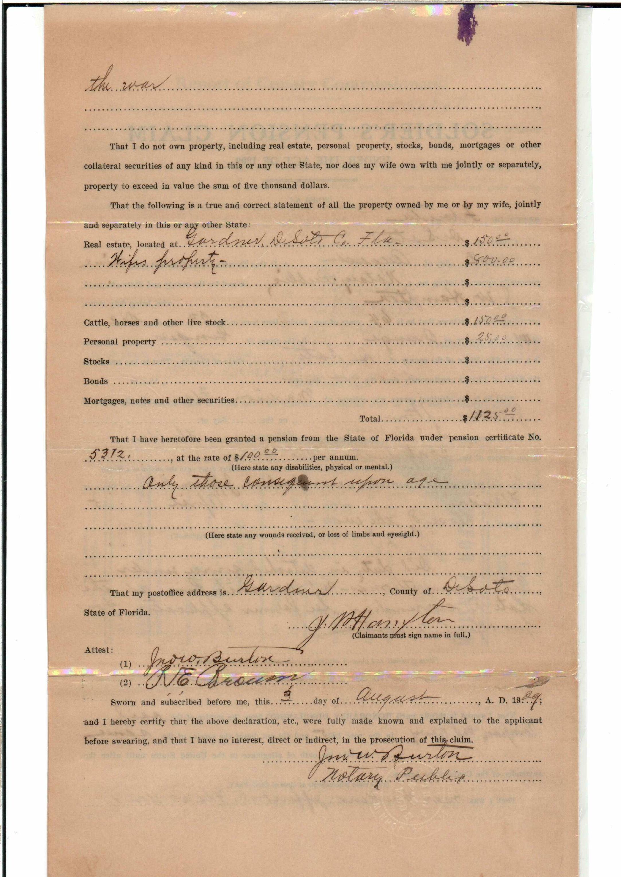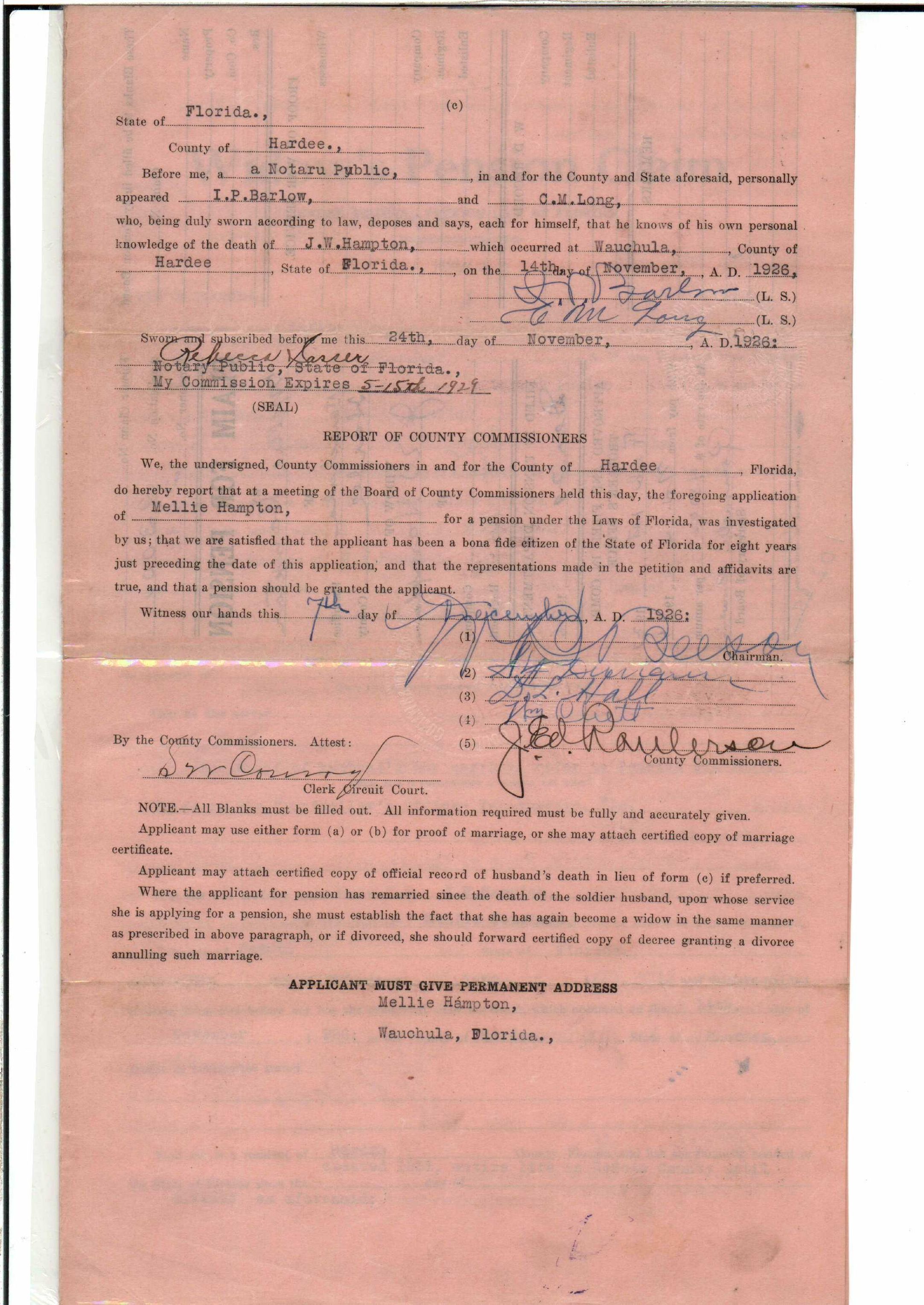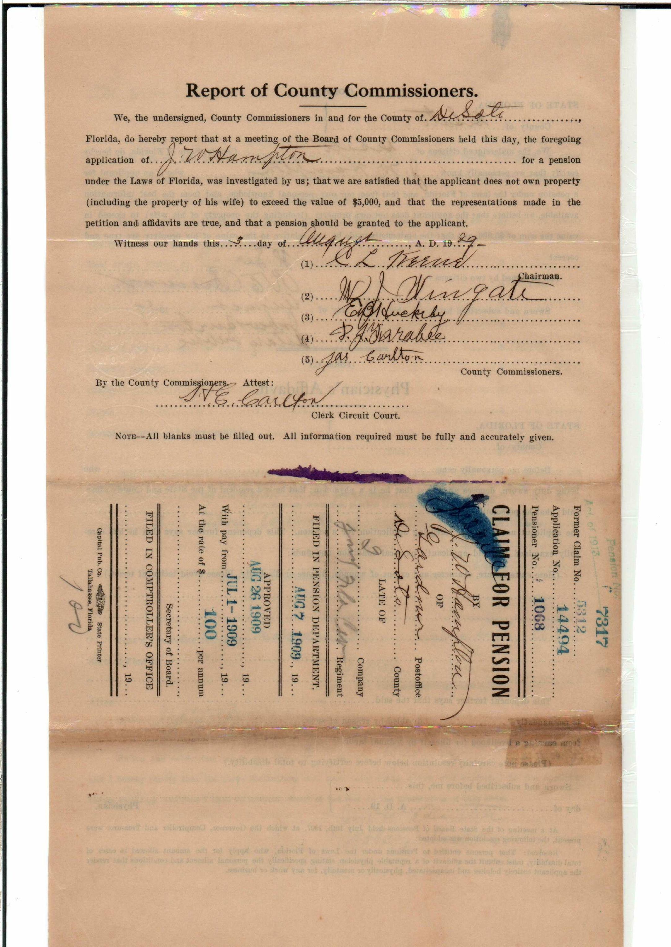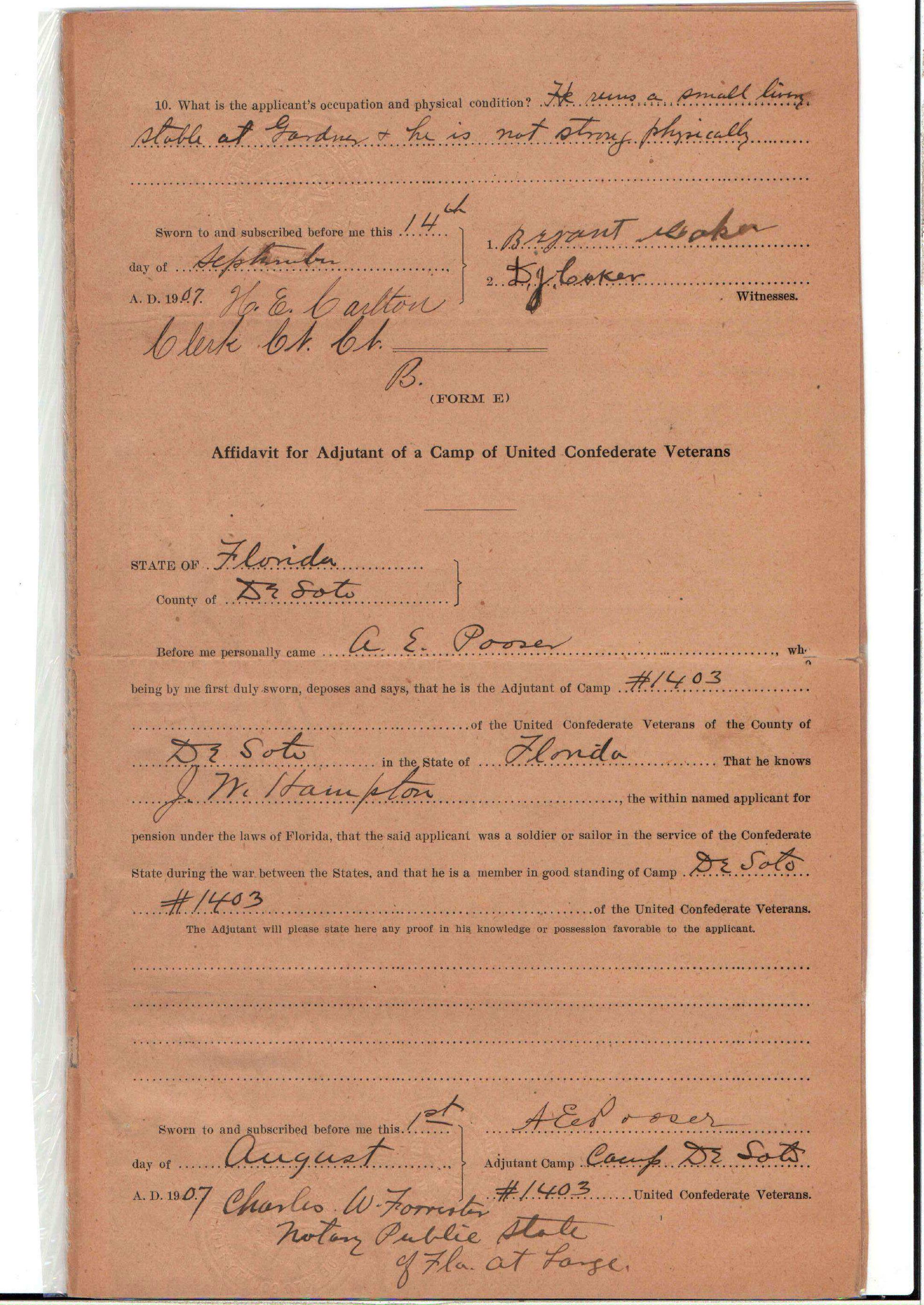 State Board of Pensions. HAMPTON, James W. 1907. State Archives of Florida, Florida Memory. <https://www.floridamemory.com/items/show/177844>, accessed 29 December 2025.