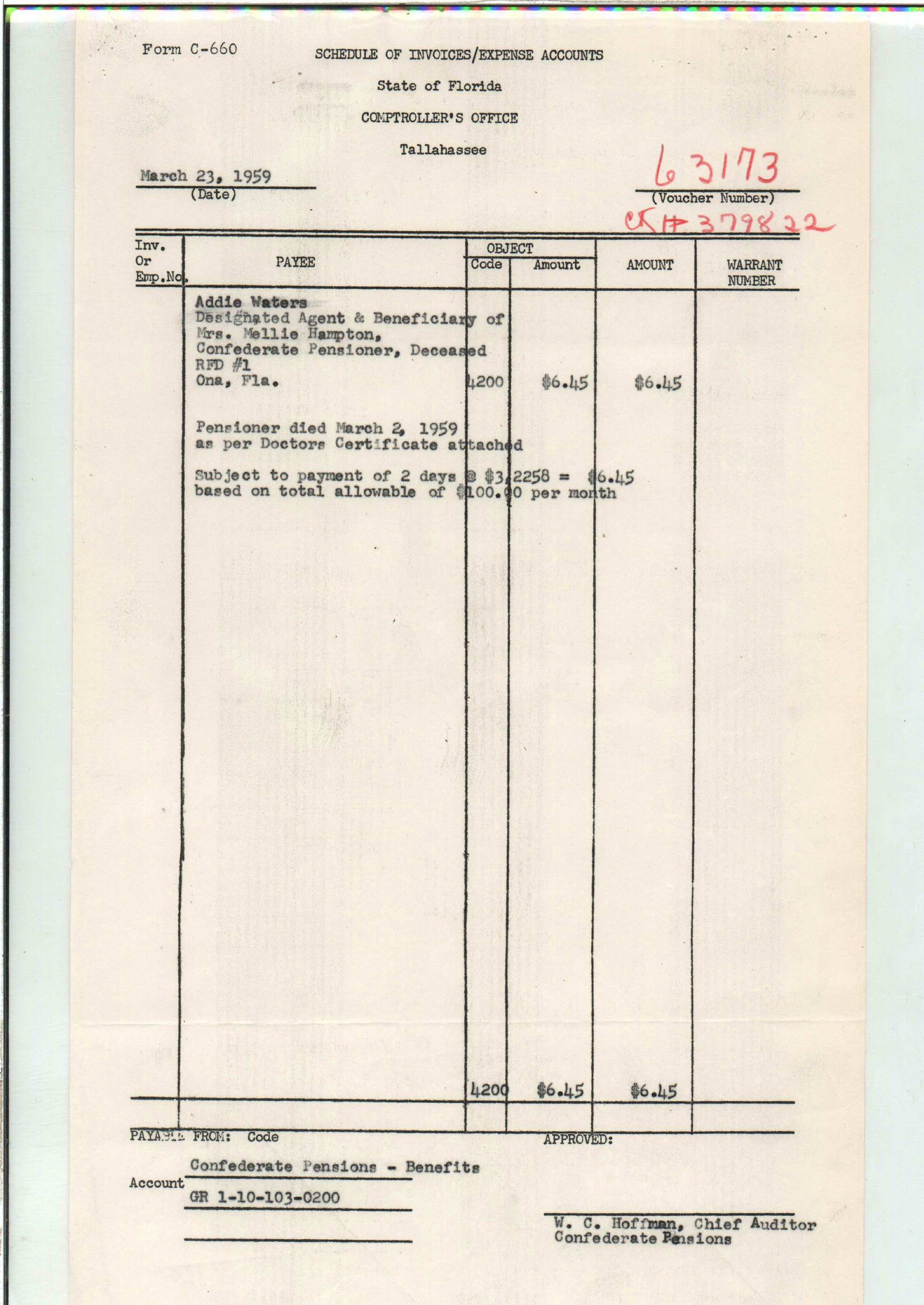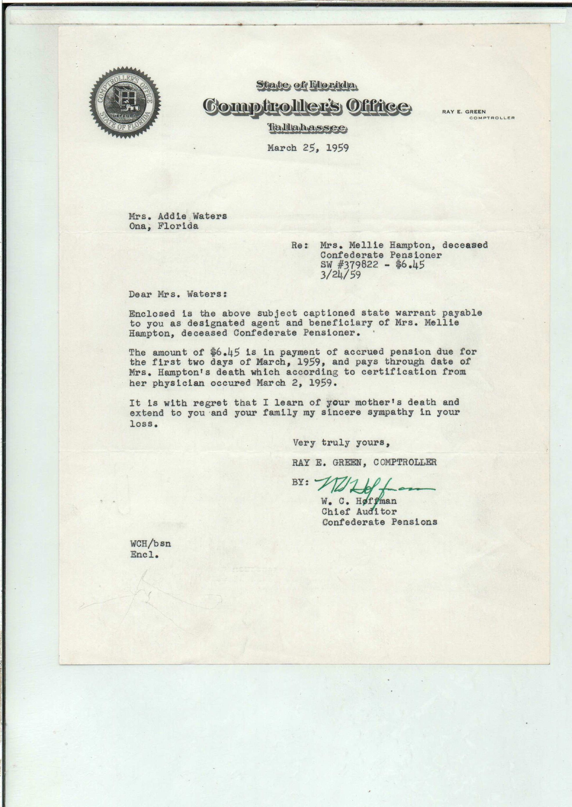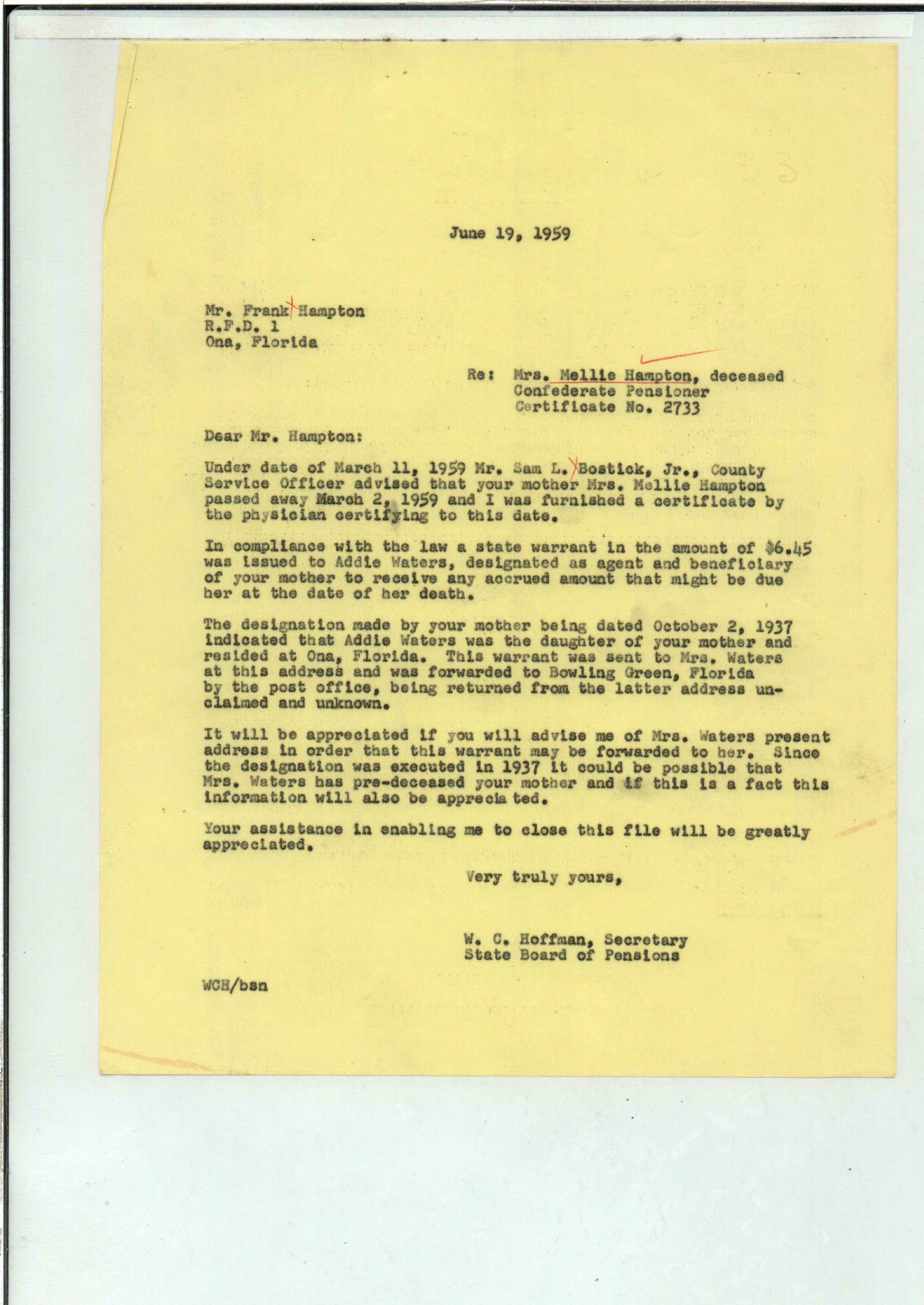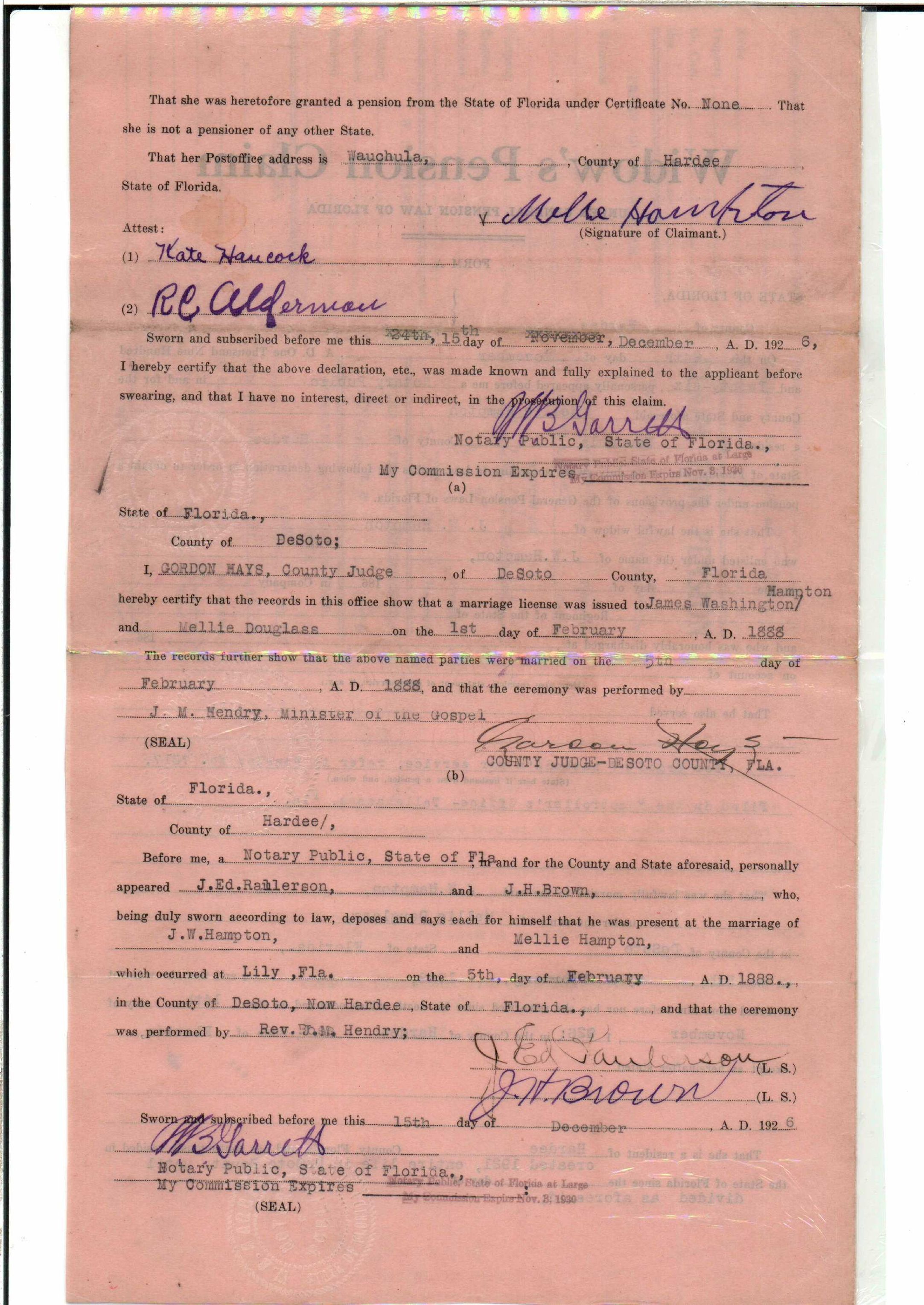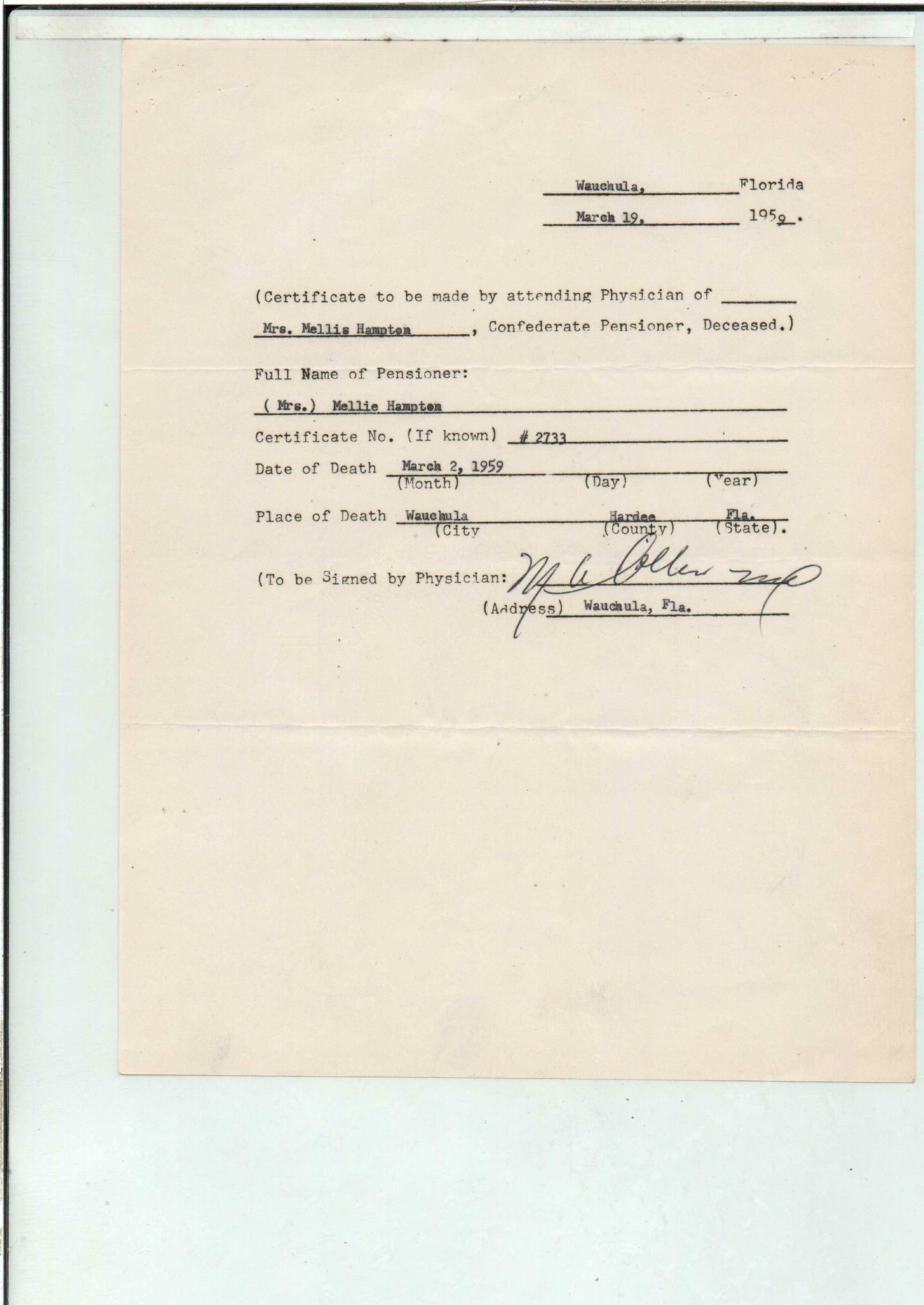State Board of Pensions. HAMPTON, James W. 1907. State Archives of Florida, Florida Memory. <https://www.floridamemory.com/items/show/177844>, accessed 29 December 2025.
