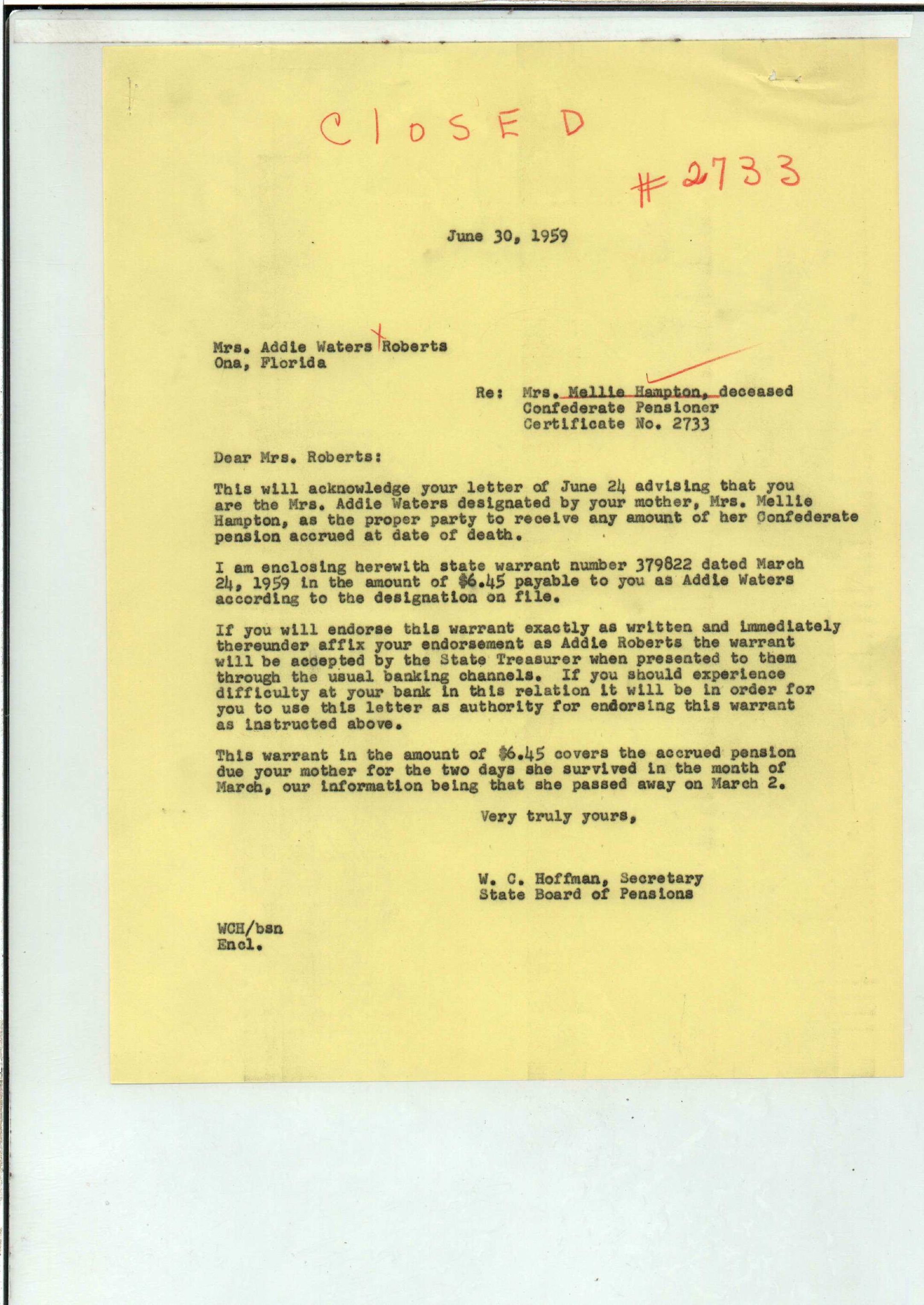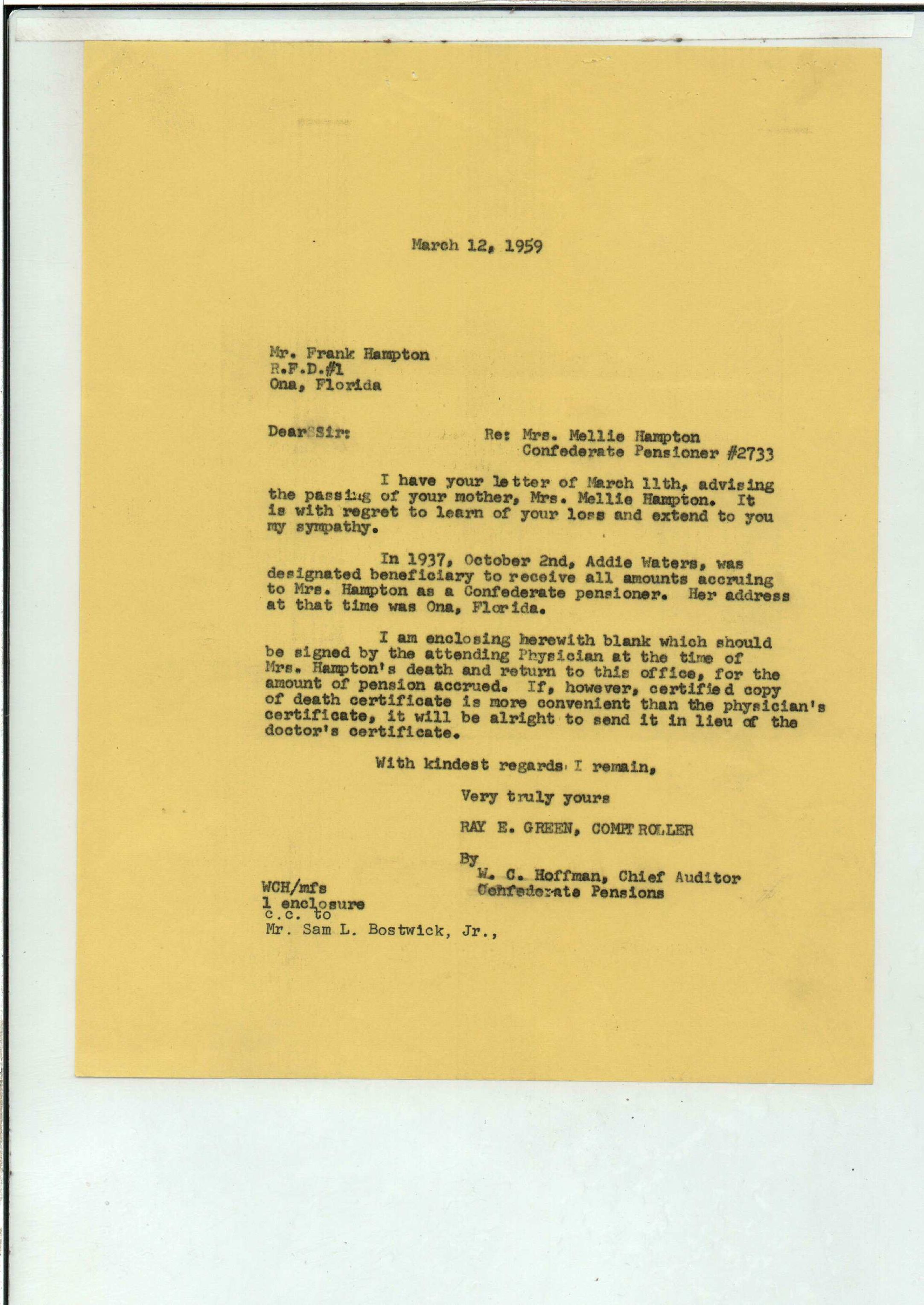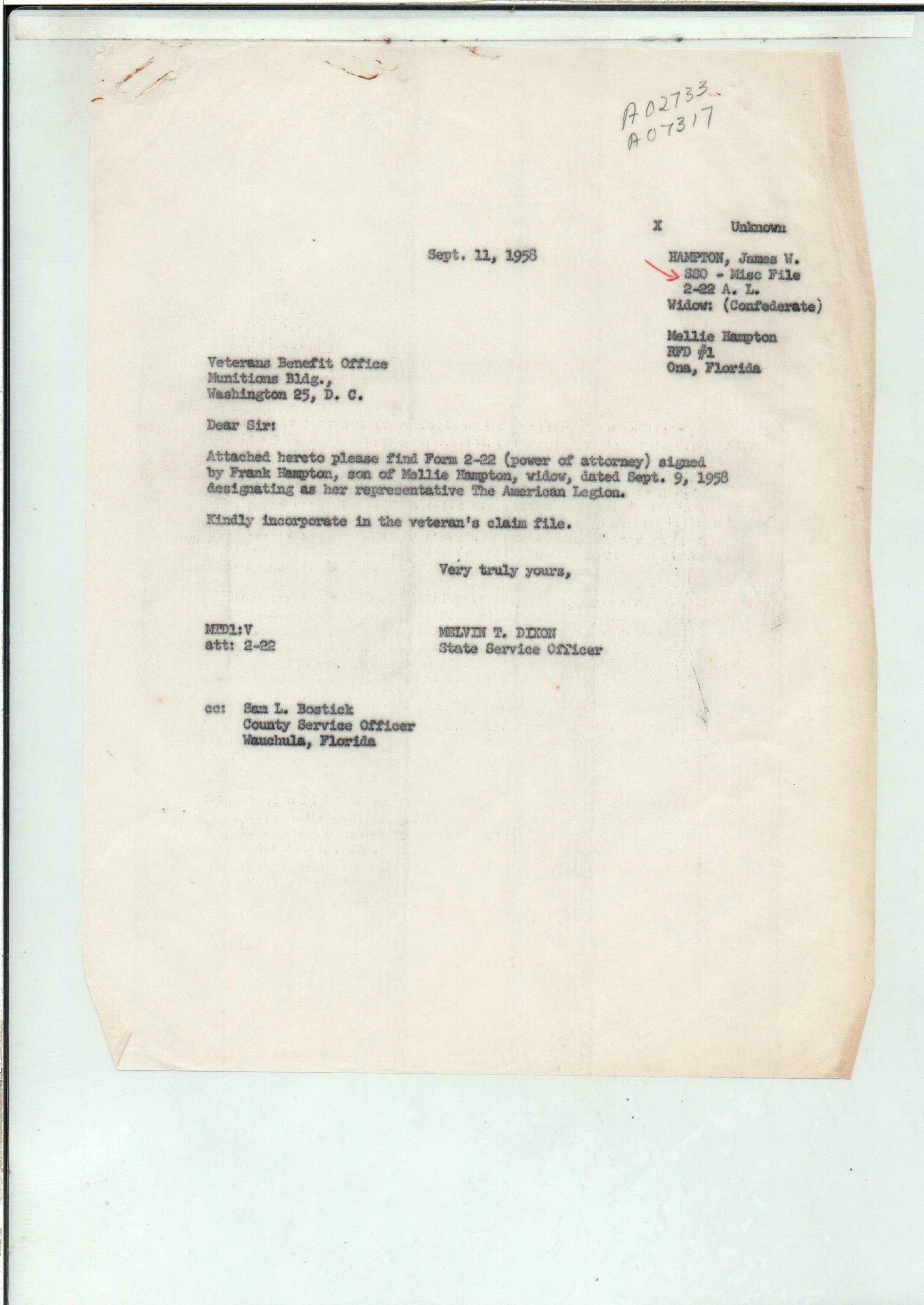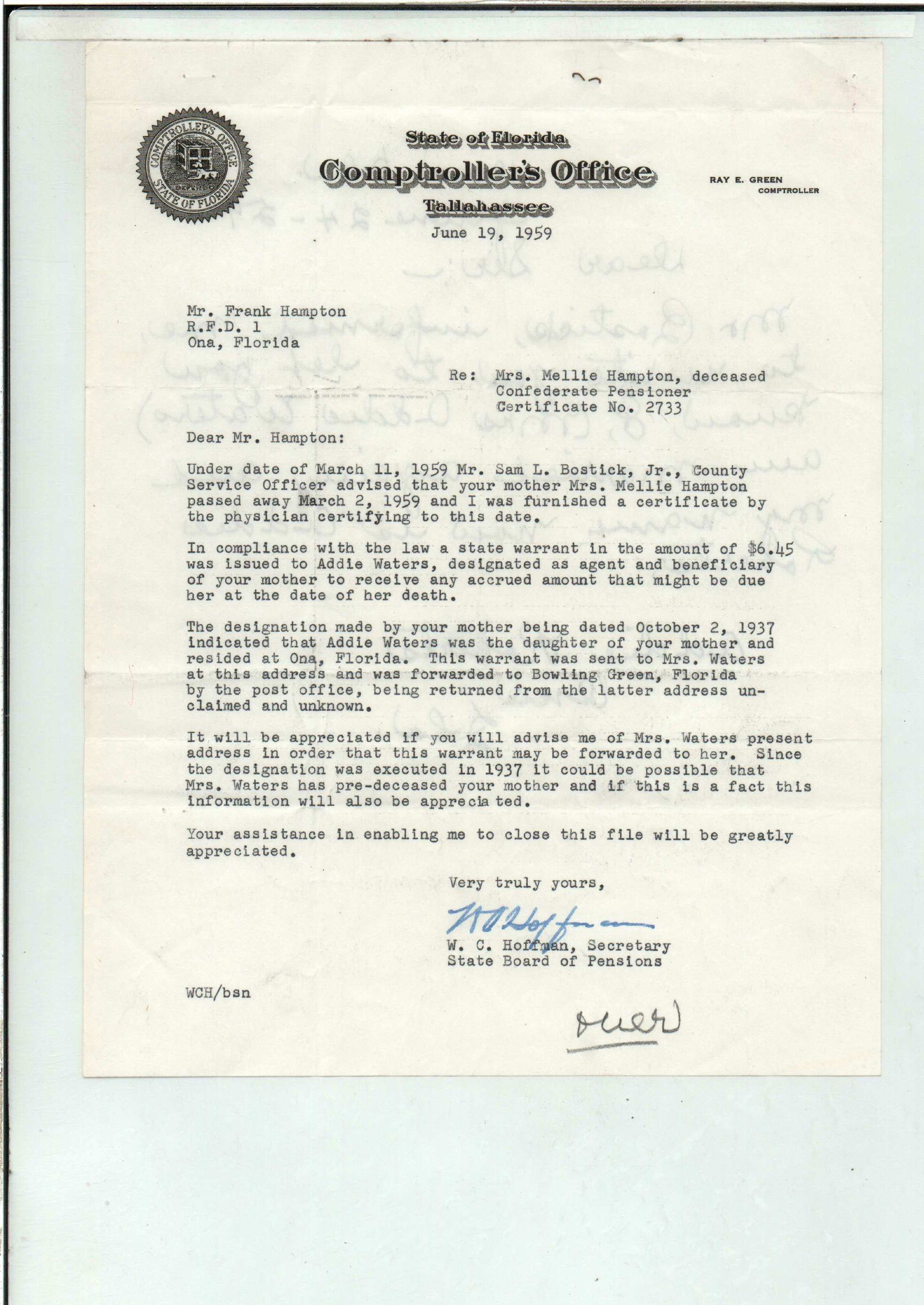 State Board of Pensions. HAMPTON, James W. 1907. State Archives of Florida, Florida Memory. <https://www.floridamemory.com/items/show/177844>, accessed 29 December 2025.