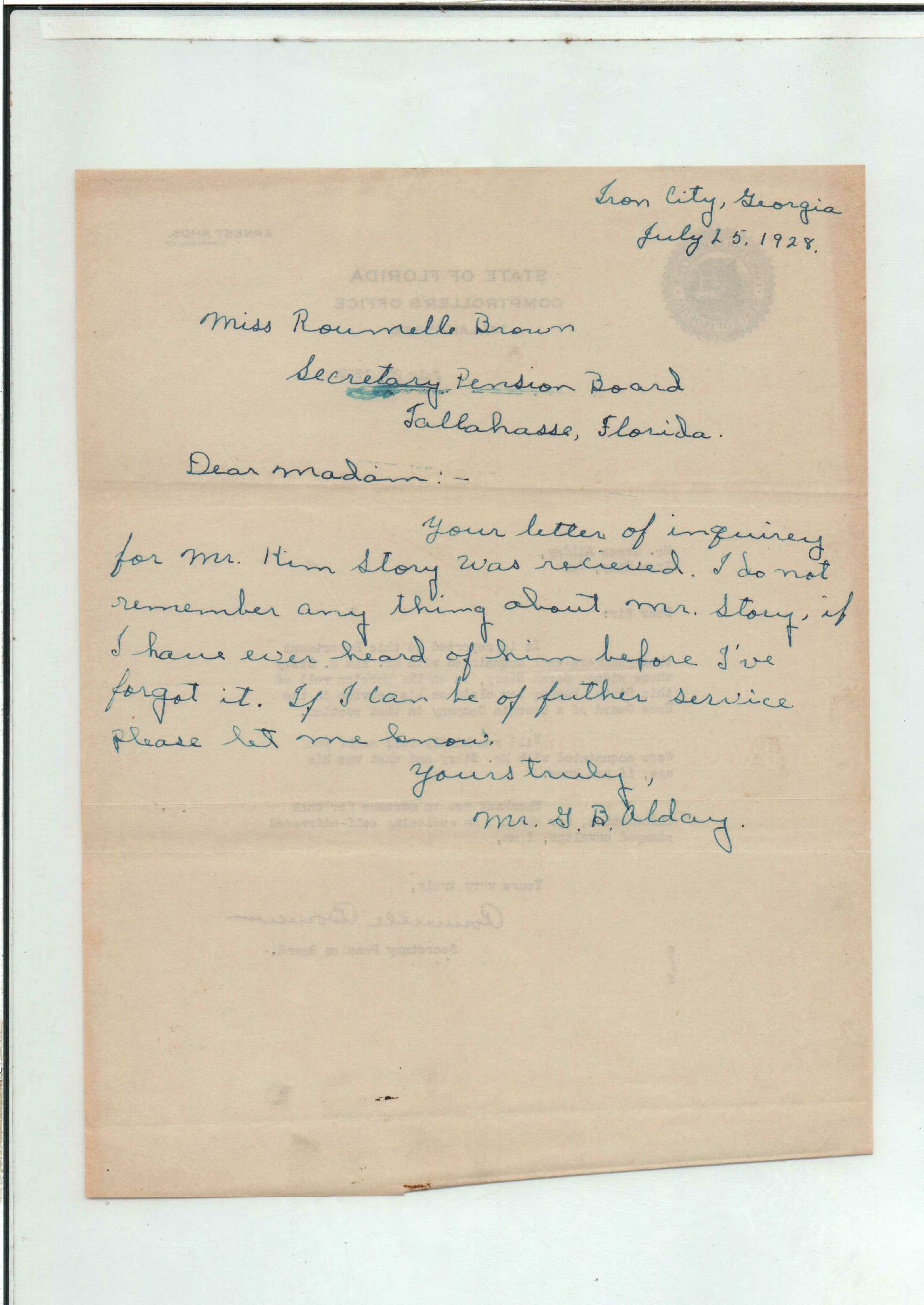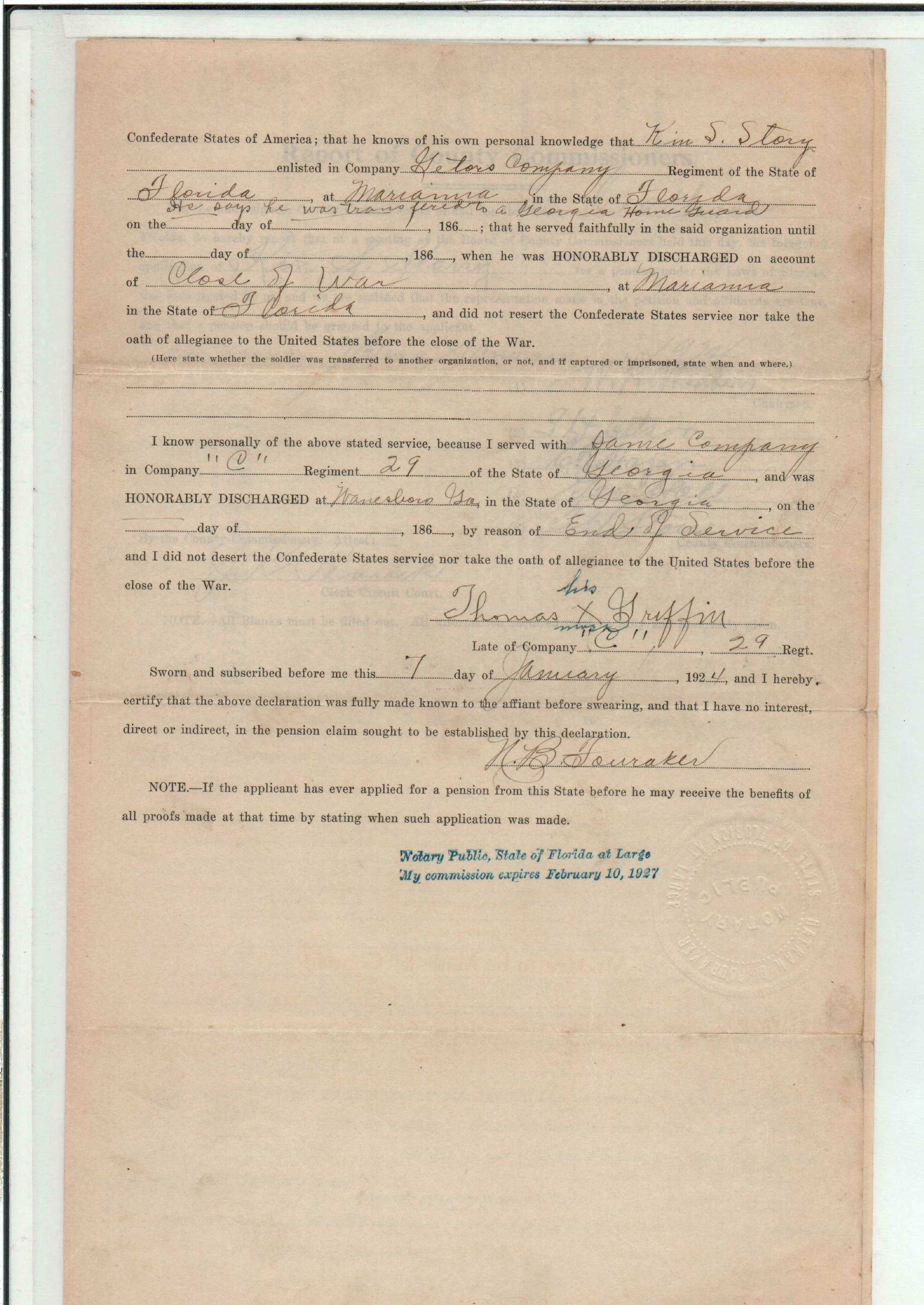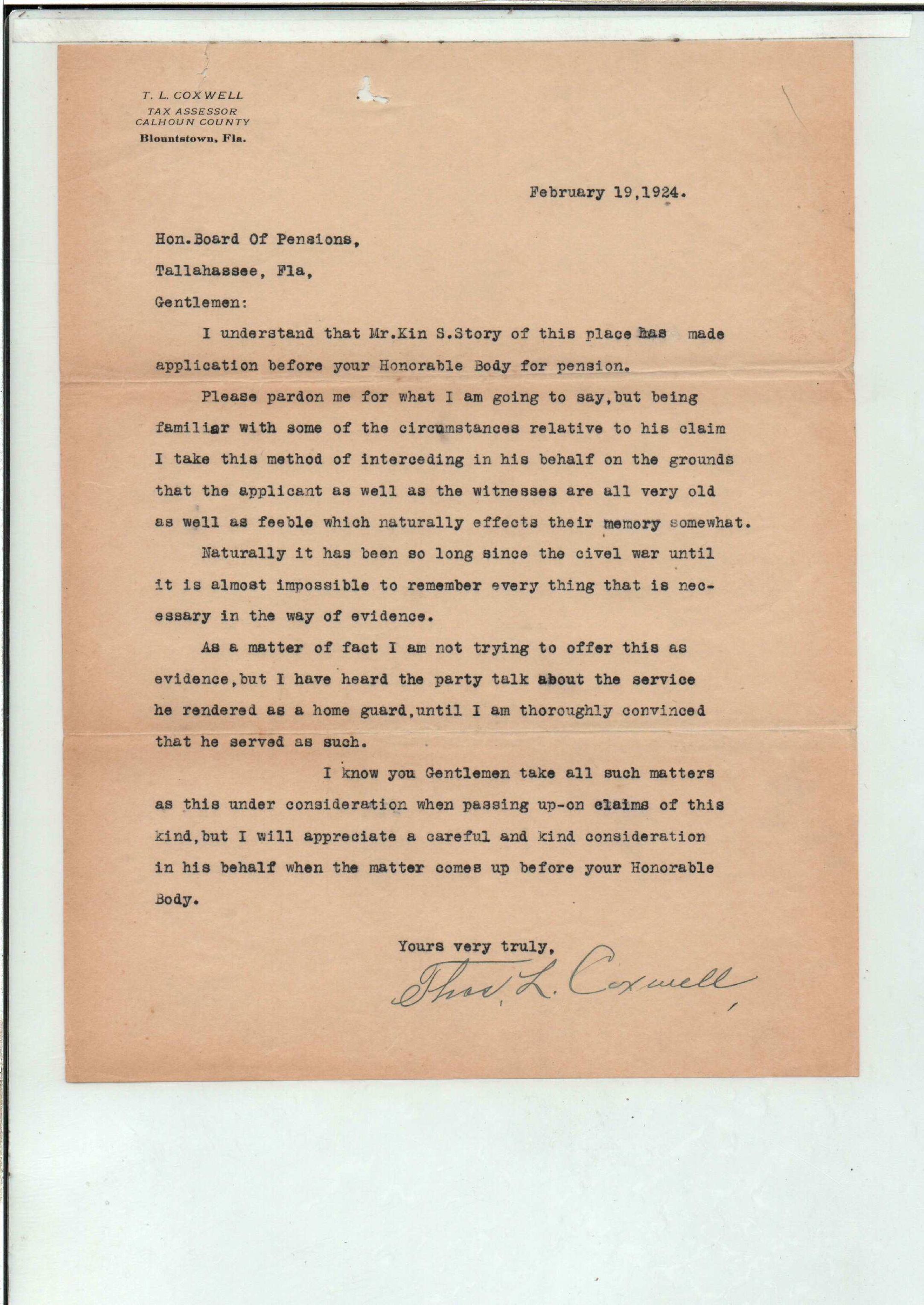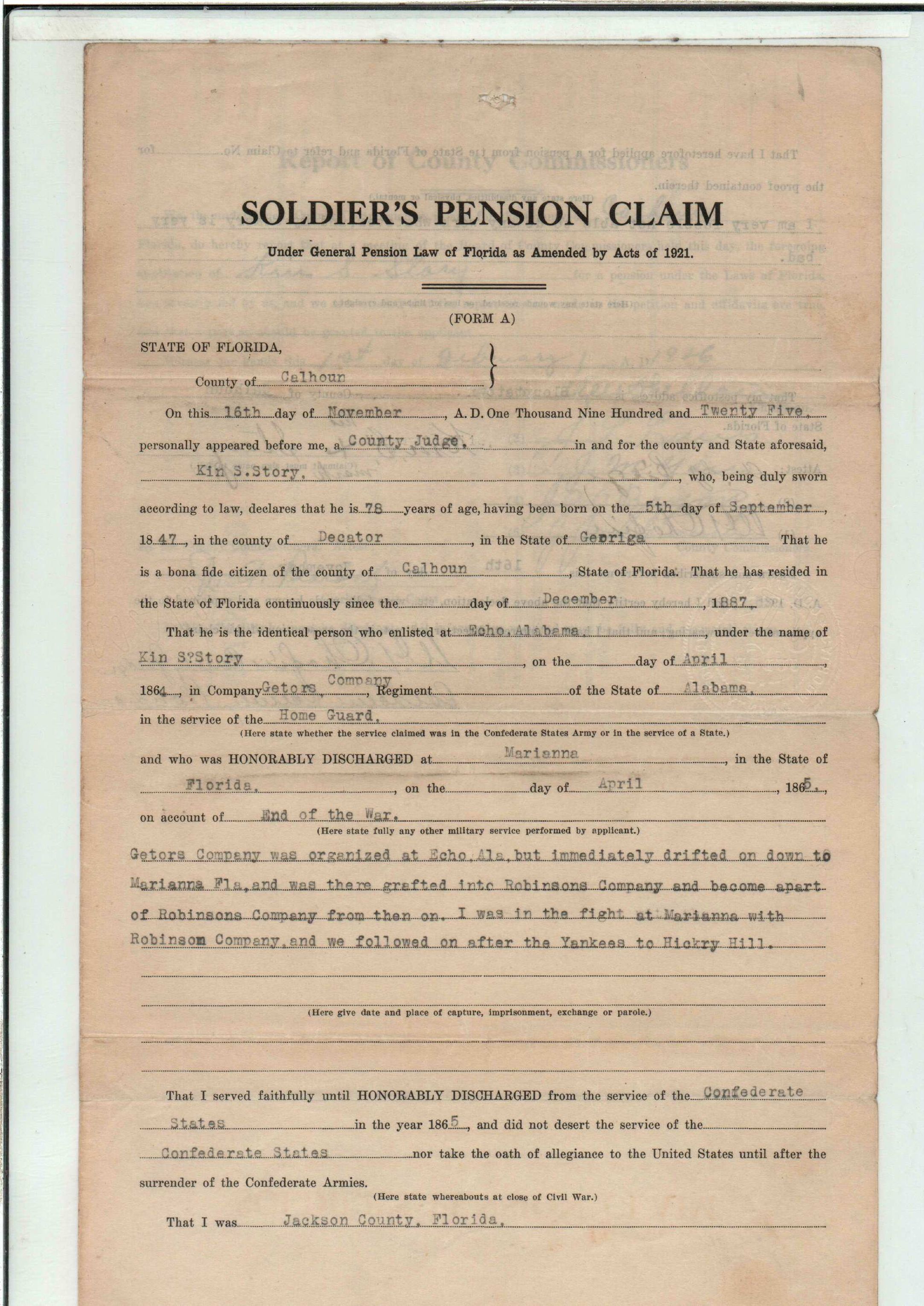 State Board of Pensions. STORY, Kin S. 1924. State Archives of Florida, Florida Memory. <https://www.floridamemory.com/items/show/177900>, accessed 25 December 2025.