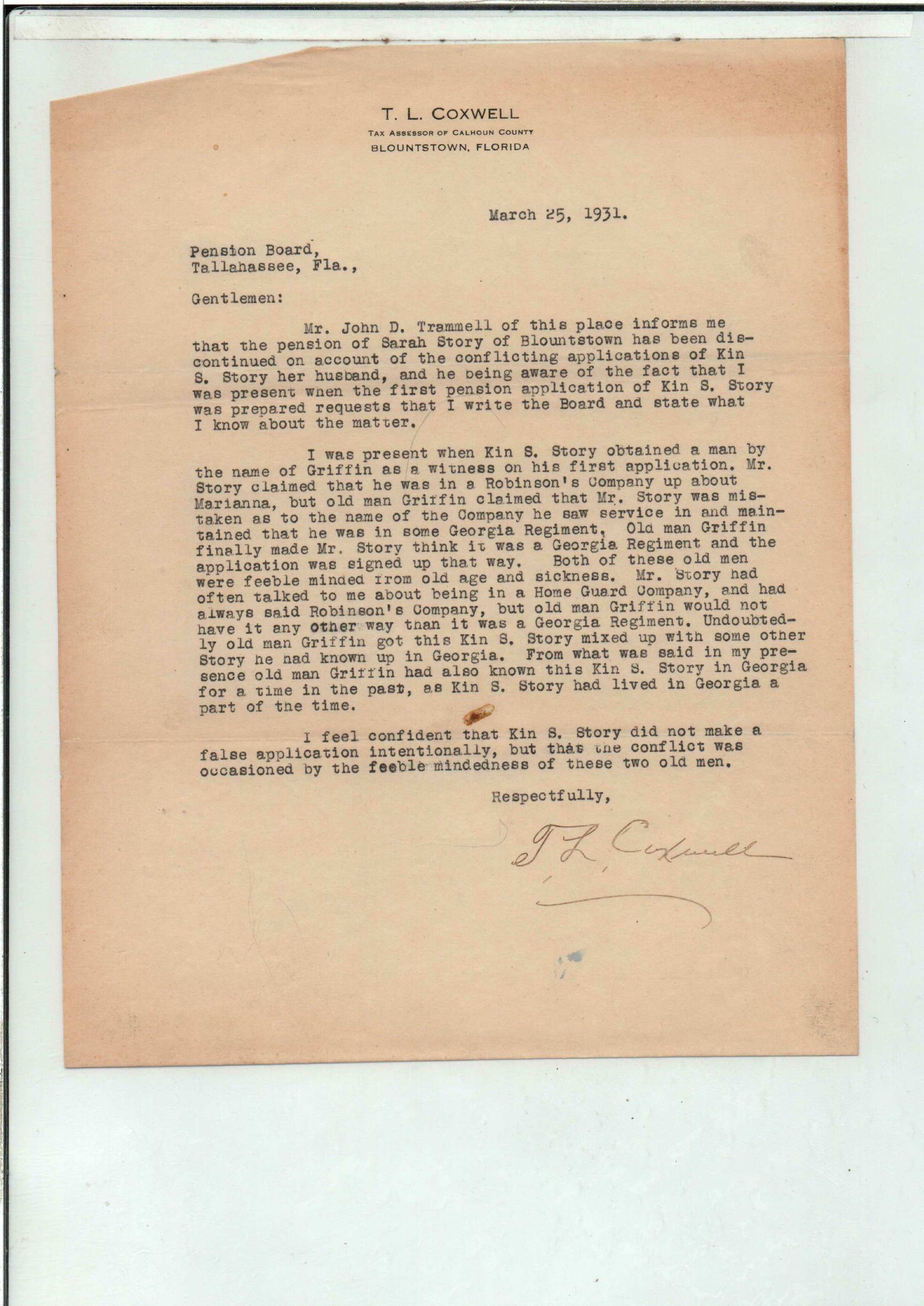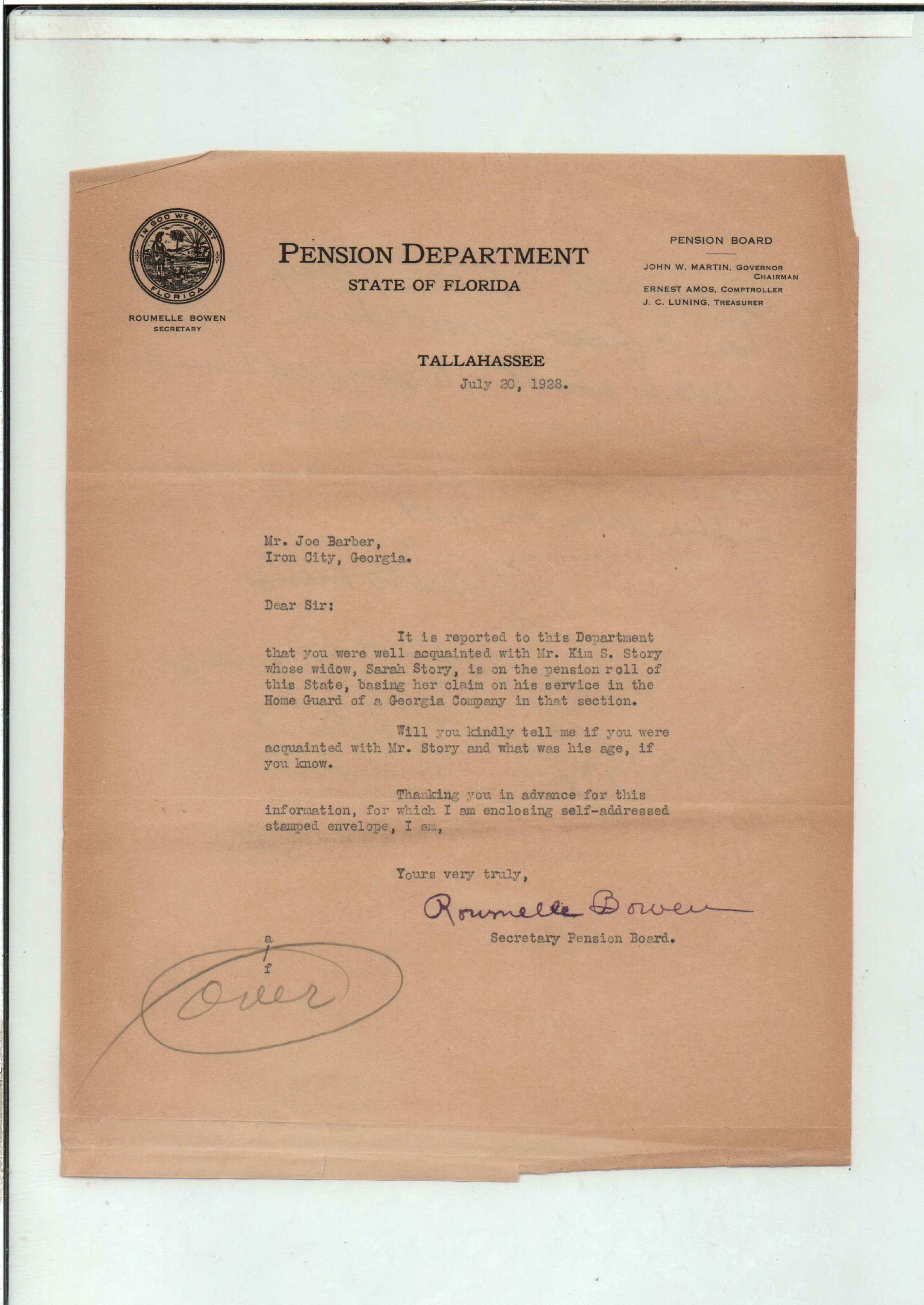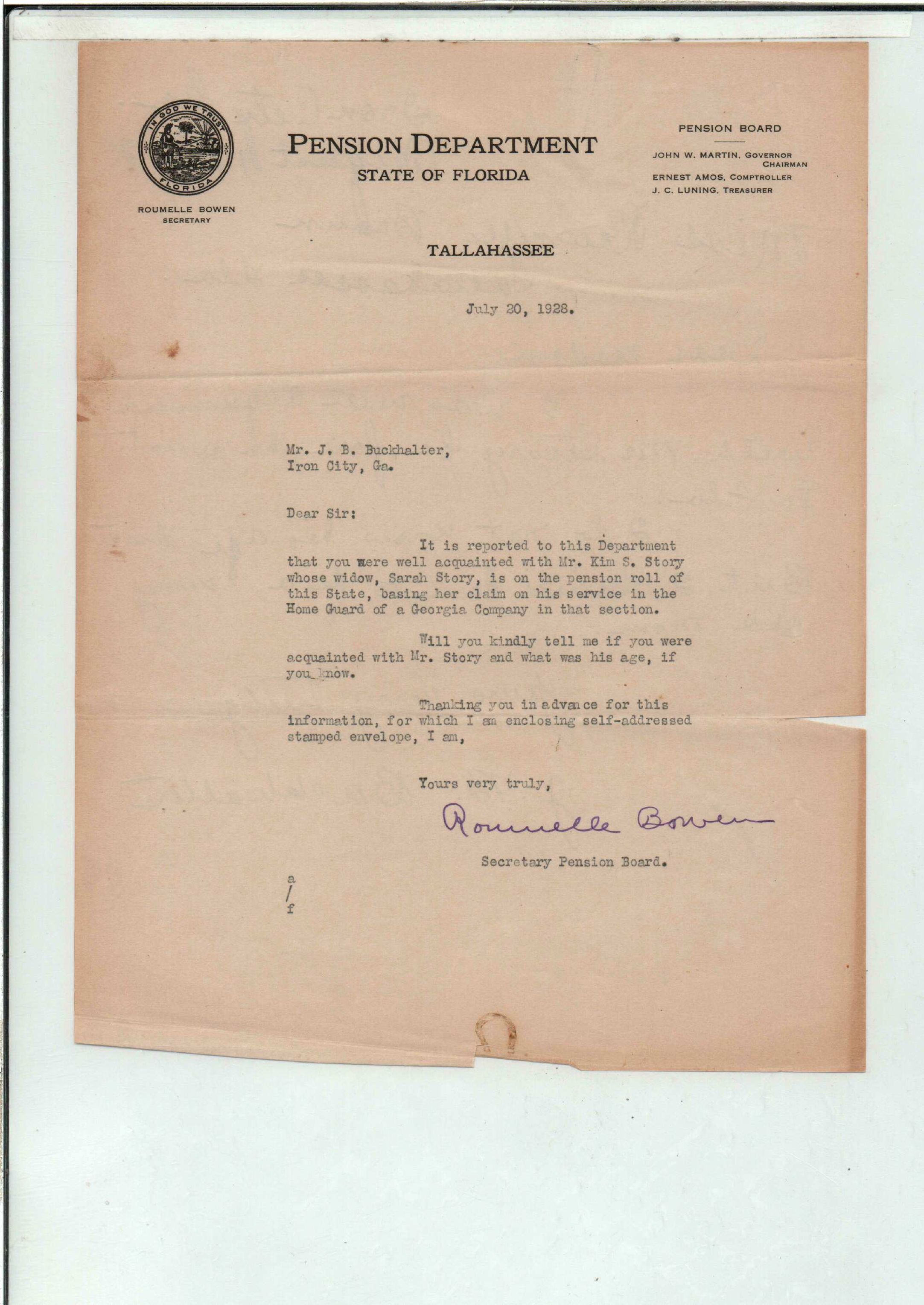 State Board of Pensions. STORY, Kin S. 1924. State Archives of Florida, Florida Memory. <https://www.floridamemory.com/items/show/177900>, accessed 25 December 2025.