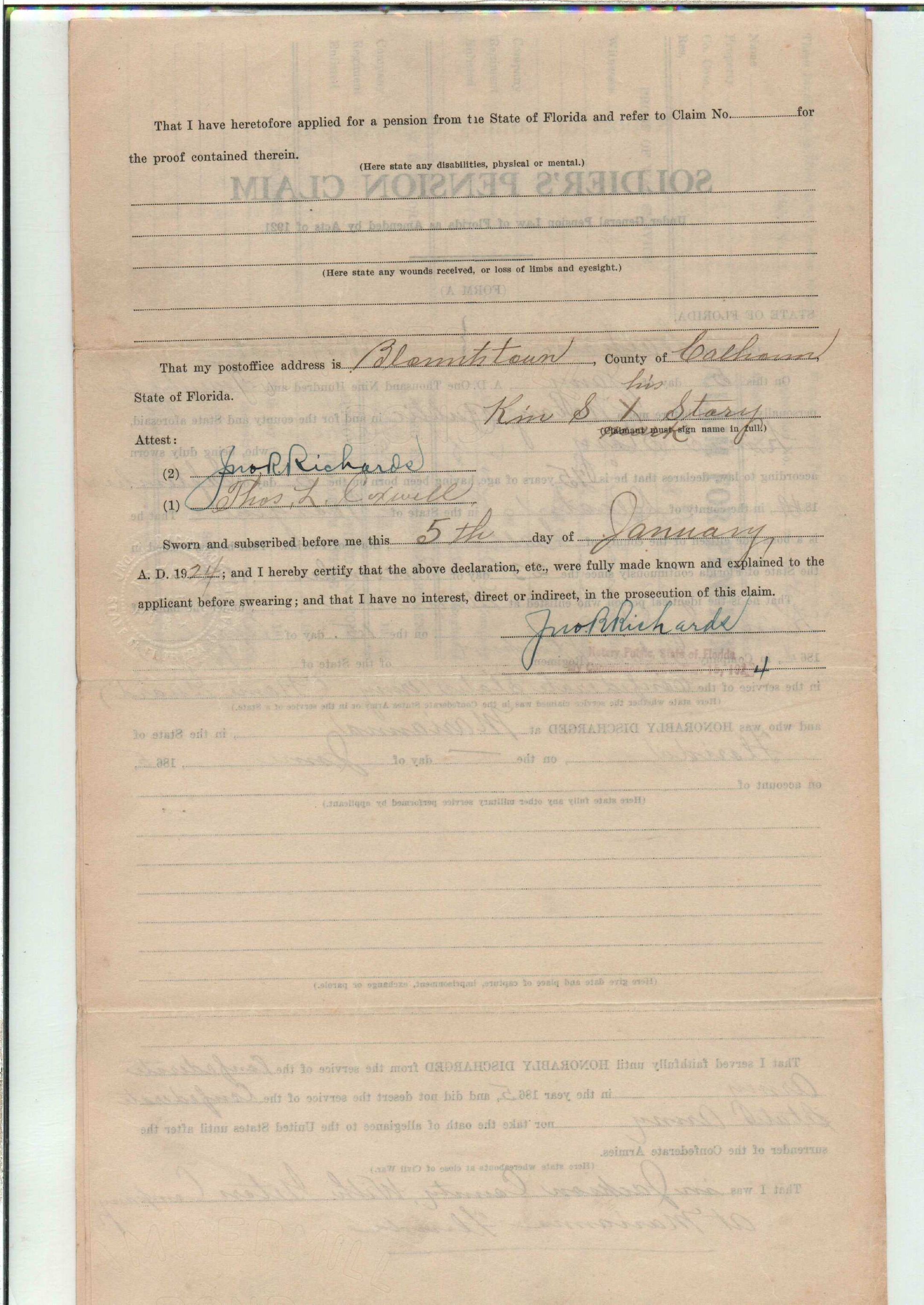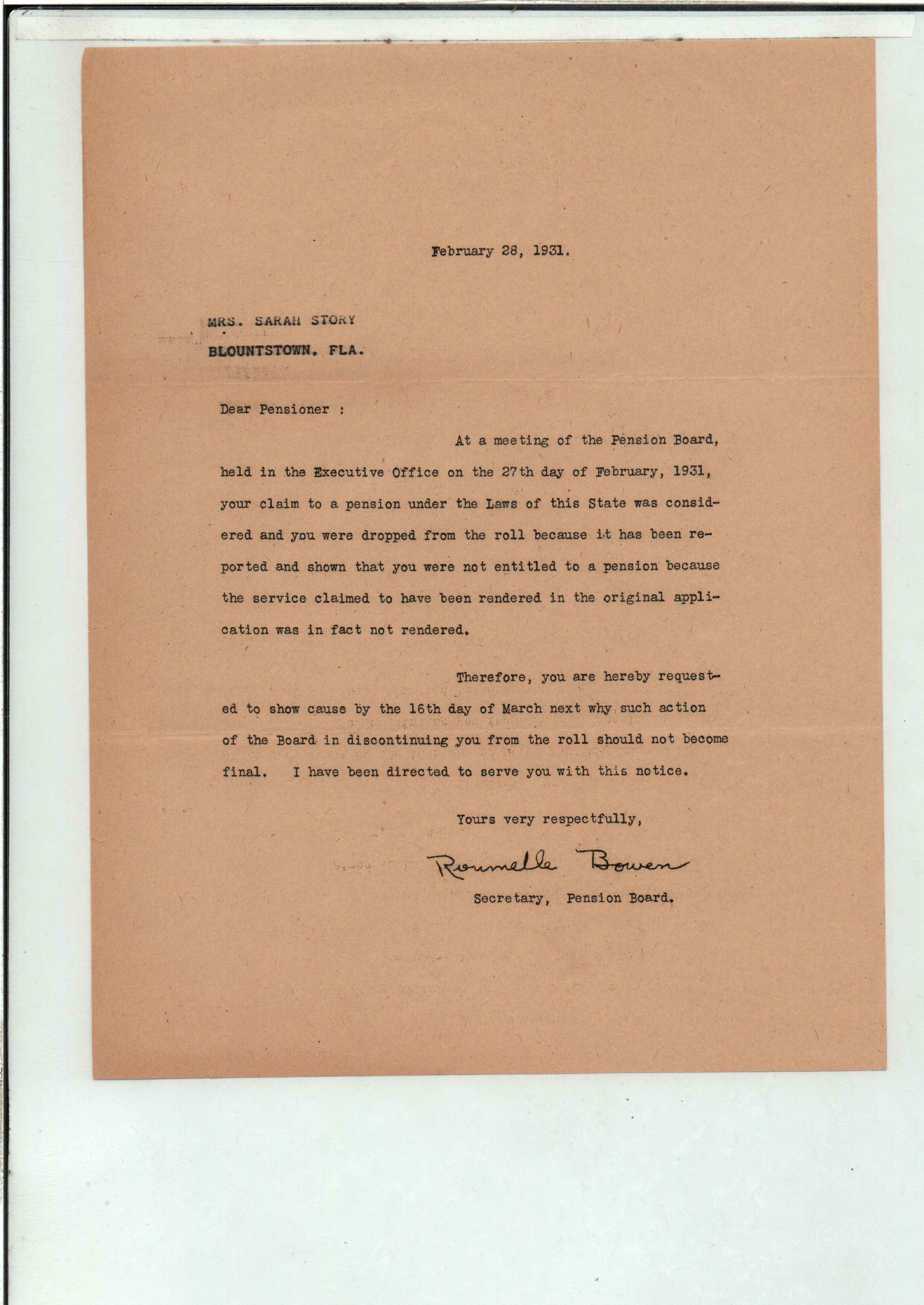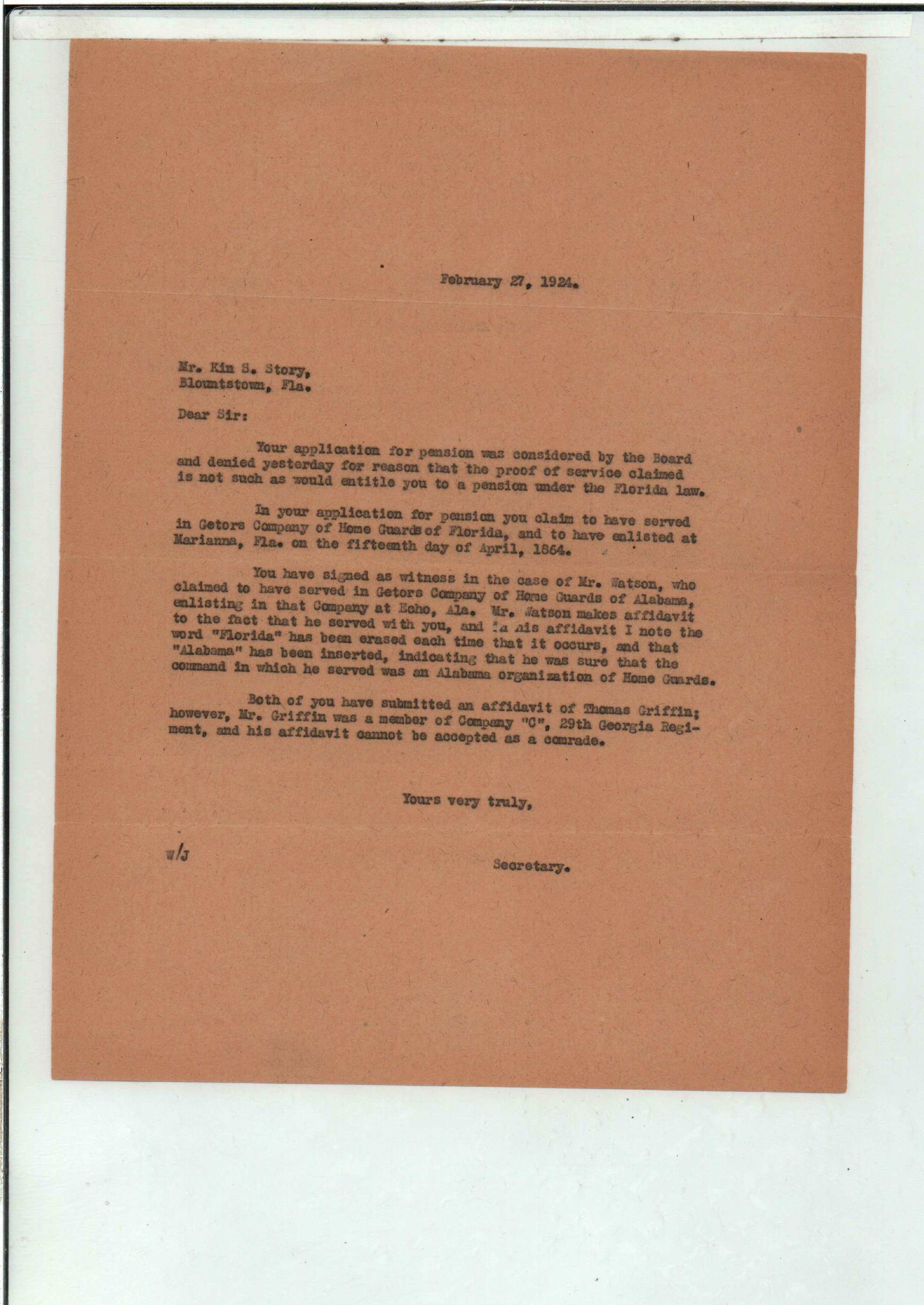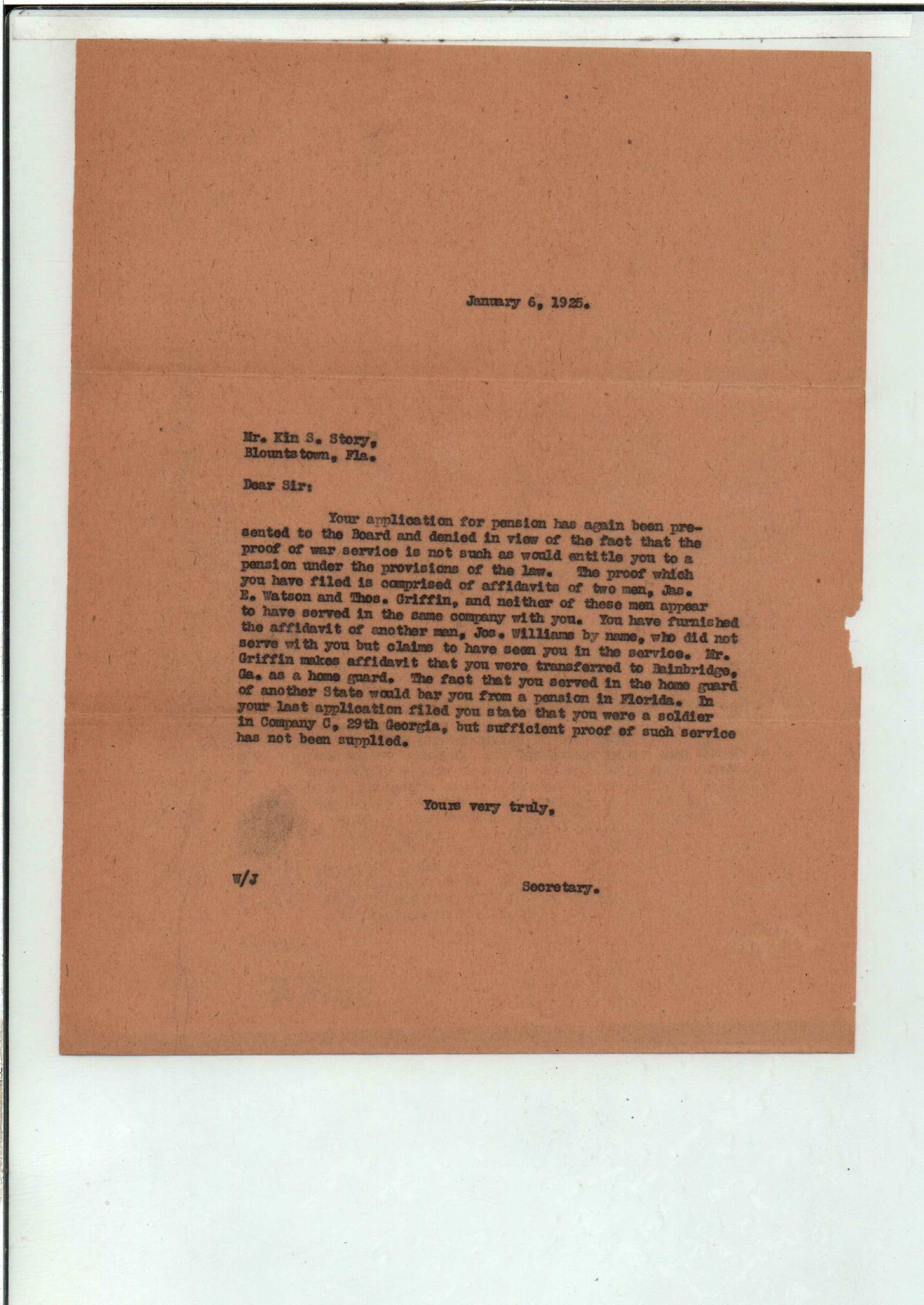 State Board of Pensions. STORY, Kin S. 1924. State Archives of Florida, Florida Memory. <https://www.floridamemory.com/items/show/177900>, accessed 25 December 2025.