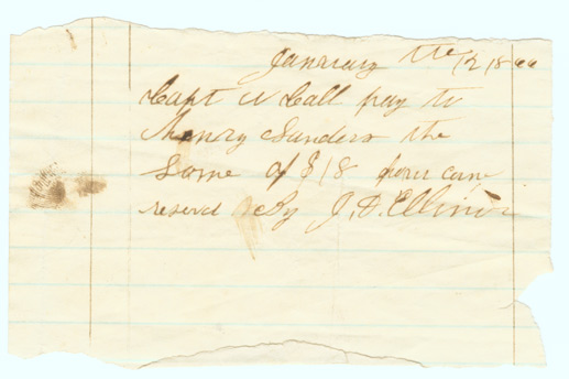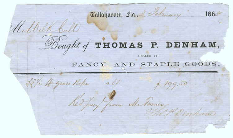 Bills and Receipts, 1858-1872, 50 items, regarding payments made or owed, primarily by Ellen Call Long but also by Richard K. Call (1 item, 1858, in the form of a letter), Captain William Call, and Mrs. T. W. Brevard (Mary Call Brevard, 1 item, 1864).
