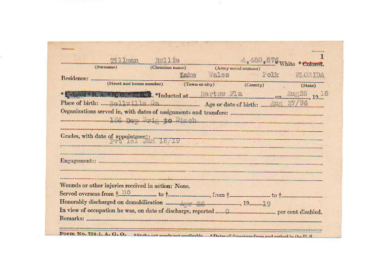 Florida. Military Dept. Rollie Tillman. . State Archives of Florida, Florida Memory. <https://www.floridamemory.com/items/show/189993>, accessed 26 December 2025.