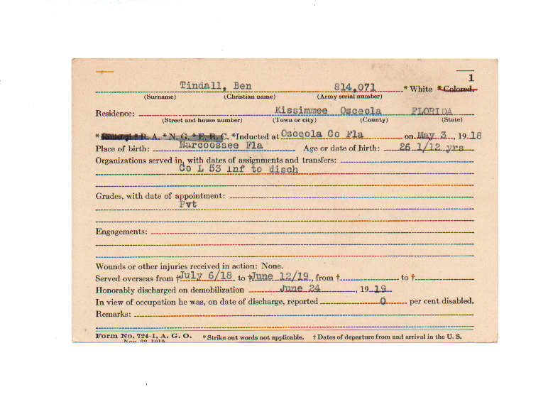 Florida. Military Dept. Ben Tindall. . State Archives of Florida, Florida Memory. <https://www.floridamemory.com/items/show/190010>, accessed 27 December 2025.