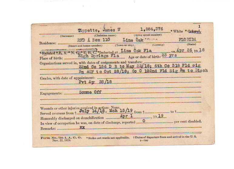 Florida. Military Dept. James W Tippette. . State Archives of Florida, Florida Memory. Accessed 28 Dec. 2025.<https://www.floridamemory.com/items/show/190026>