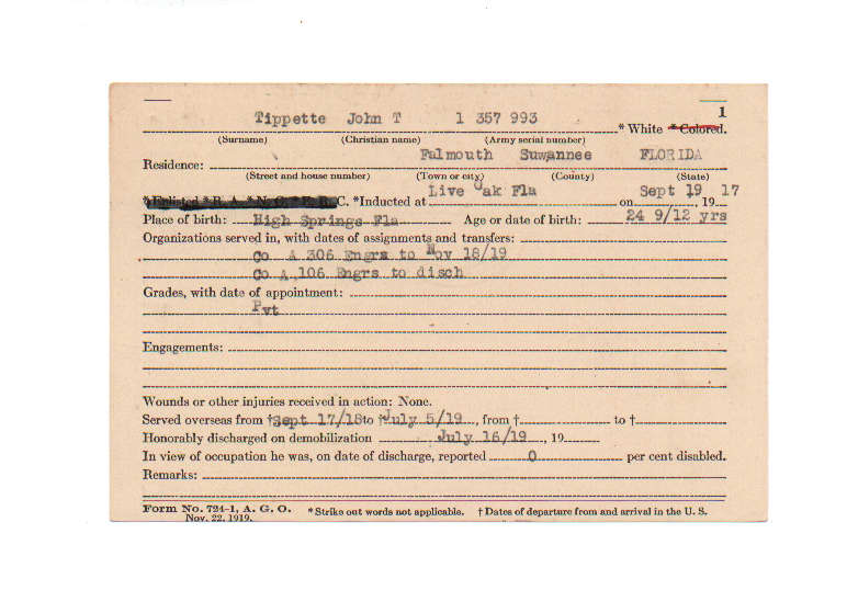 Florida. Military Dept. John T Tippette. . State Archives of Florida, Florida Memory. Accessed 28 Dec. 2025.<https://www.floridamemory.com/items/show/190027>