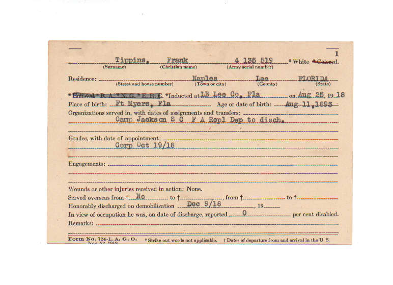Florida. Military Dept. Frank Tippins. . State Archives of Florida, Florida Memory. <https://www.floridamemory.com/items/show/190030>, accessed 28 December 2025.
