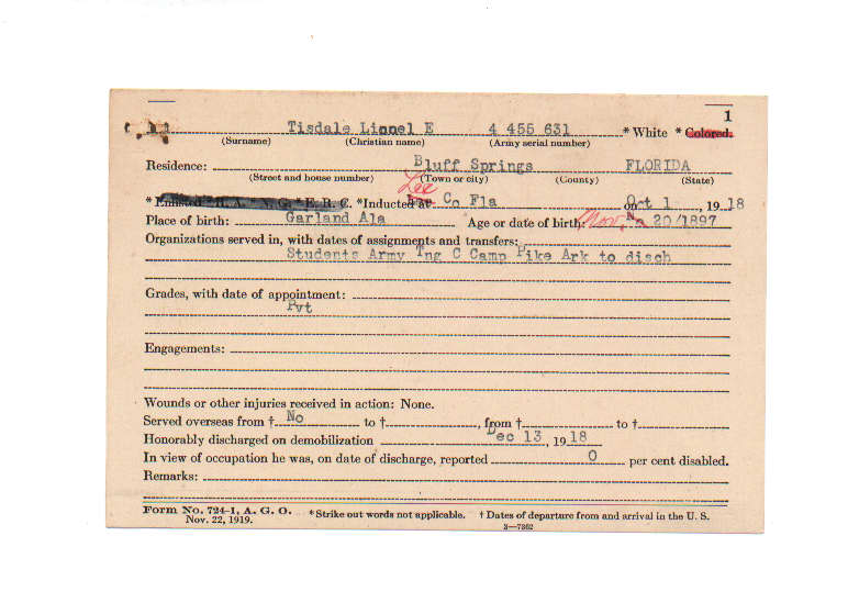Florida. Military Dept. Lionel E Tisdale. . State Archives of Florida, Florida Memory. <https://www.floridamemory.com/items/show/190036>, accessed 29 December 2025.