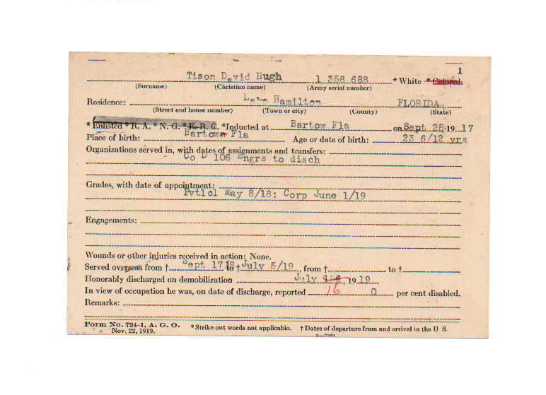 Florida. Military Dept. David Hugh Tison. . State Archives of Florida, Florida Memory. <https://www.floridamemory.com/items/show/190040>, accessed 29 December 2025.