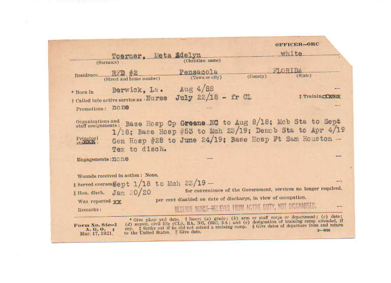 Florida. Military Dept. Meta Adelyn Toerner. . State Archives of Florida, Florida Memory. <https://www.floridamemory.com/items/show/190065>, accessed 31 December 2025.
