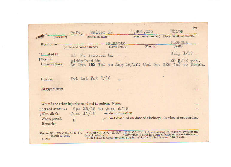 Florida. Military Dept. Walter H Toft. . State Archives of Florida, Florida Memory. Accessed 31 Dec. 2025.<https://www.floridamemory.com/items/show/190066>