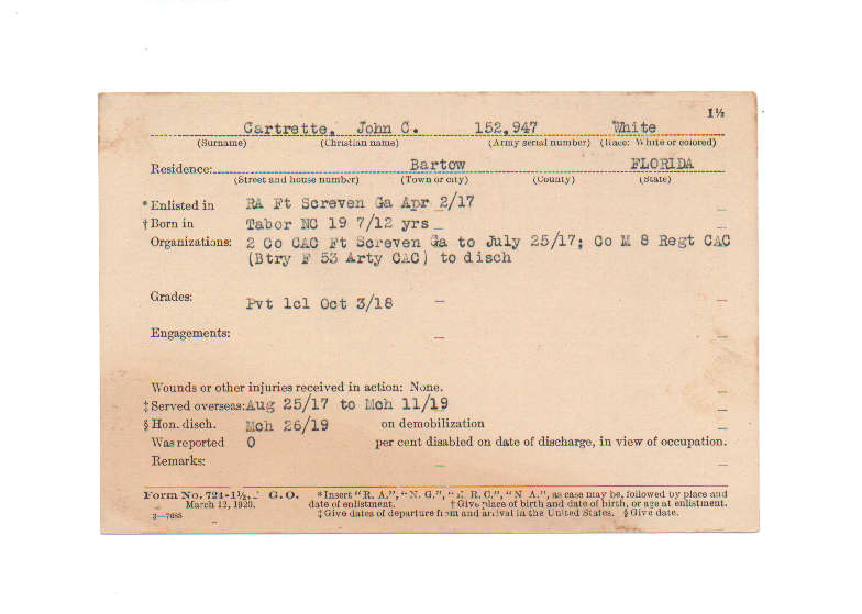 Florida. Military Dept. John C Cartrette. . State Archives of Florida, Florida Memory. <https://www.floridamemory.com/items/show/199420>, accessed 26 January 2026.