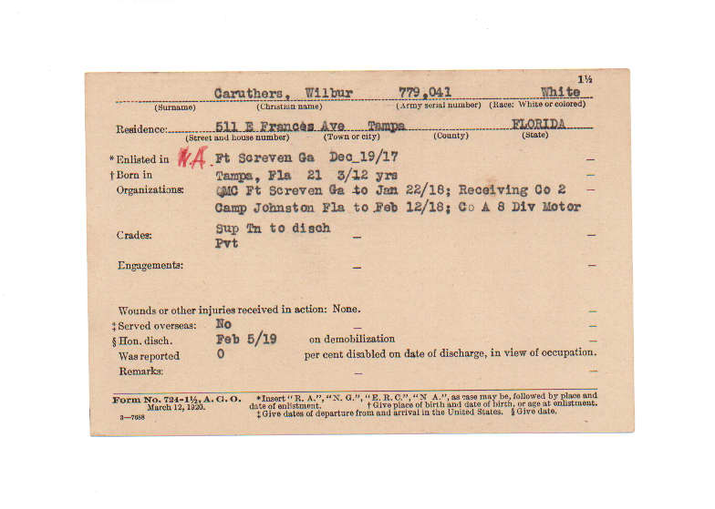 Florida. Military Dept. Wilbur Caruthers. . State Archives of Florida, Florida Memory. <https://www.floridamemory.com/items/show/199427>, accessed 26 January 2026.