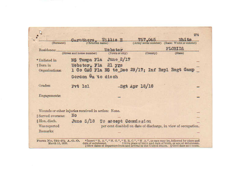 Florida. Military Dept. Willis E Caruthers. . State Archives of Florida, Florida Memory. <https://www.floridamemory.com/items/show/199430>, accessed 26 January 2026.
