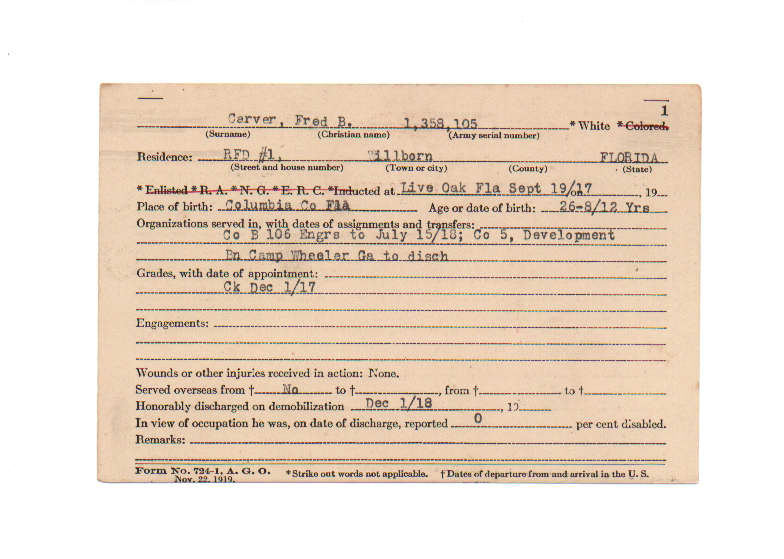 Florida. Military Dept. Fred B Carver. . State Archives of Florida, Florida Memory. <https://www.floridamemory.com/items/show/199437>, accessed 25 January 2026.