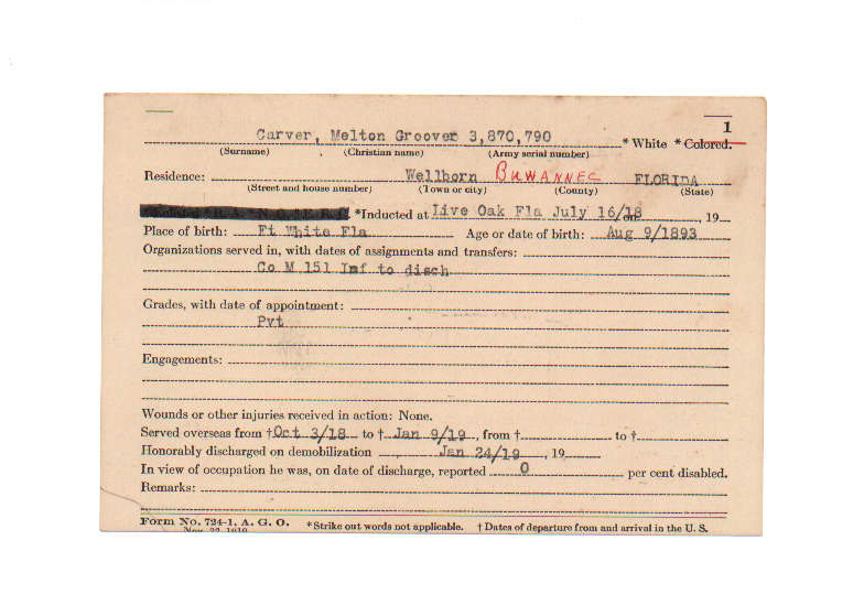 Florida. Military Dept. Melton Groover Carver. . State Archives of Florida, Florida Memory. <https://www.floridamemory.com/items/show/199440>, accessed 25 January 2026.