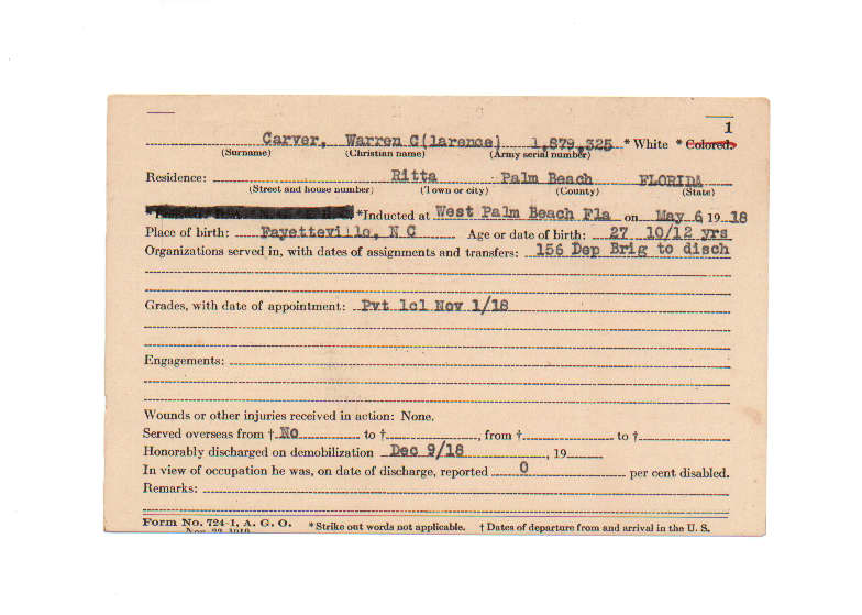 Florida. Military Dept. Warren Clarence Carver. . State Archives of Florida, Florida Memory. <https://www.floridamemory.com/items/show/199443>, accessed 25 January 2026.