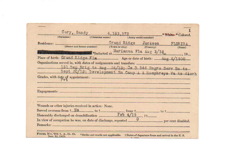 Florida. Military Dept. Sandy Cary. . State Archives of Florida, Florida Memory. Accessed 25 Jan. 2026.<https://www.floridamemory.com/items/show/199446>