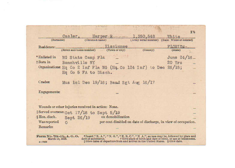 Florida. Military Dept. Harper R Casler. . State Archives of Florida, Florida Memory. <https://www.floridamemory.com/items/show/199460>, accessed 24 January 2026.