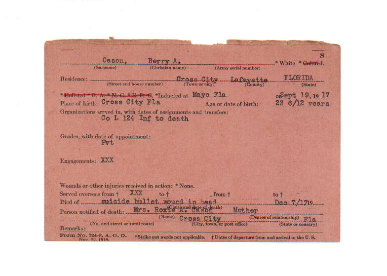 Florida. Military Dept. Berry A Cason. . State Archives of Florida, Florida Memory. <https://www.floridamemory.com/items/show/199464>, accessed 24 January 2026.