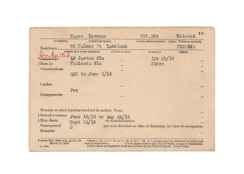 Florida. Military Dept. Lorenzo Cason. . State Archives of Florida, Florida Memory. <https://www.floridamemory.com/items/show/199481>, accessed 28 November 2025.